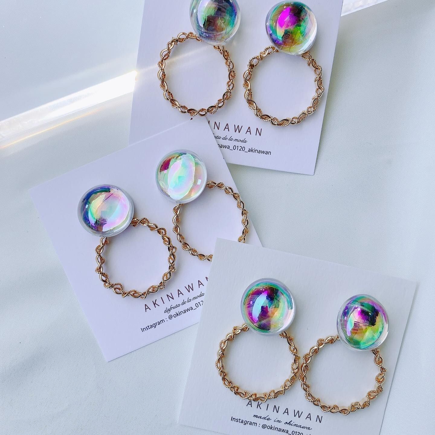 クリアバブルカボション がキラキラと光の当たり具合で色味が変わって顔の周りを彩ってくれますよ♡