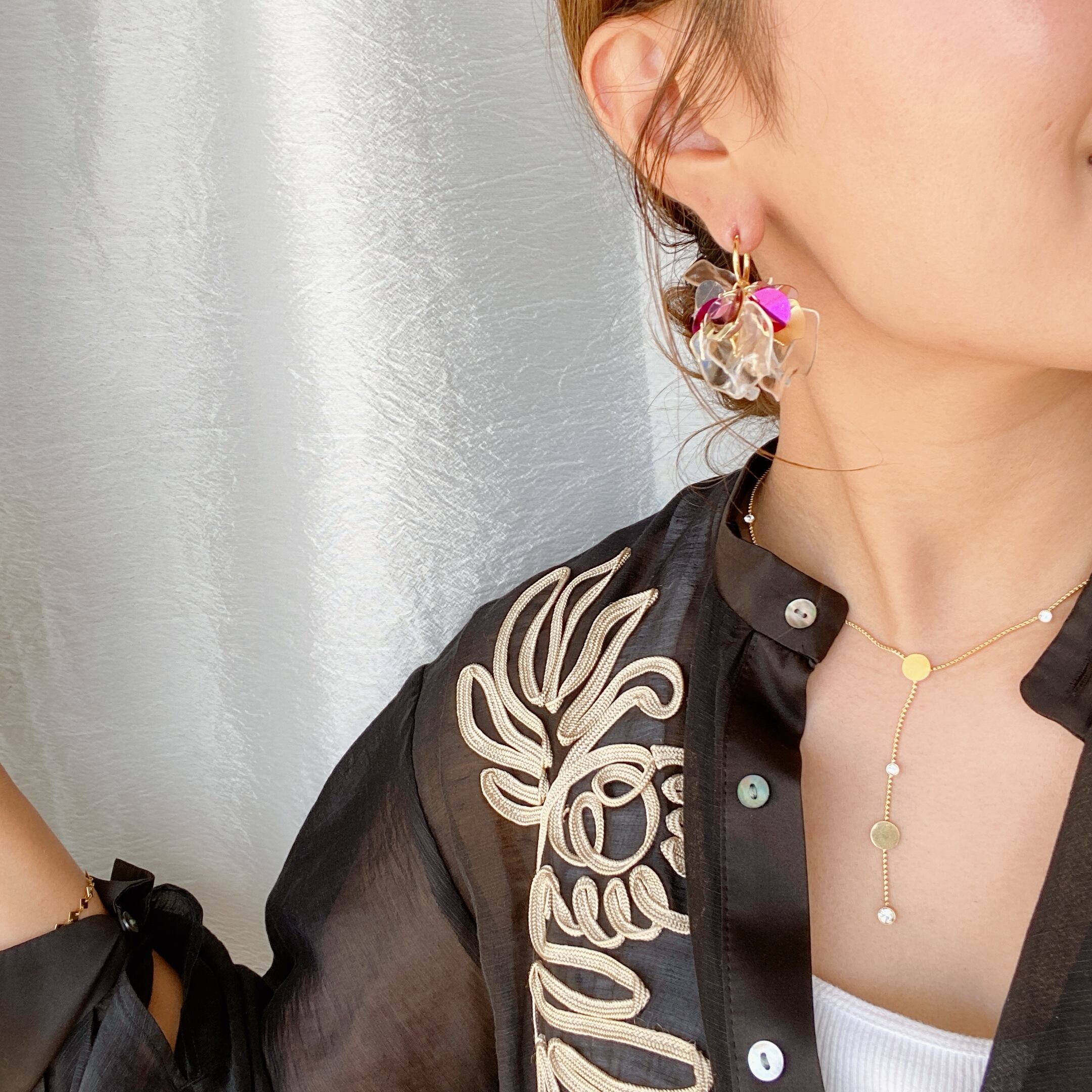 シンプルなトップスのお供にバッチリ