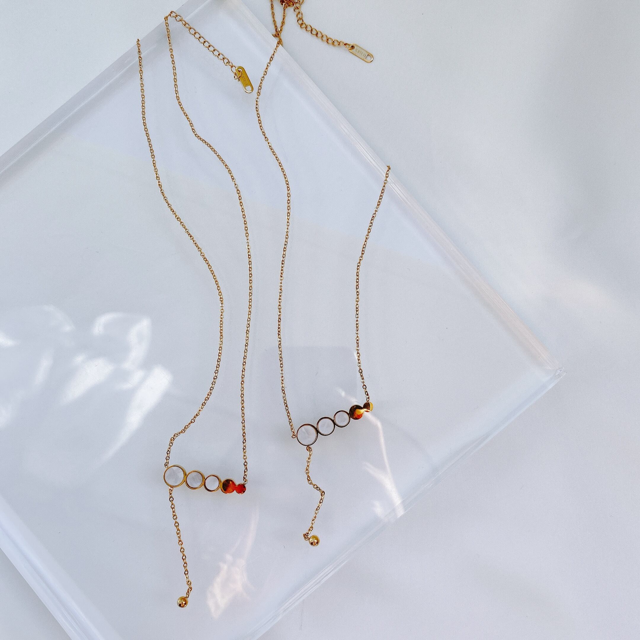 ホワイトシェルが埋め込まれたデザインプレートネックレス