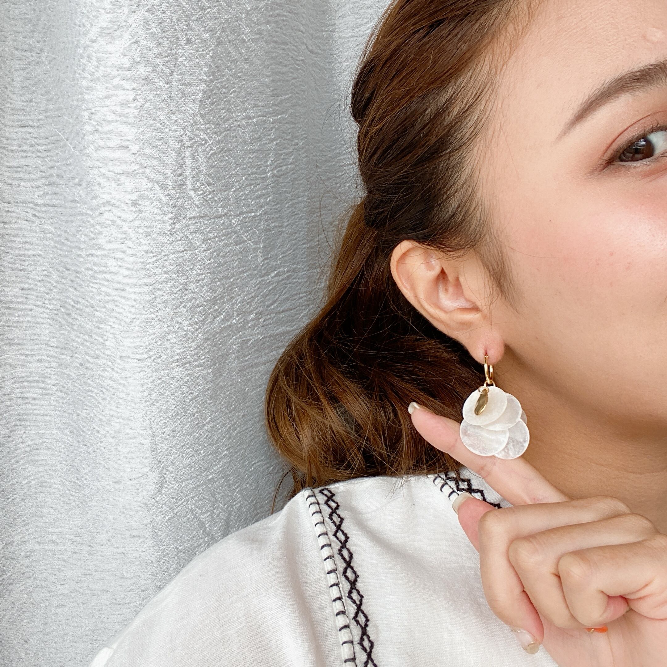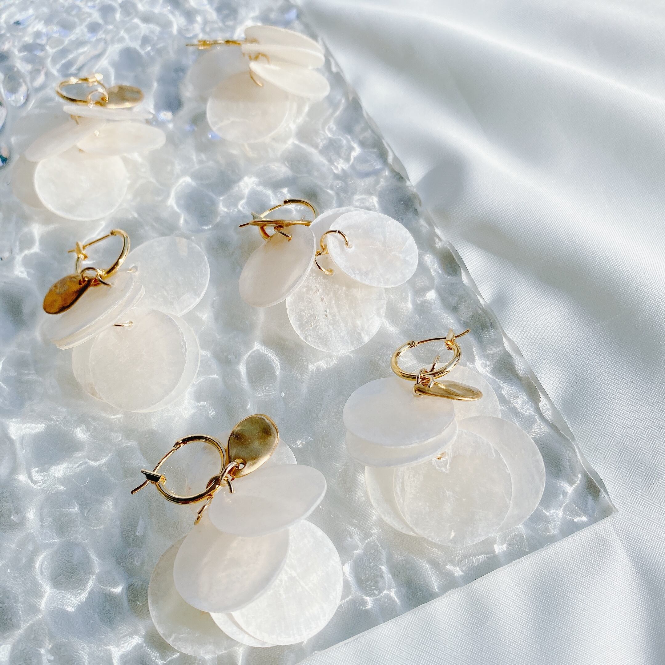 ホワイトシェルにゴールドのチャームが映えてポイントに