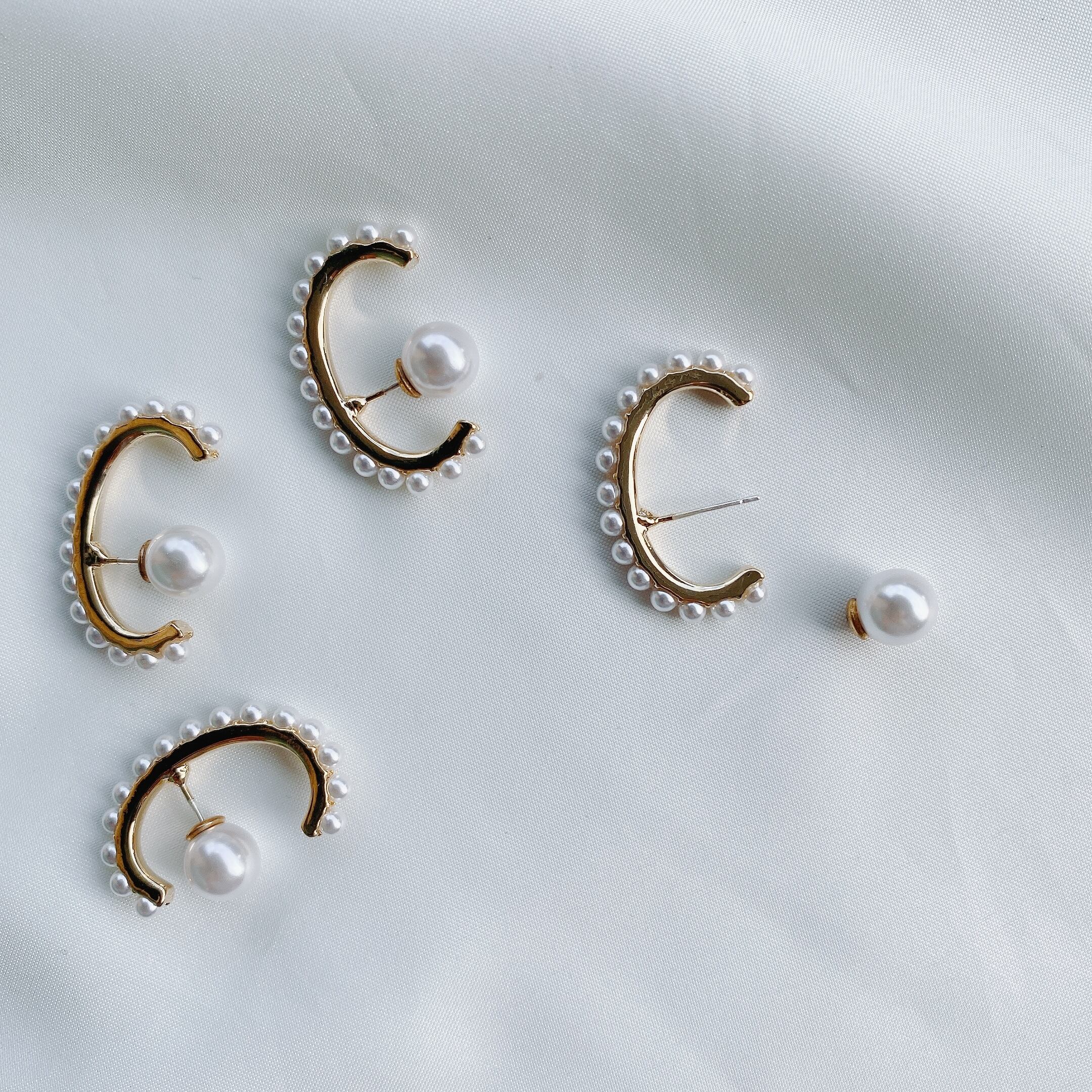 キャッチ部分がパールになっており後ろと横から見ても可愛いくお付けいただけるアイテムです