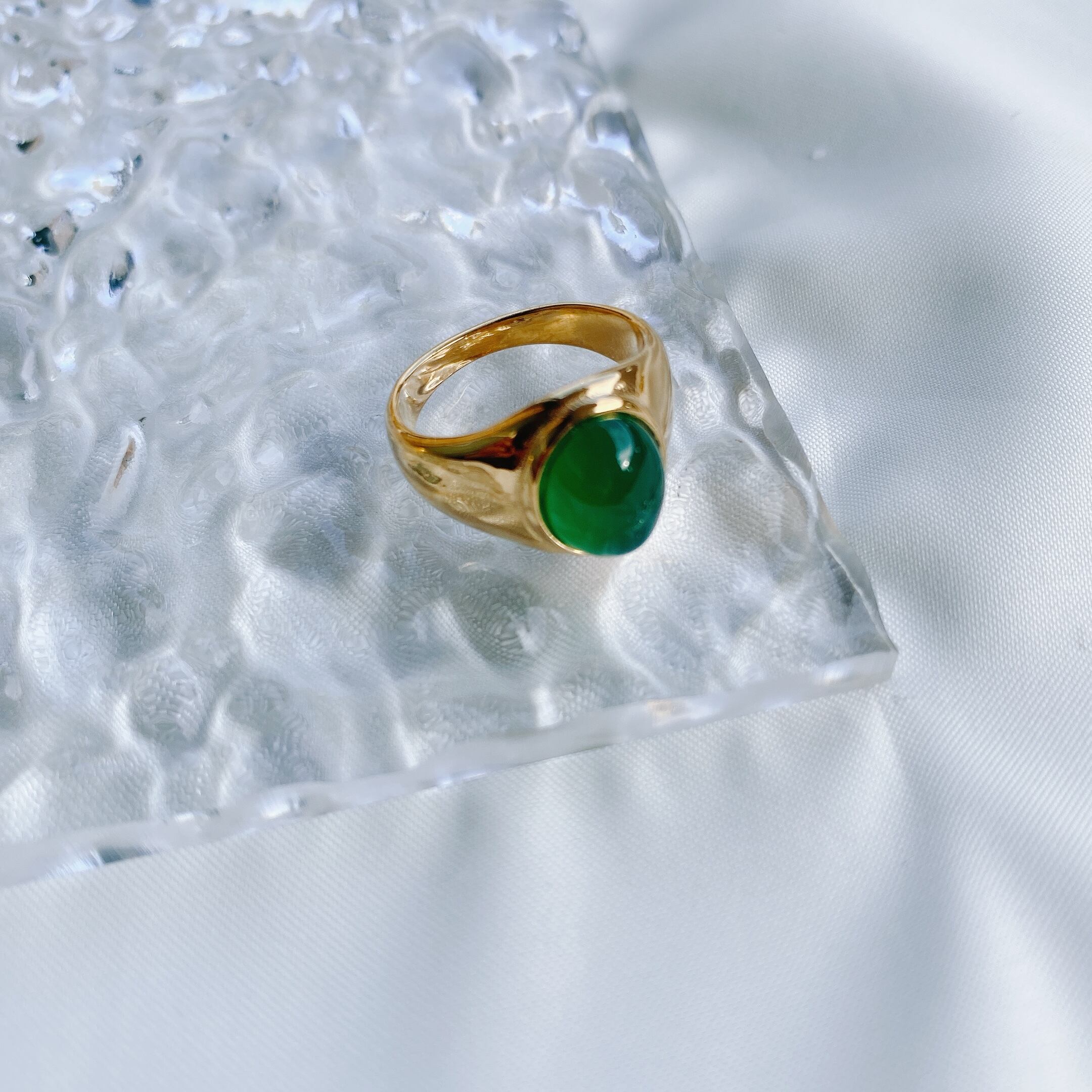 再販stainless green stone ring