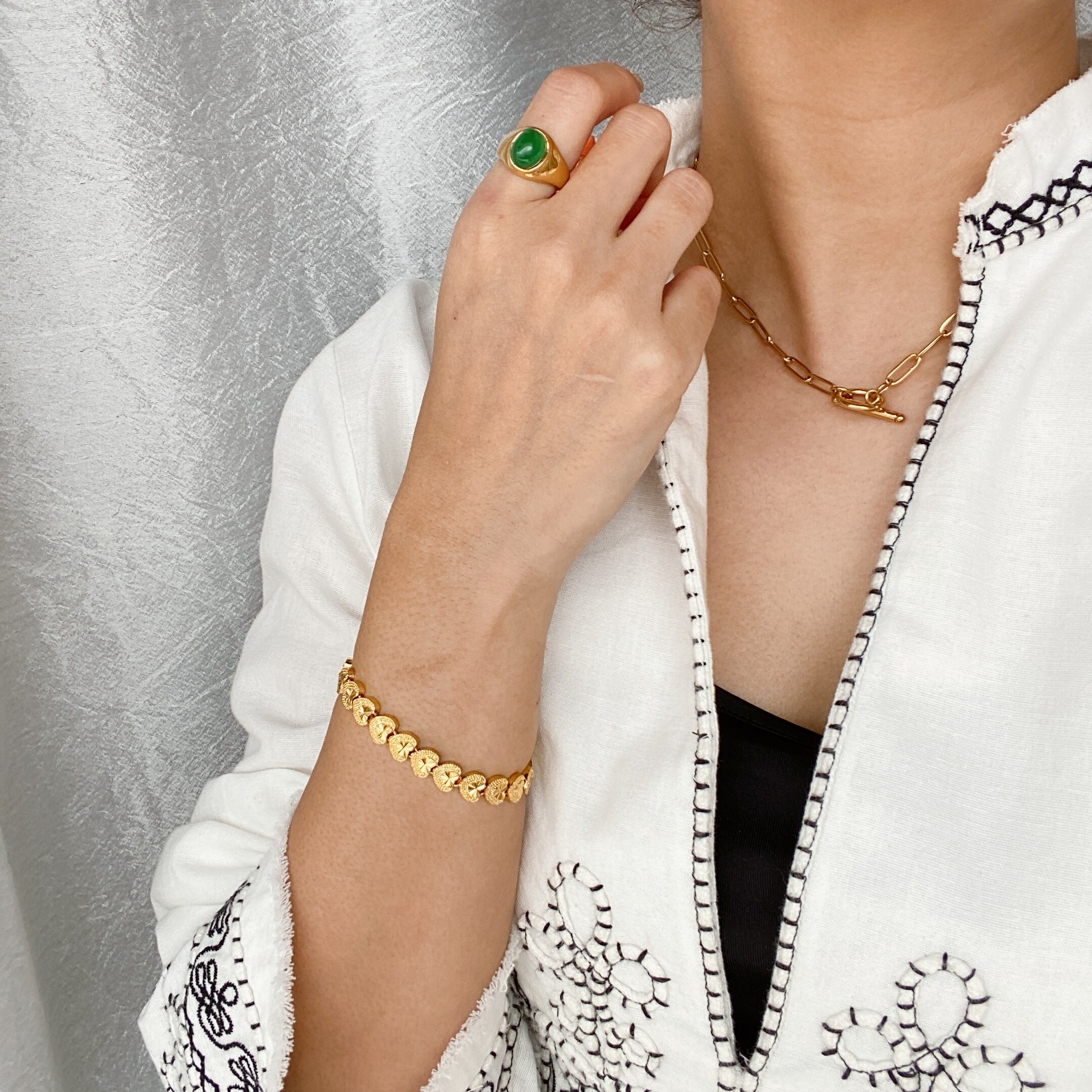 グリーンストーンがポイントの大人可愛いリング