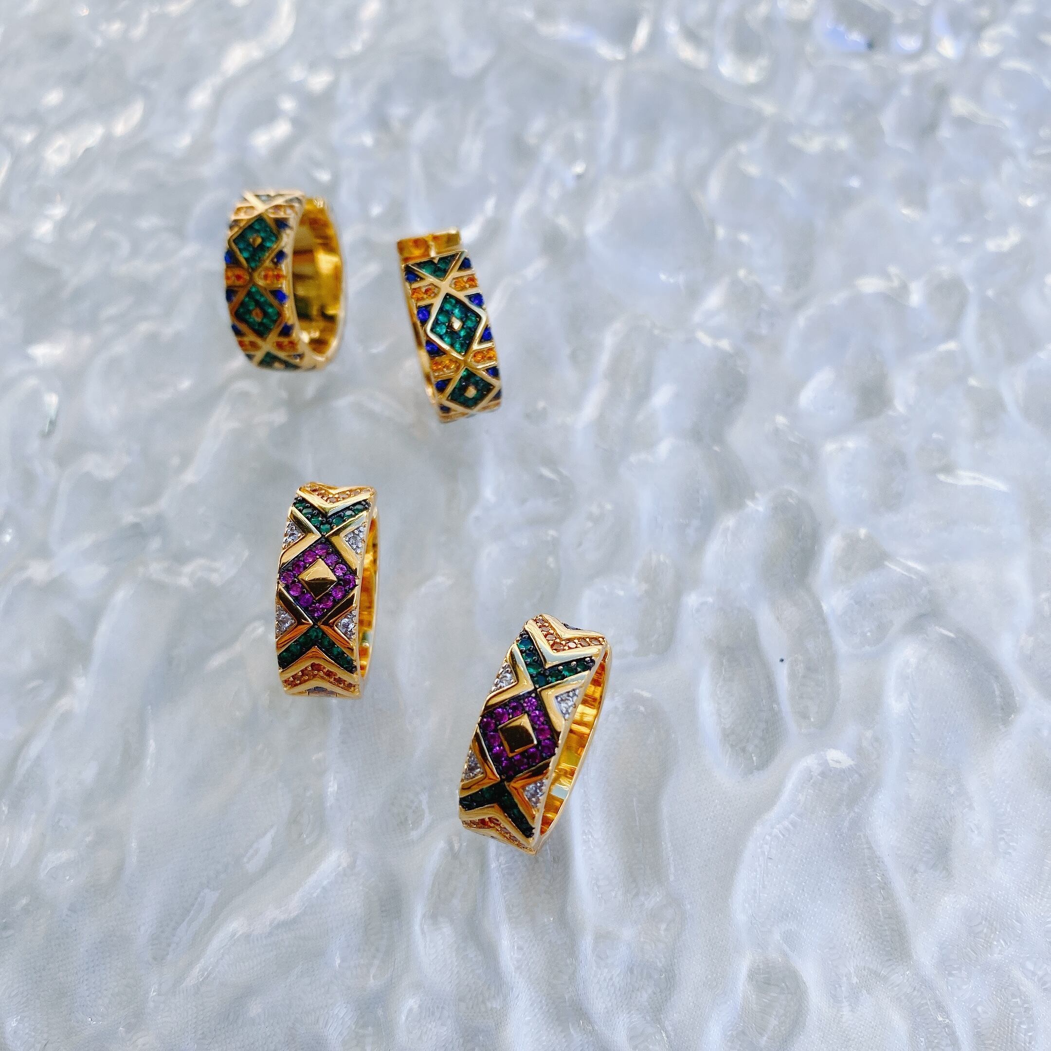 ネイティブな柄が凄く凄く綺麗で小さなジルコニアがたくさん埋め込まれたゴージャスフープピアス!!