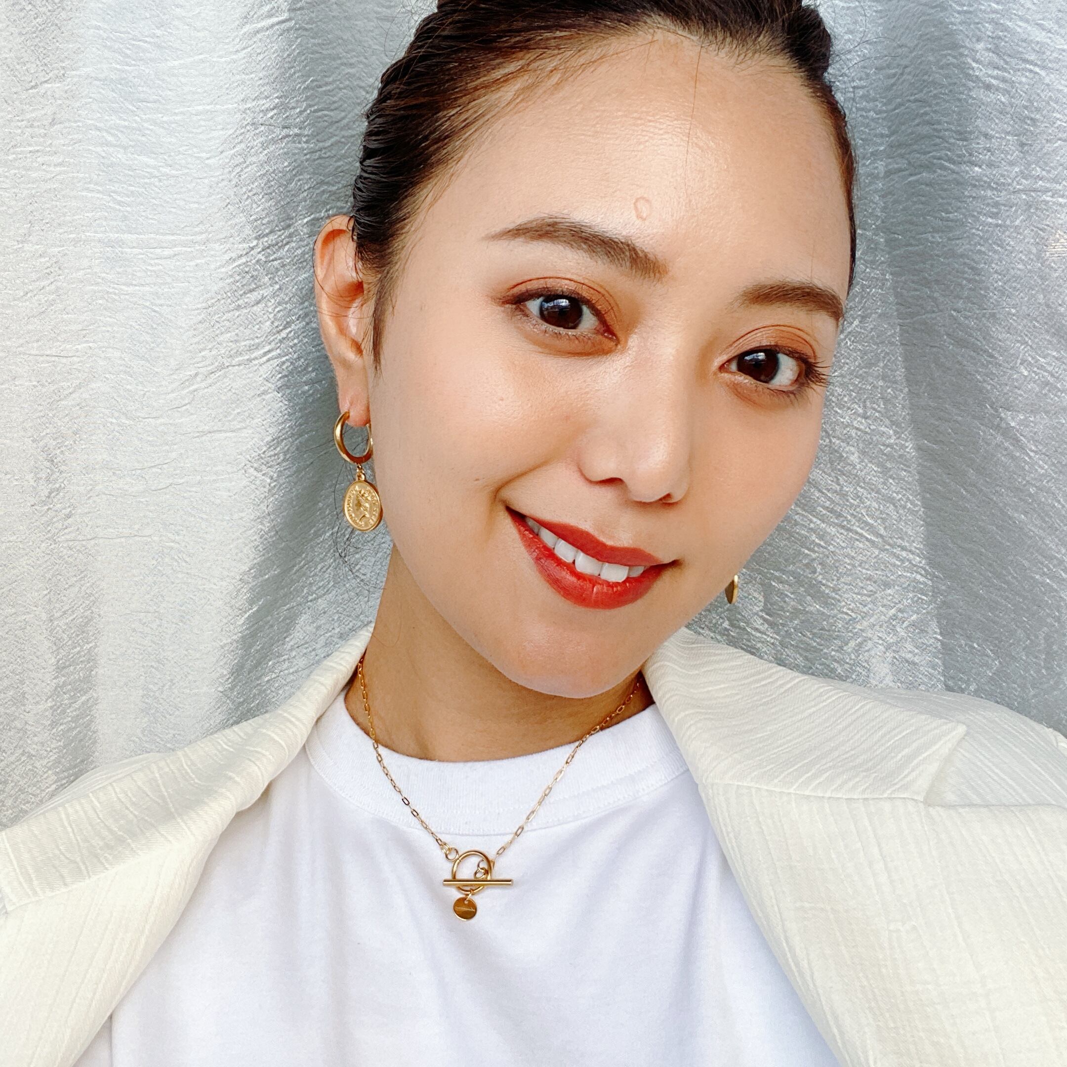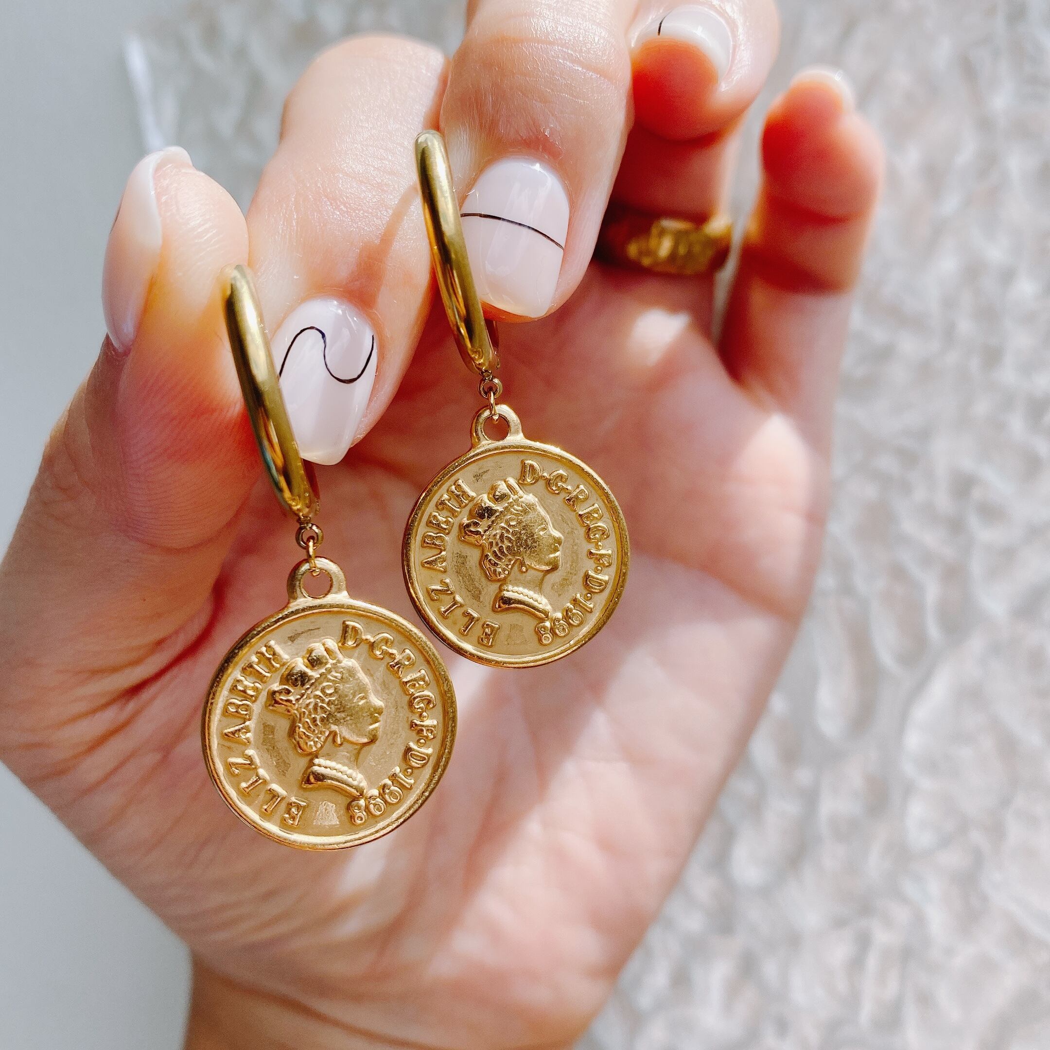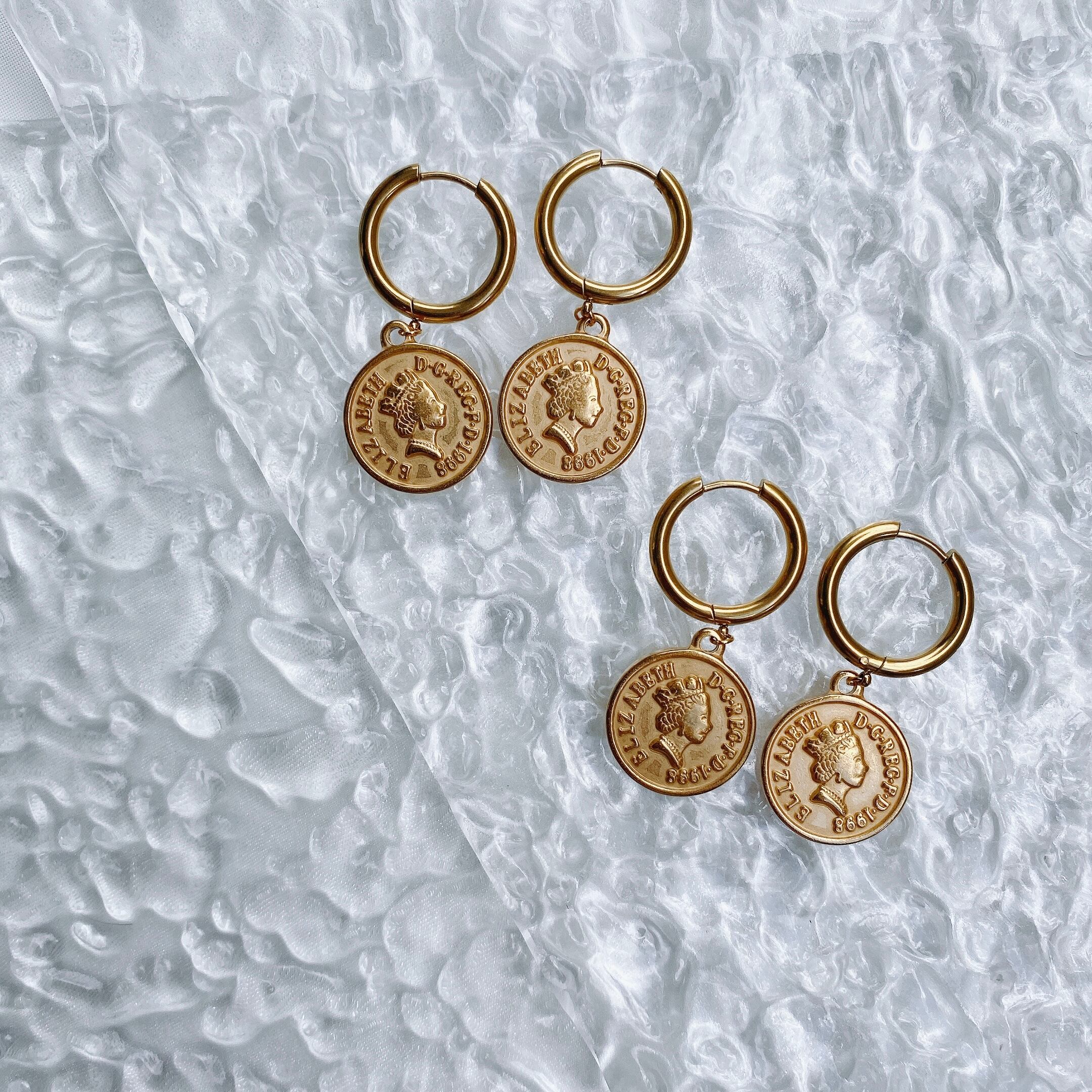 ヴィンテージ 感あるコインチャームにフープとシンプルなデザインに仕上げました