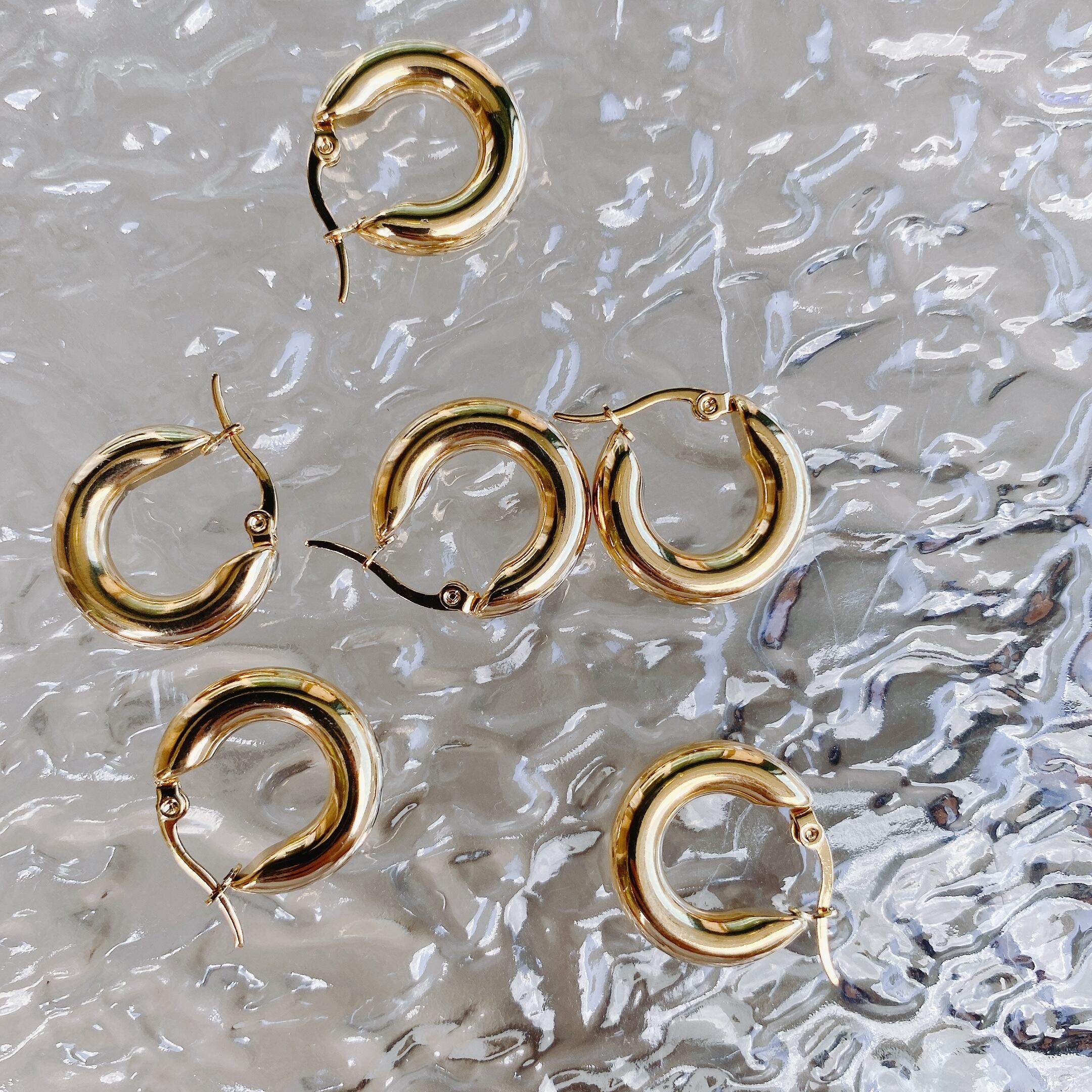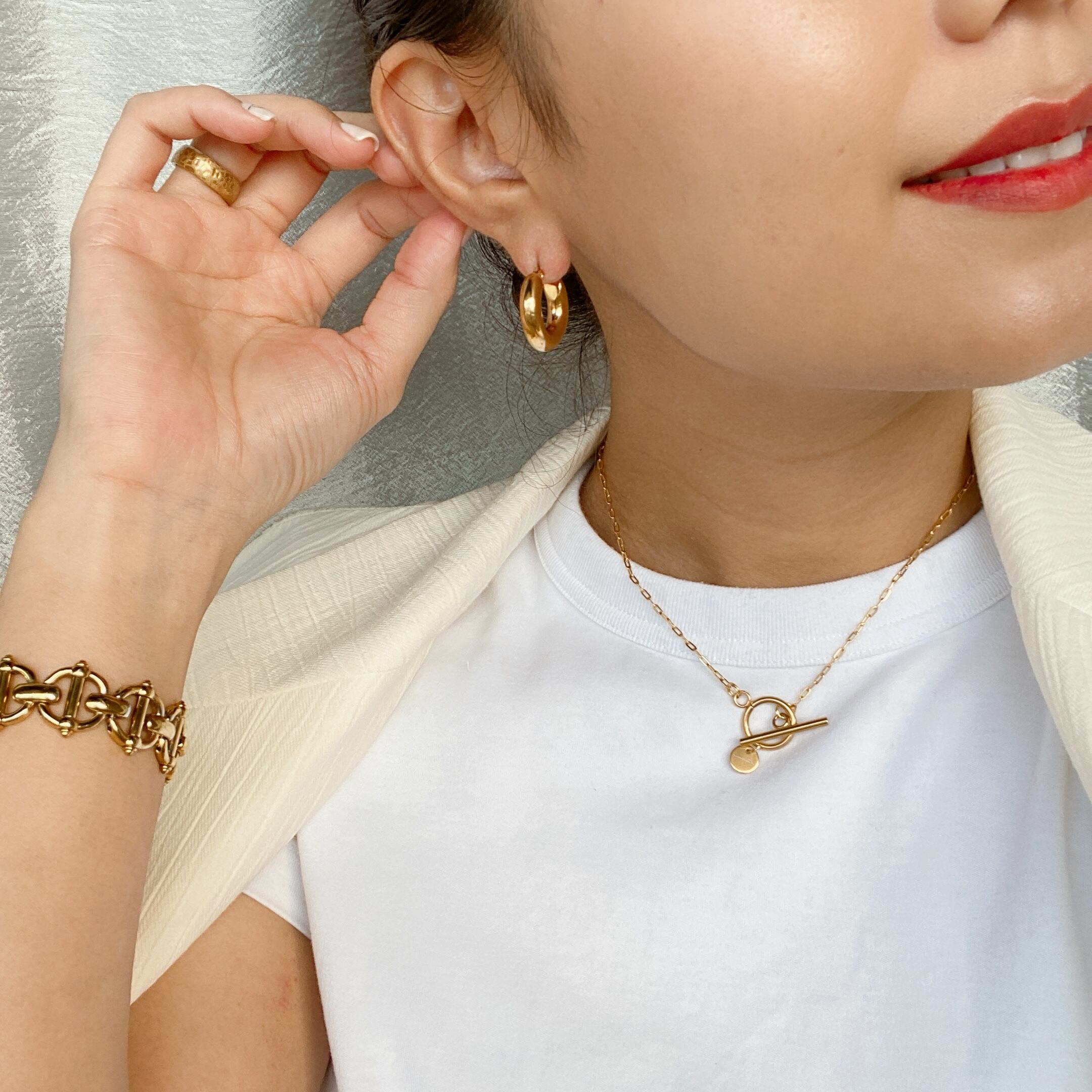 フープの太さが高見えする大人カジュアルなコーデにもってこいなヘビロテ確定アイテムになりそうです