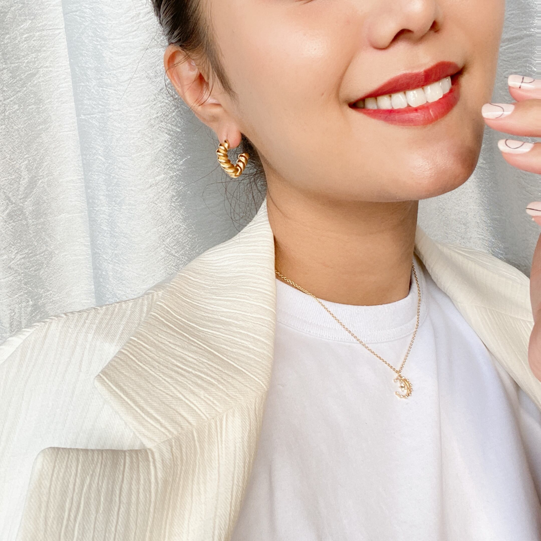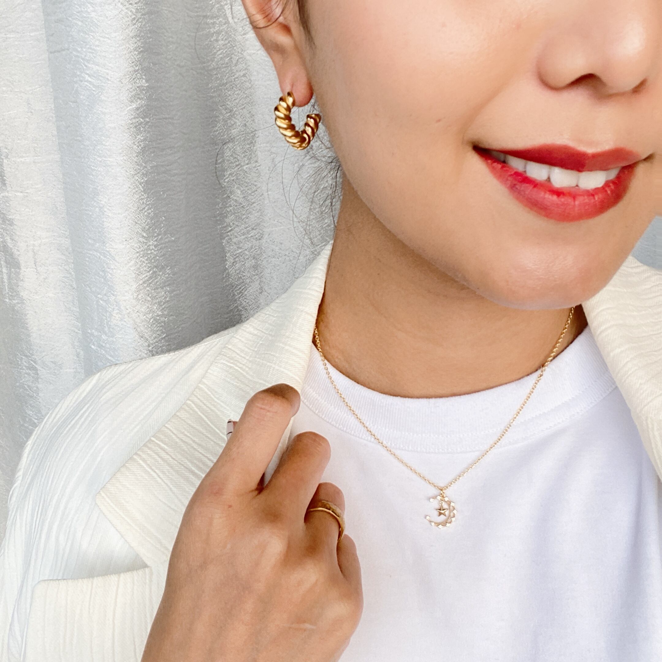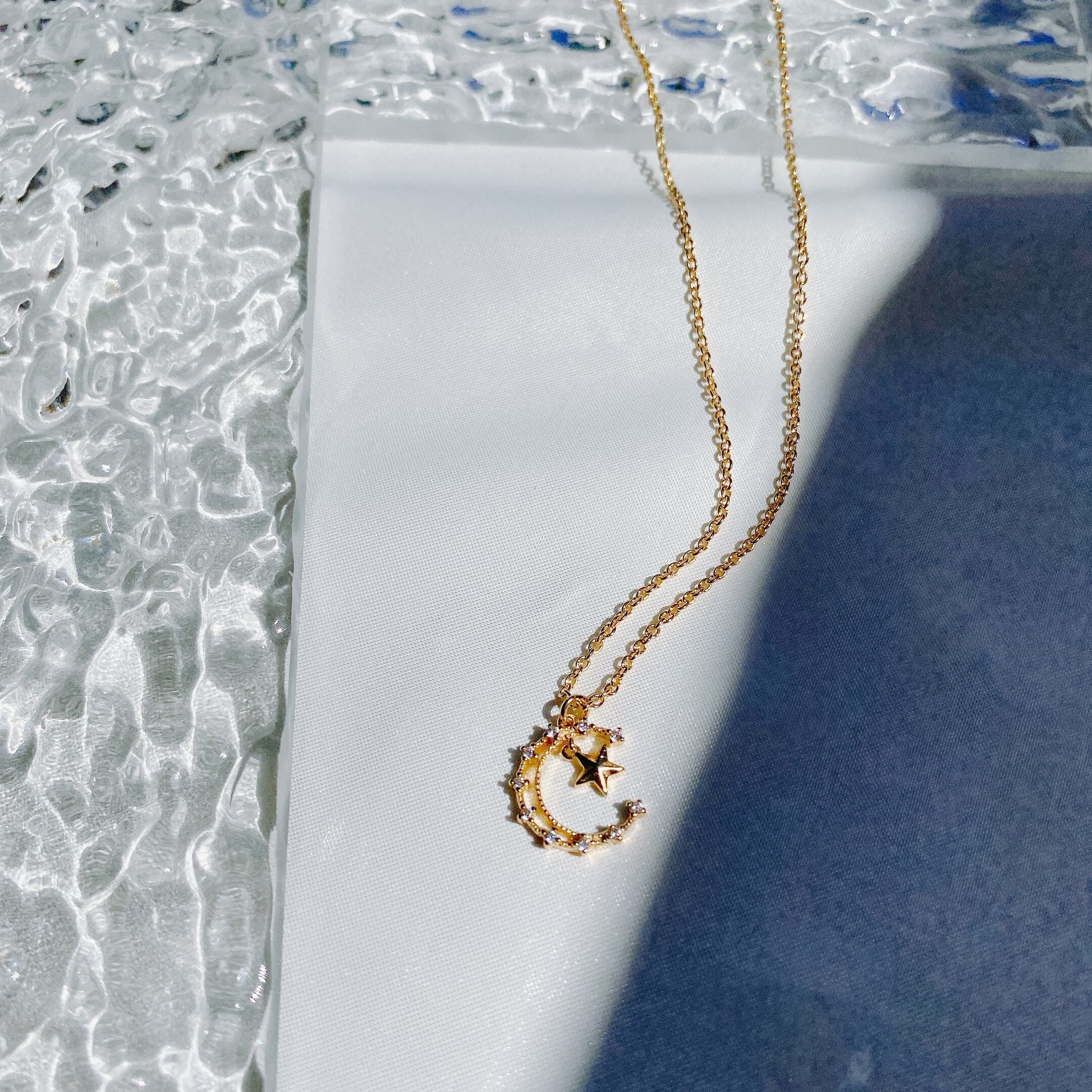 華奢な線のムーンチャームには小さなジルコニアがふられていて、更にスターチャームが付いた可愛いアイテムです