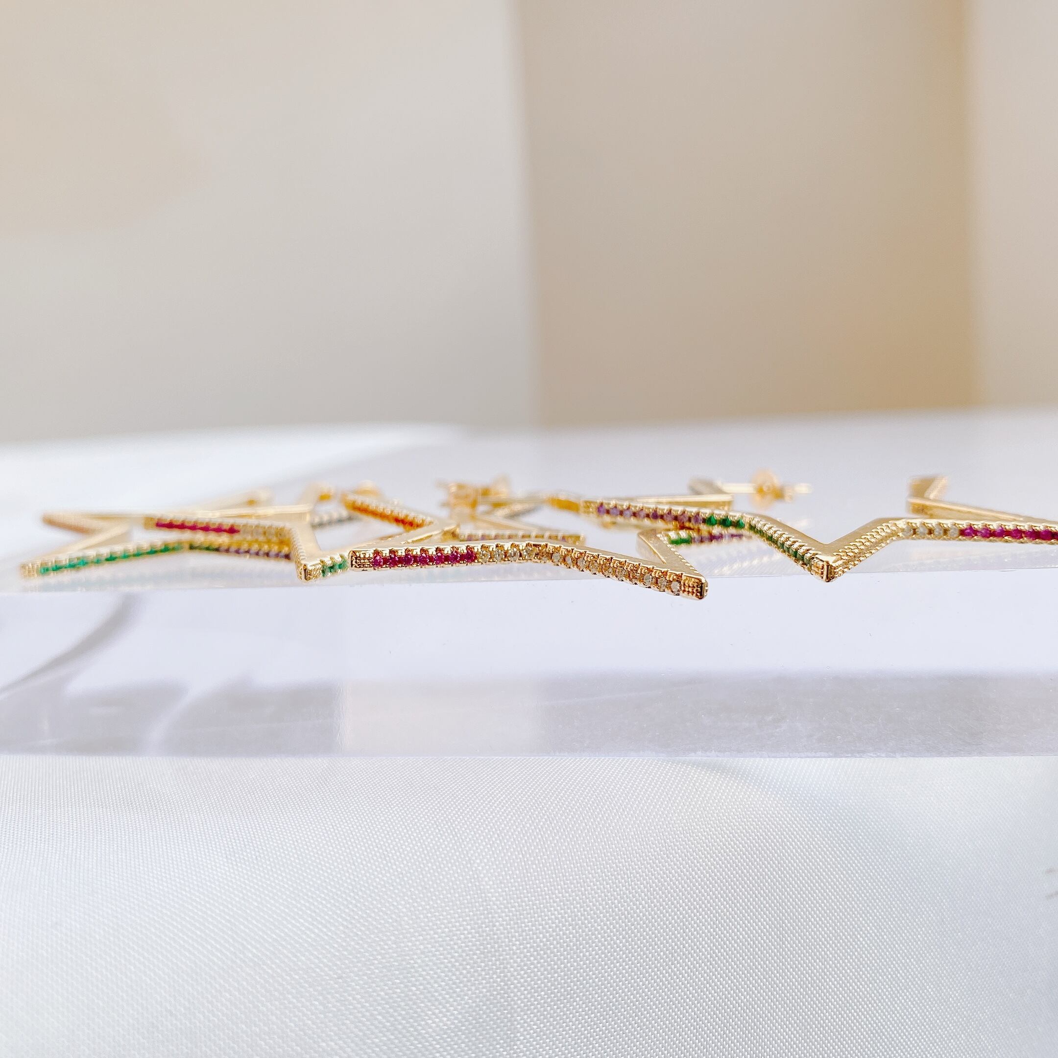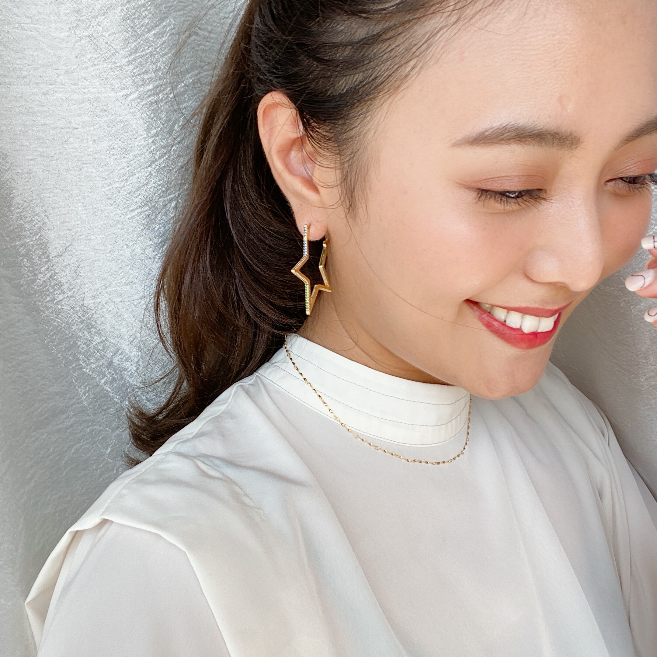 とても小さいジルコニアが豪華についた見た目も可愛いく綺麗なスター型のフープピアス✴︎