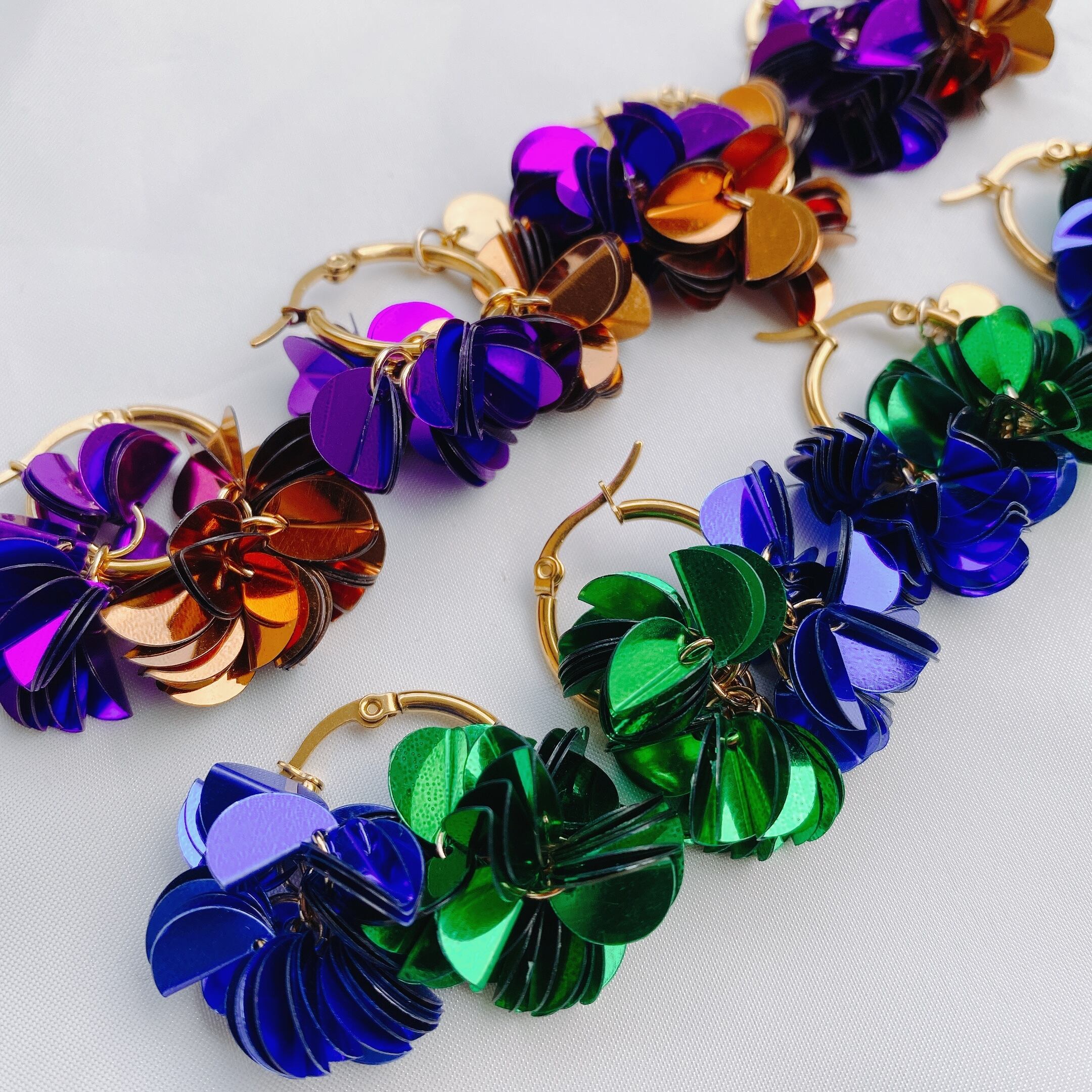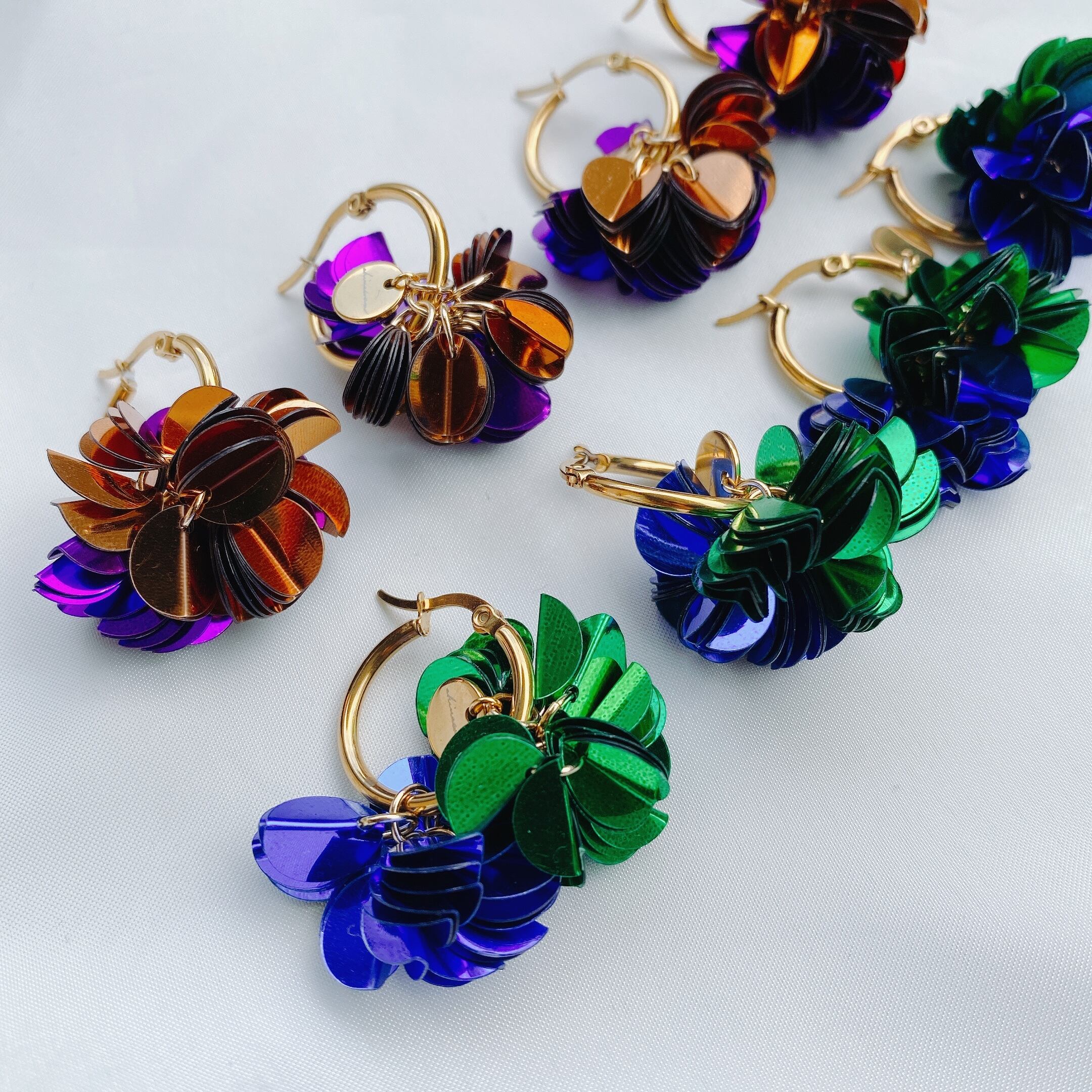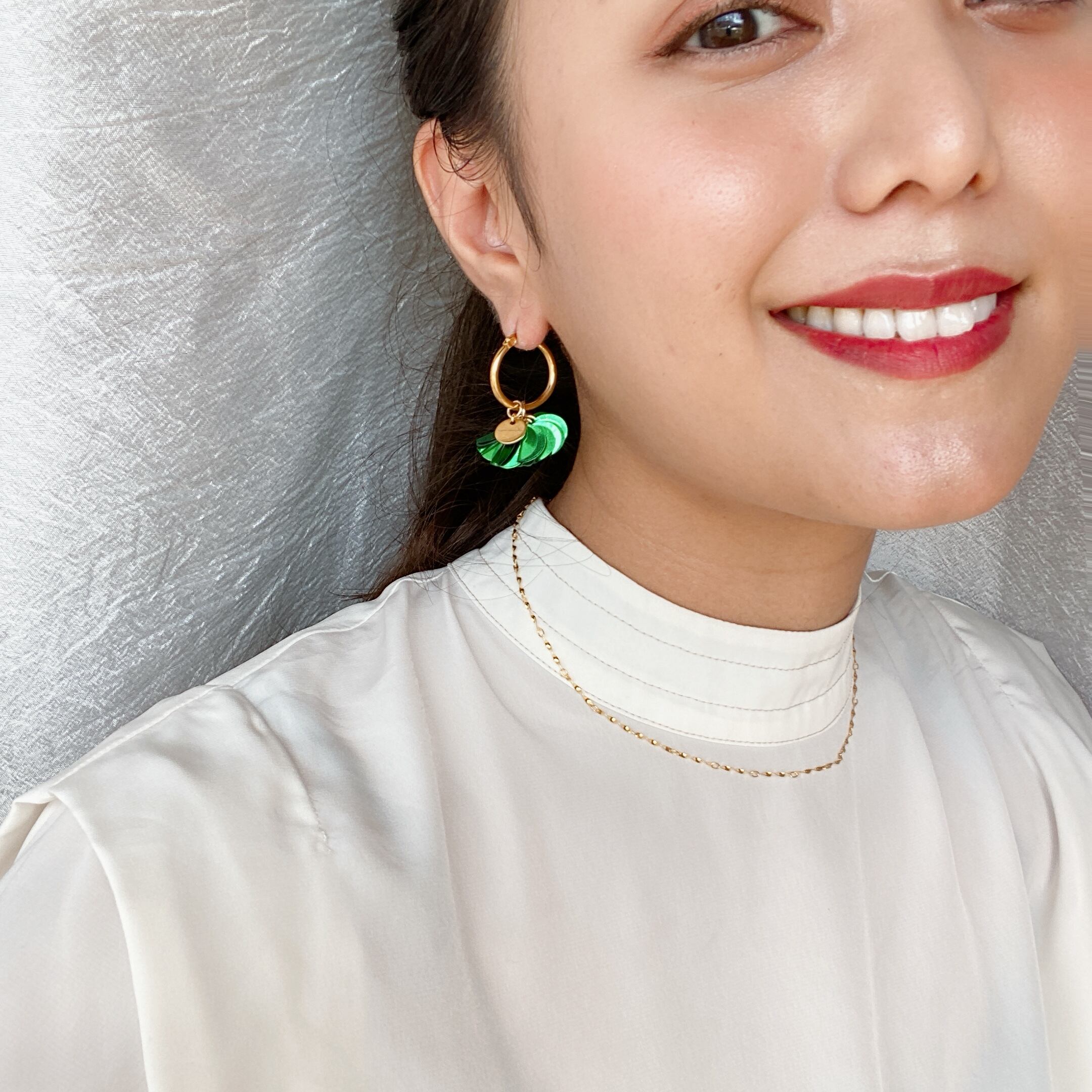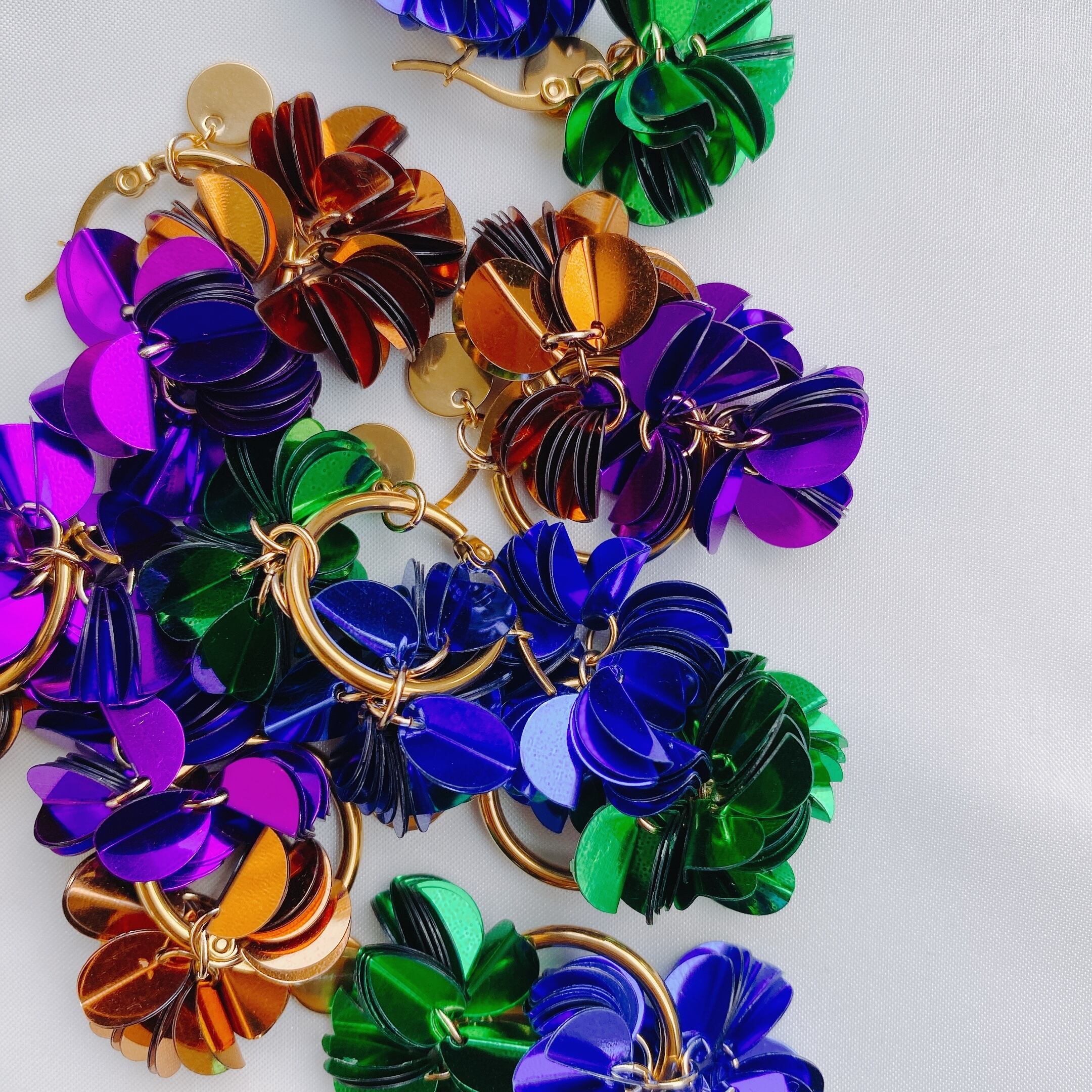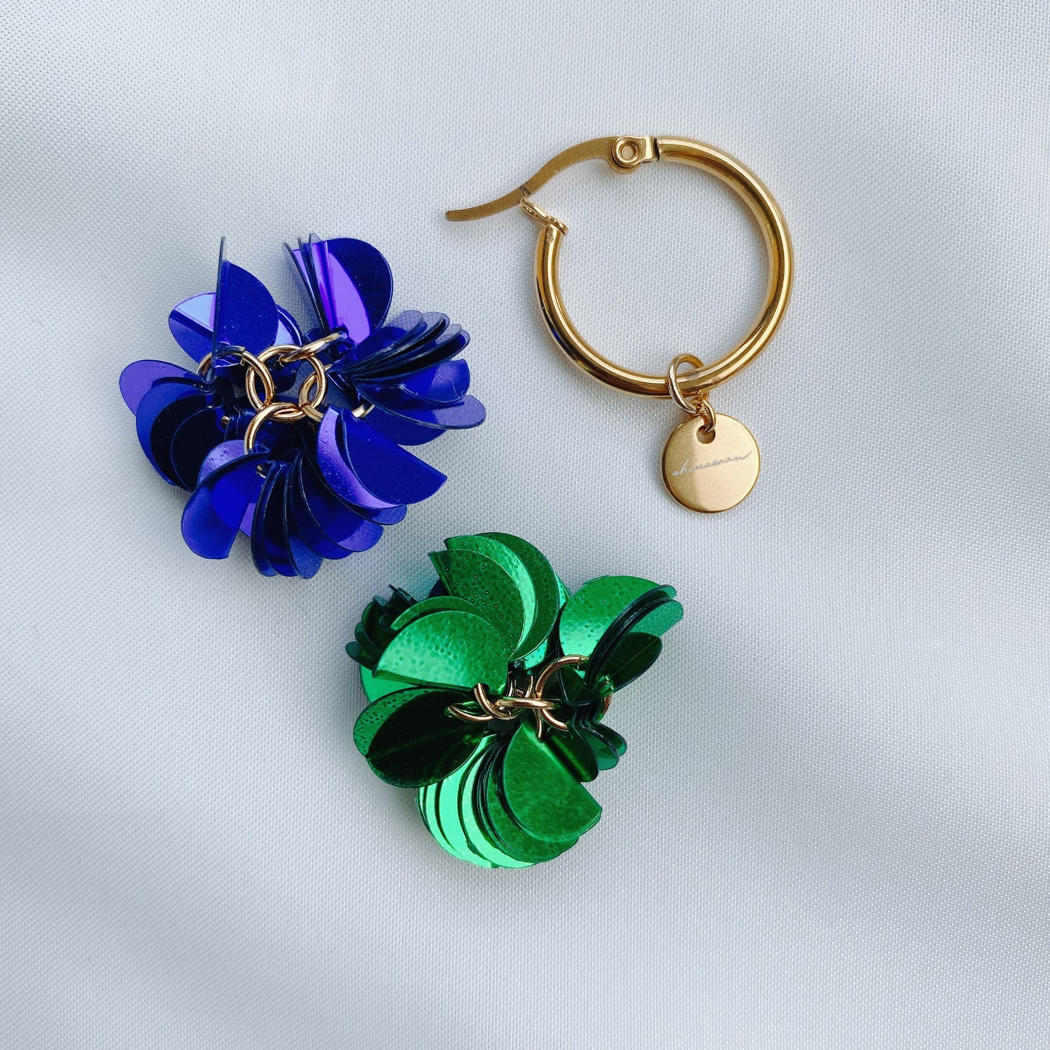 オリジナルチャームにオリジナルボンボンタッセルが2色ついた4wayフープ ピアス♡