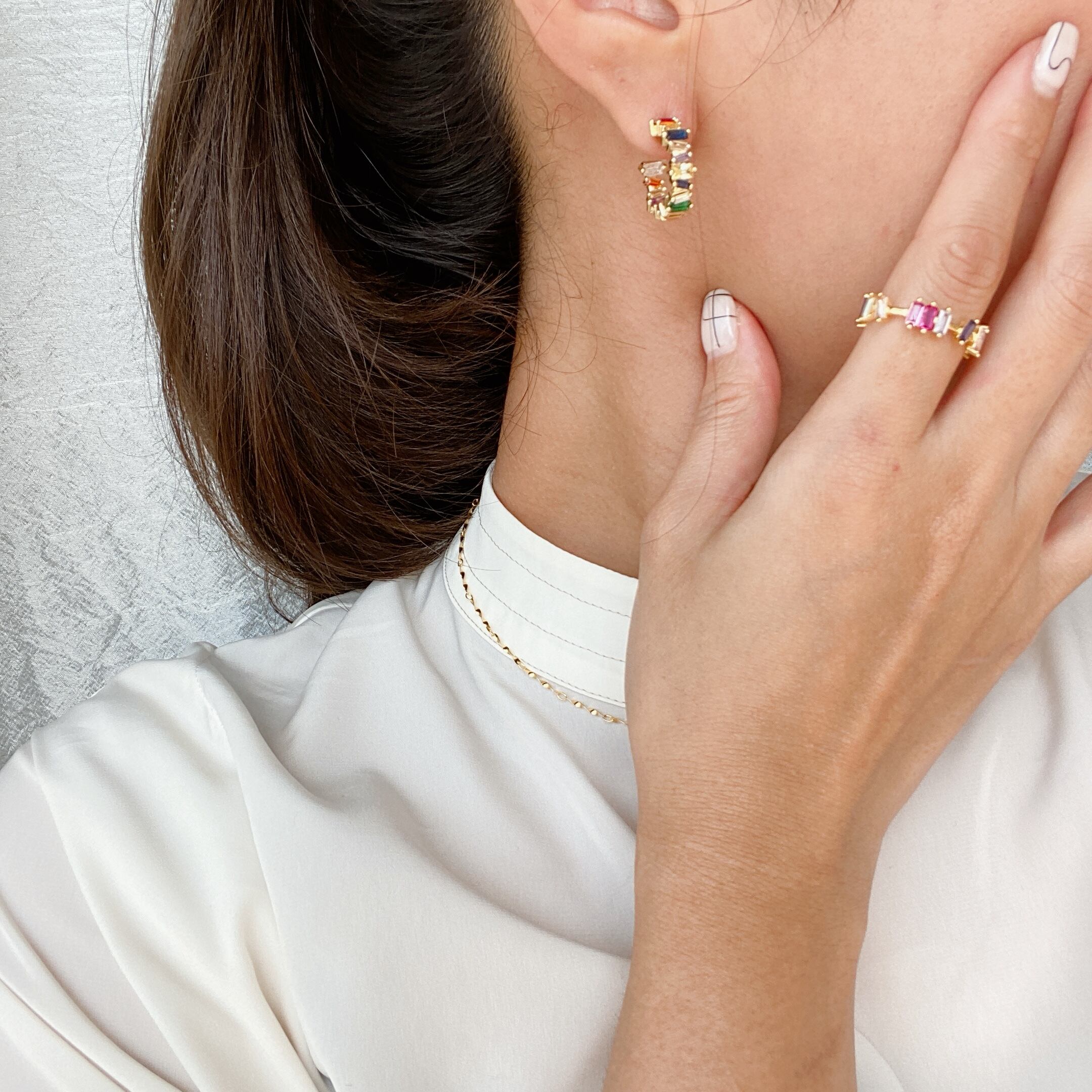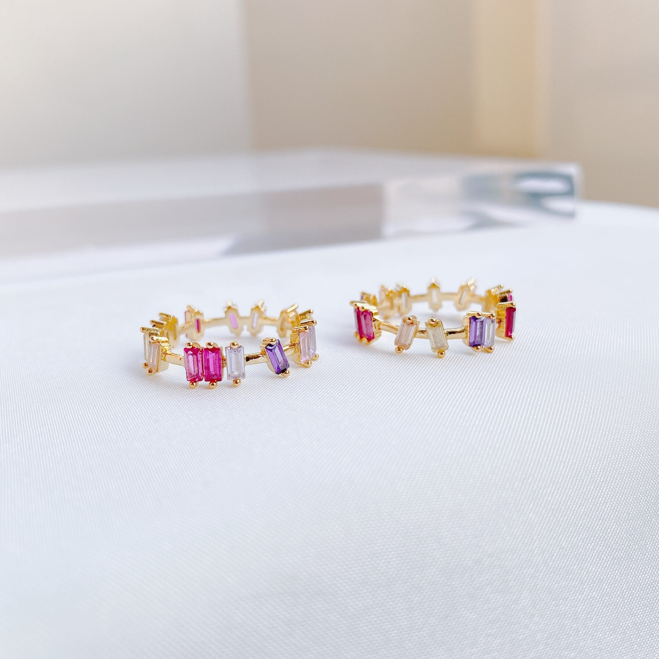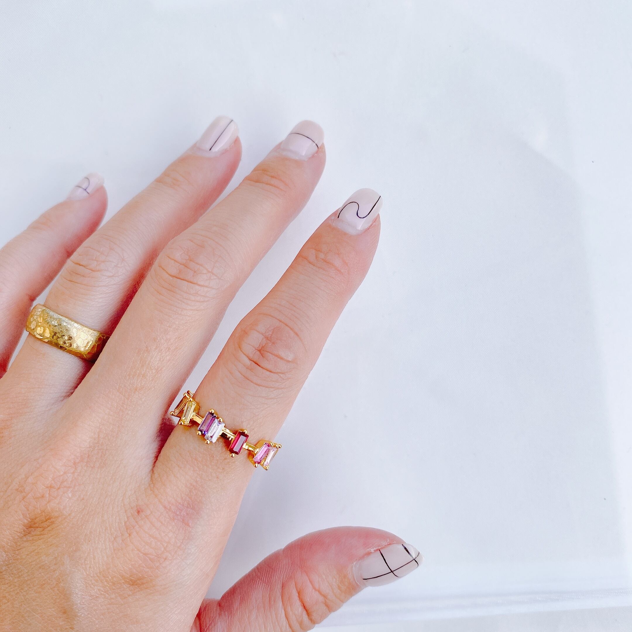 ピンクやパープル系の色味が可愛いジルコニアデザインリング