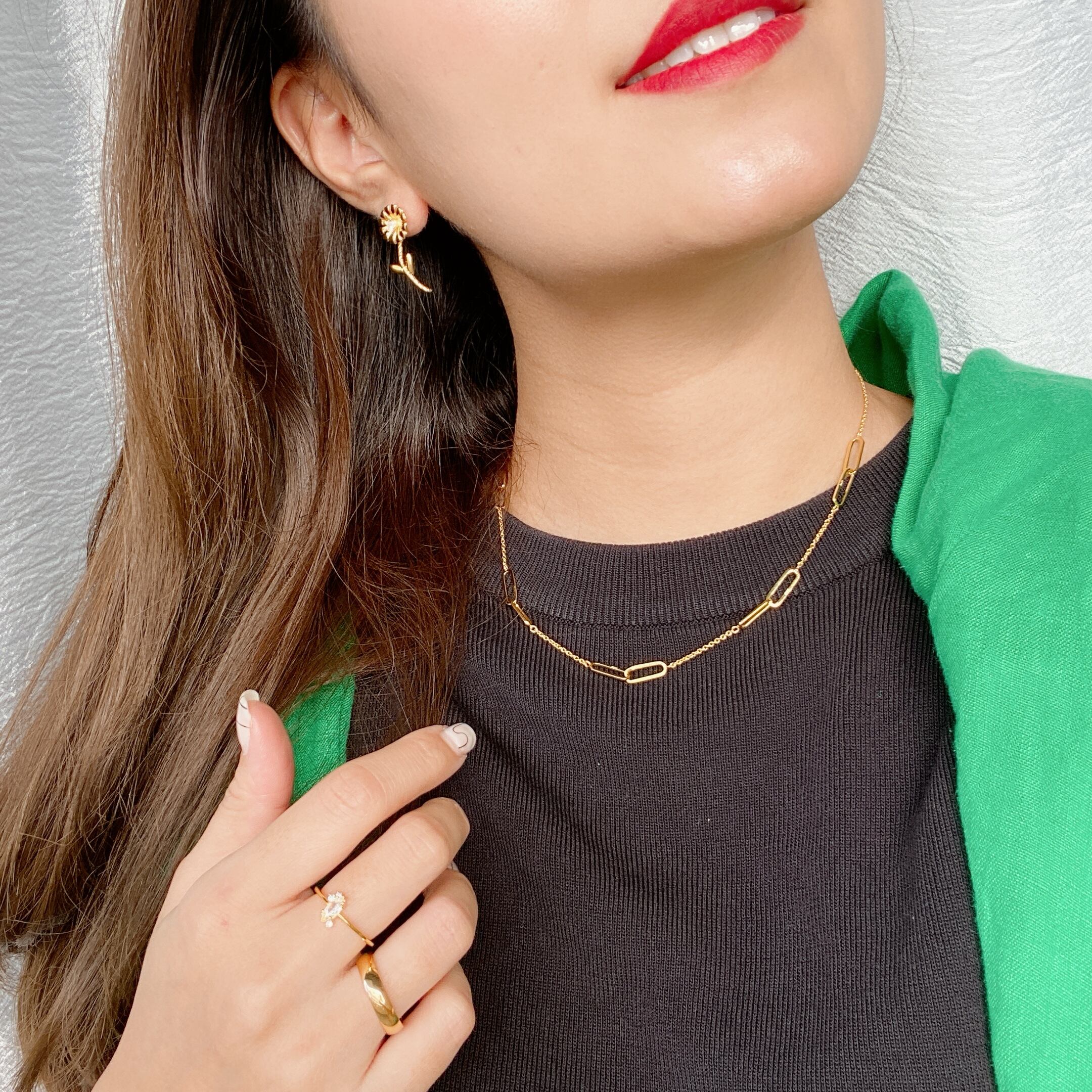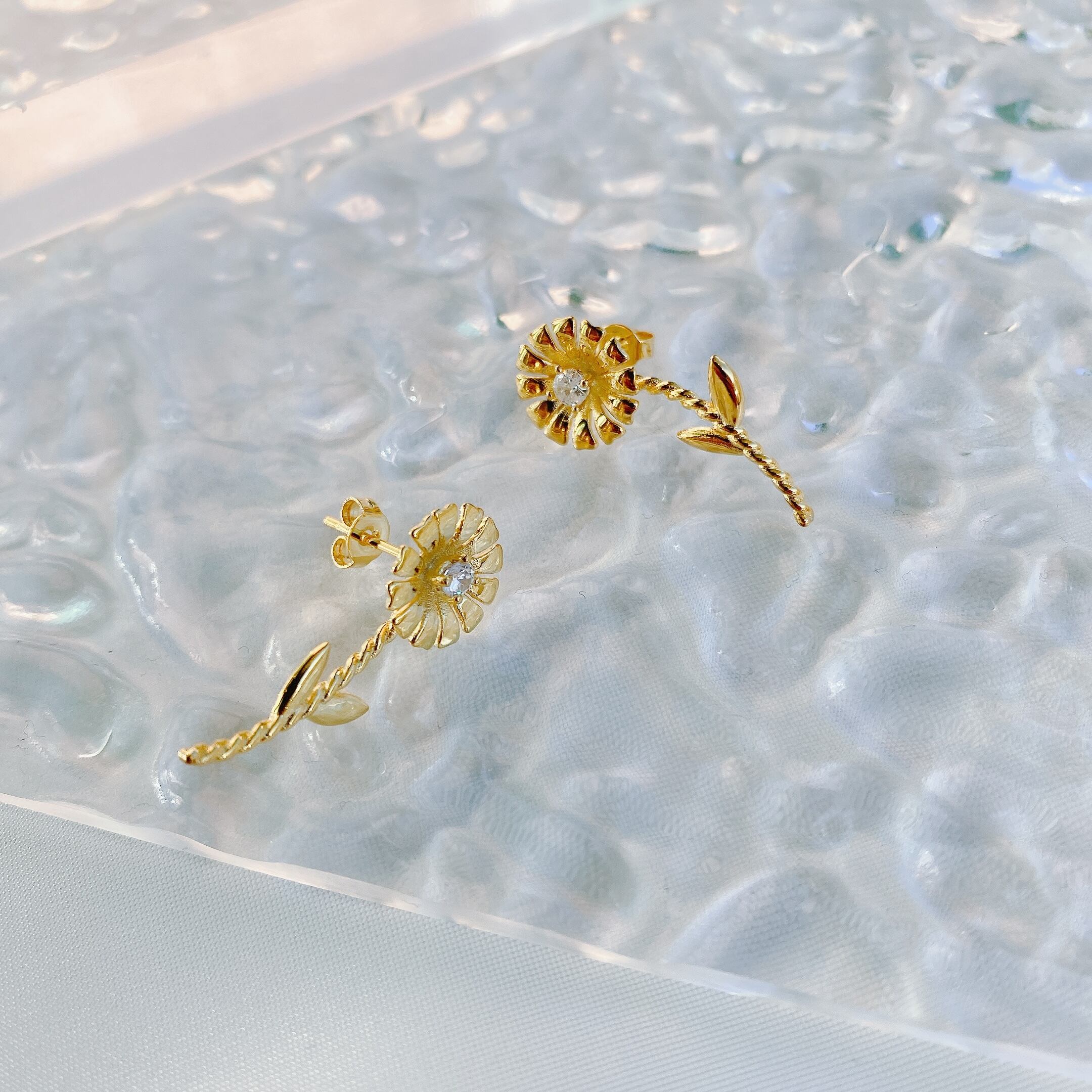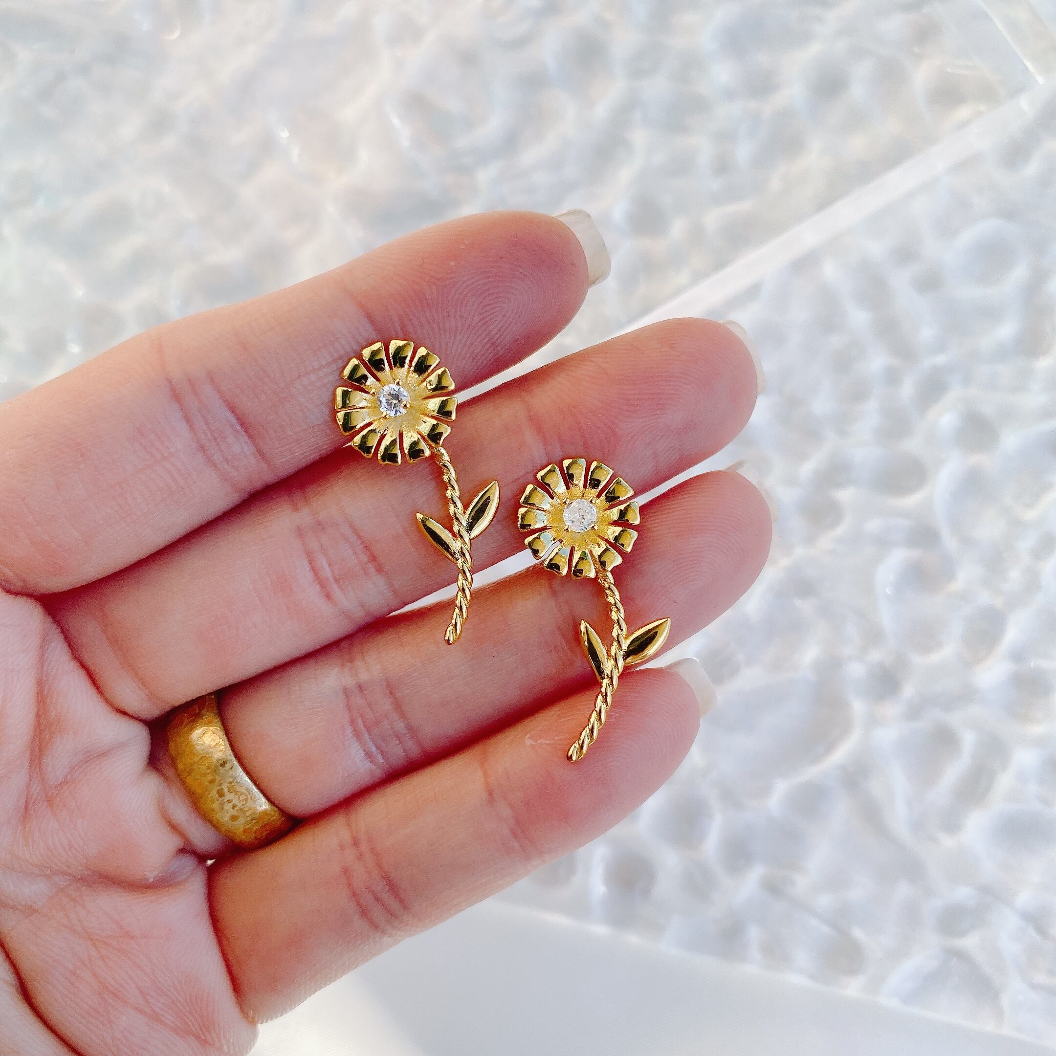 お花の真ん中にストーンがついており大人可愛い遊び心あるアイテムになっております。