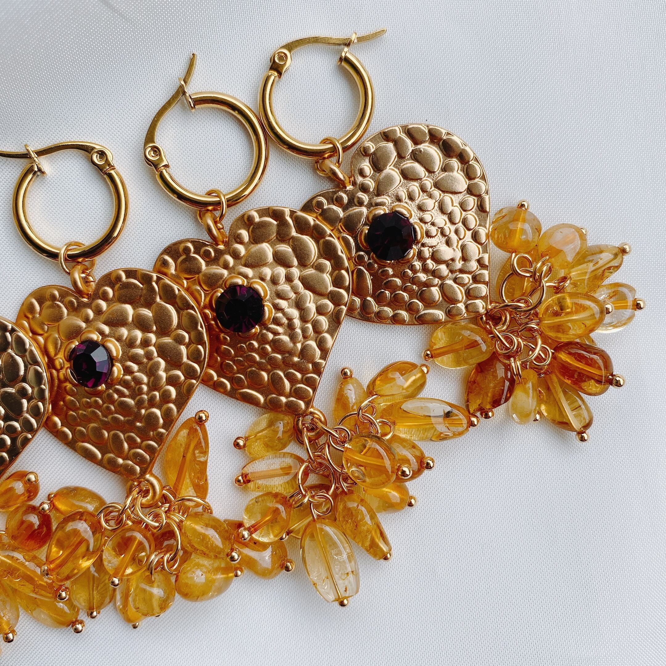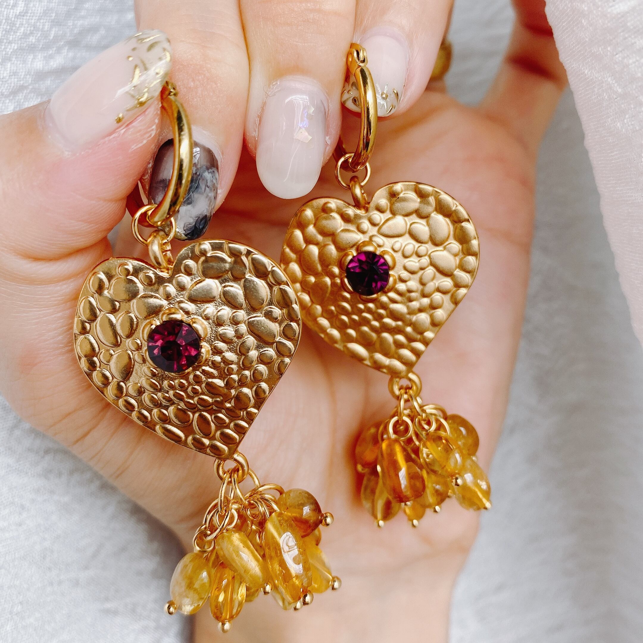 ハートはマットゴールドで控えめに真ん中には濃いめパープルストーンが一粒♡