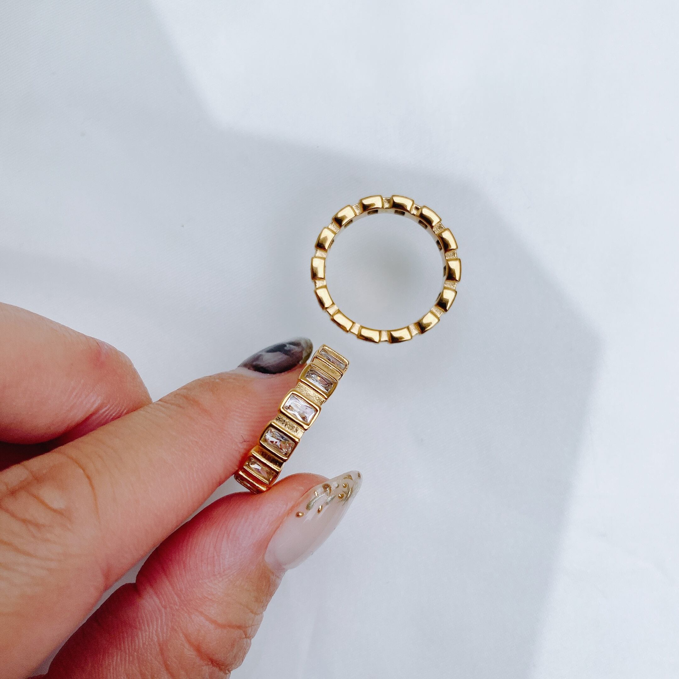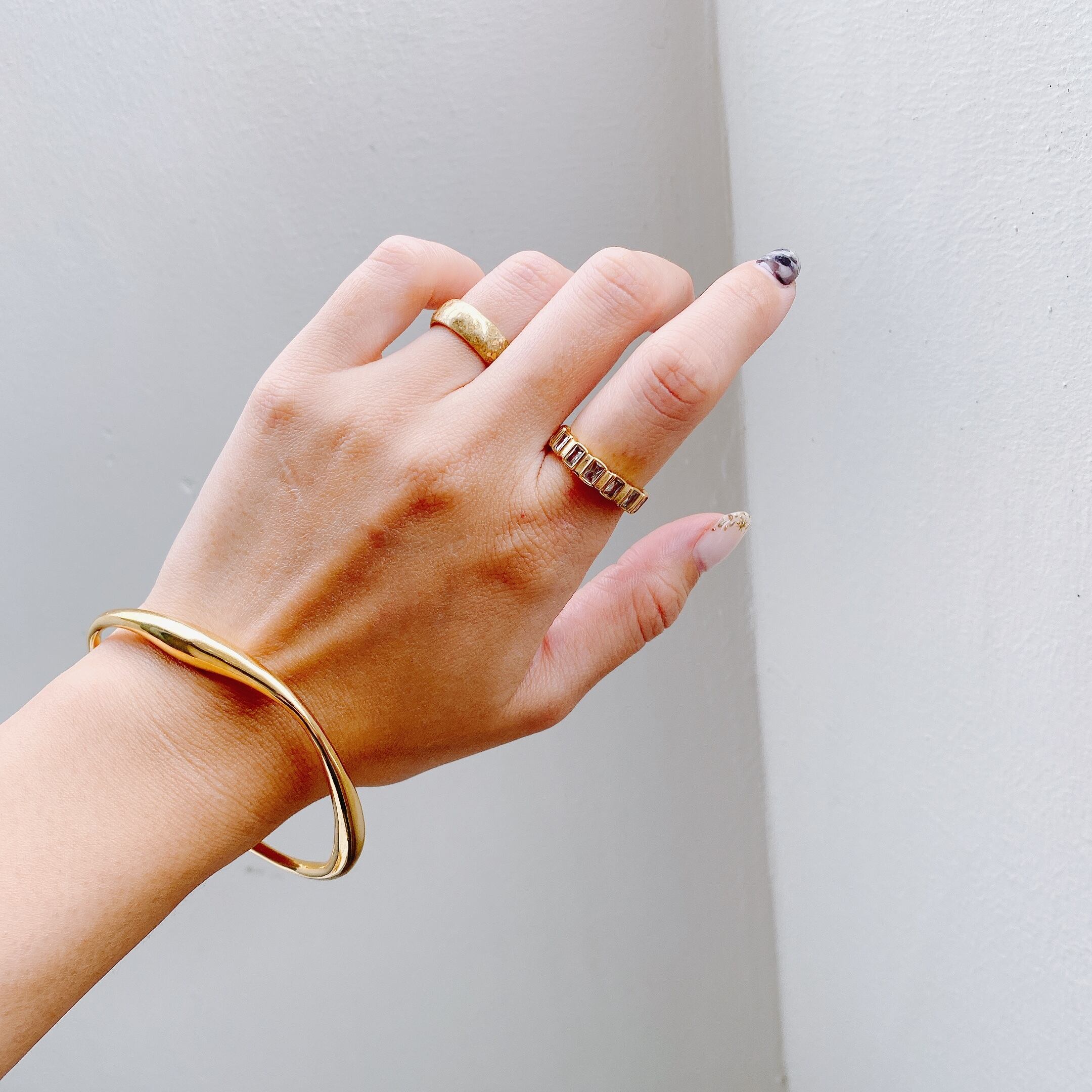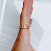 落ち着いた色味のゴールドにクリアジルコニアが埋め込まれた大人カジュアルにばっちりはまってくれるお出かけリング!!