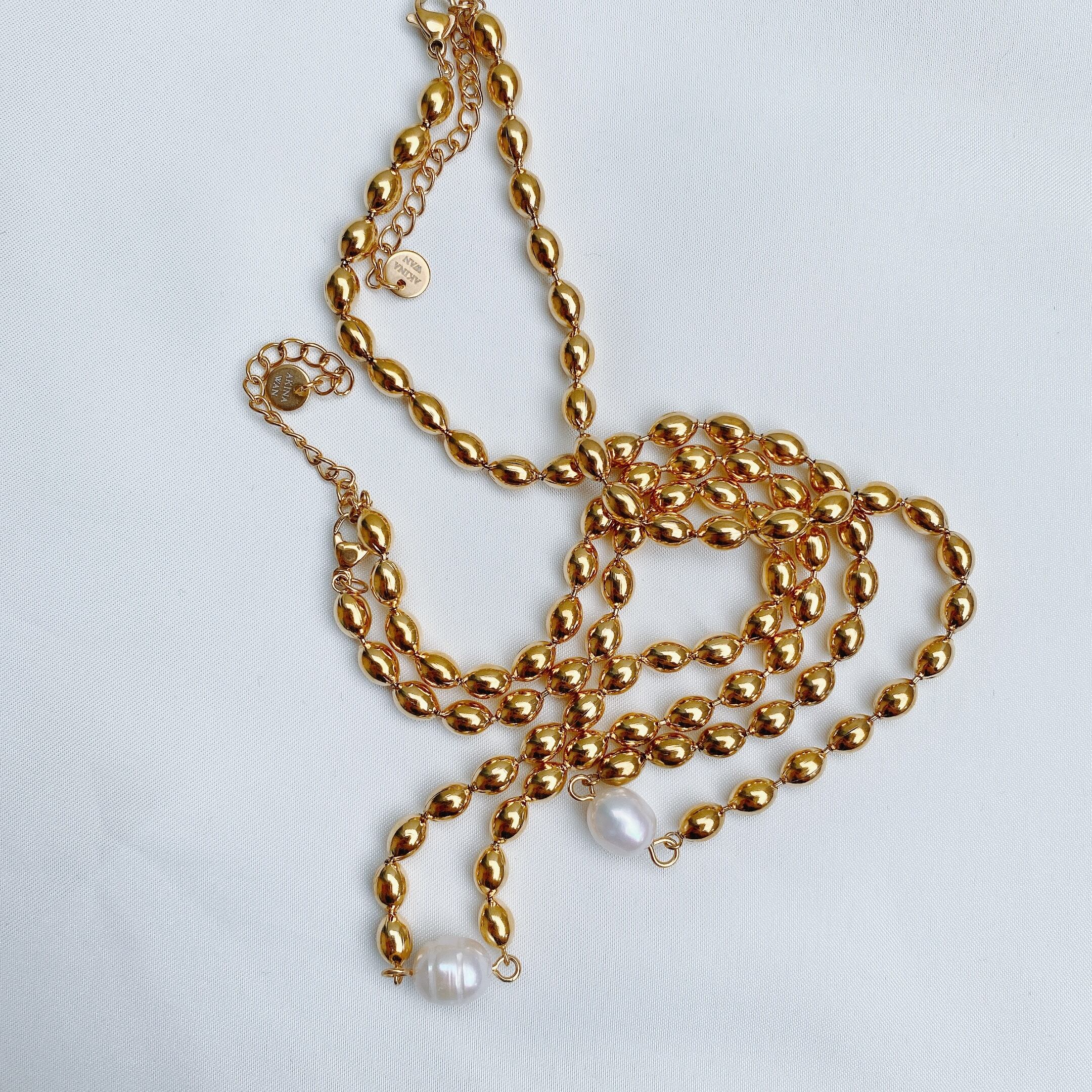 ビーンズチェーンに一粒淡水パール入りの大人可愛いエレガントアイテム