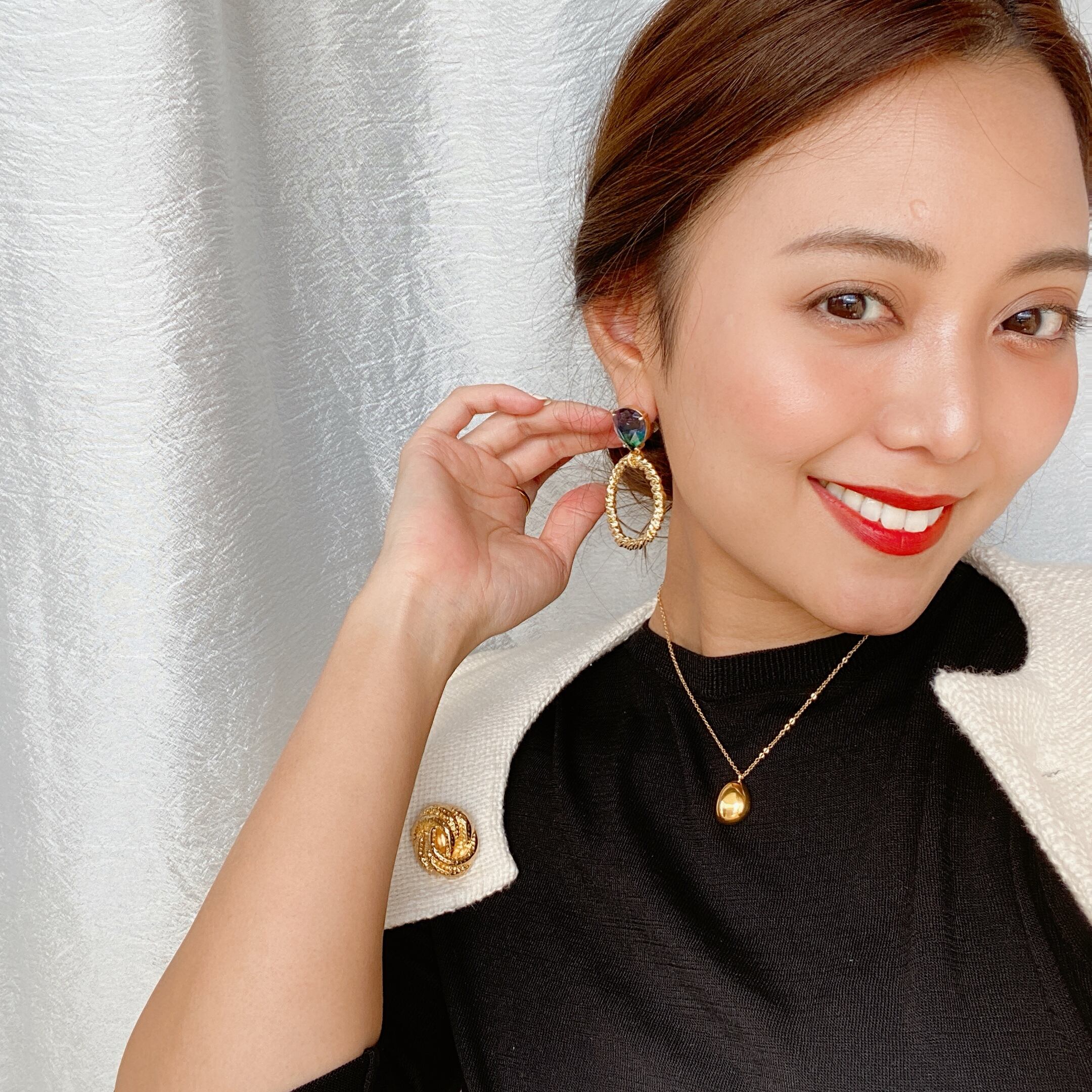 顔まわりを鮮やかに彩りを与えてくれるピアスはメイクを薄くしても◎