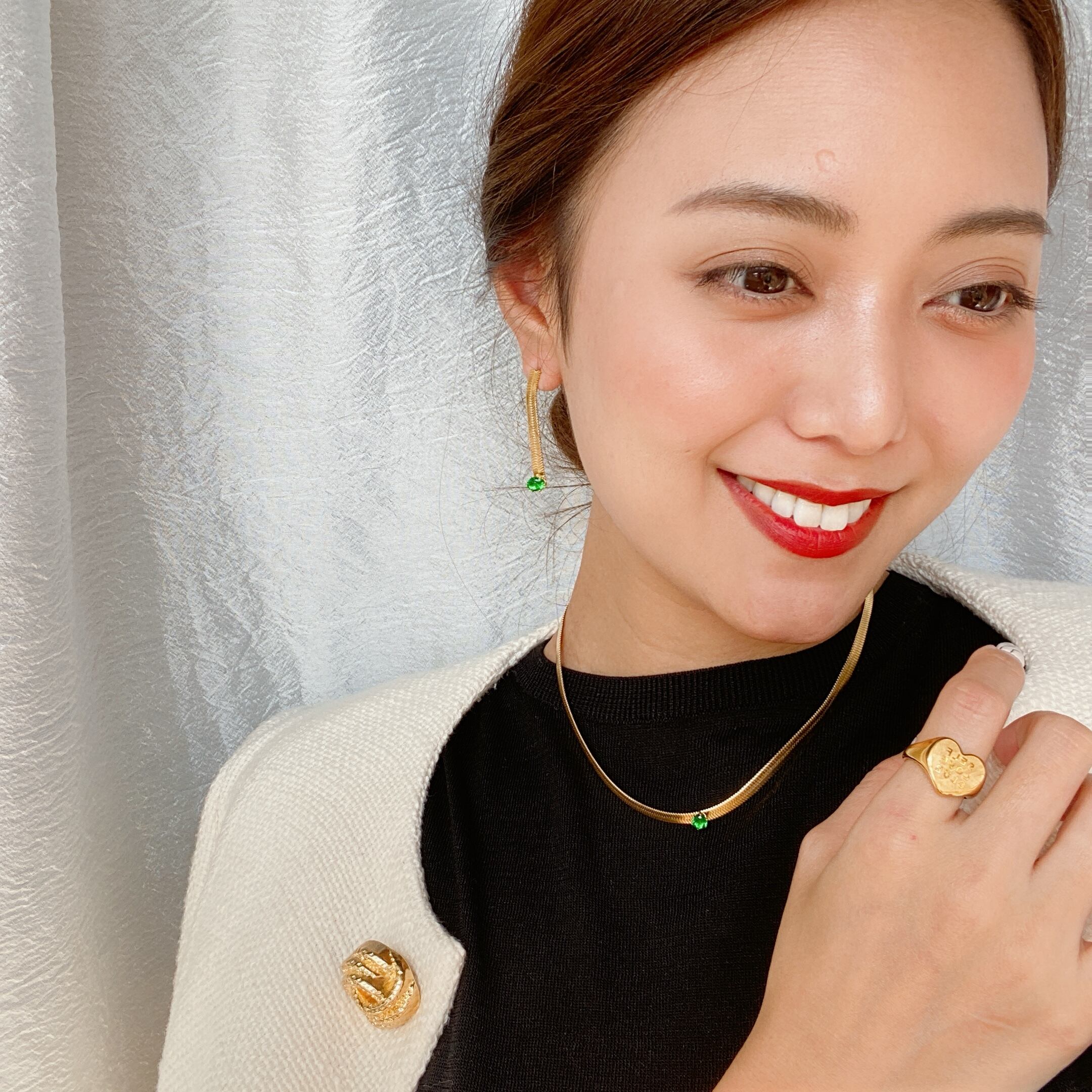 グリーンのジルコニアが一粒ついていて凄く高見えするデザインとなっております!!