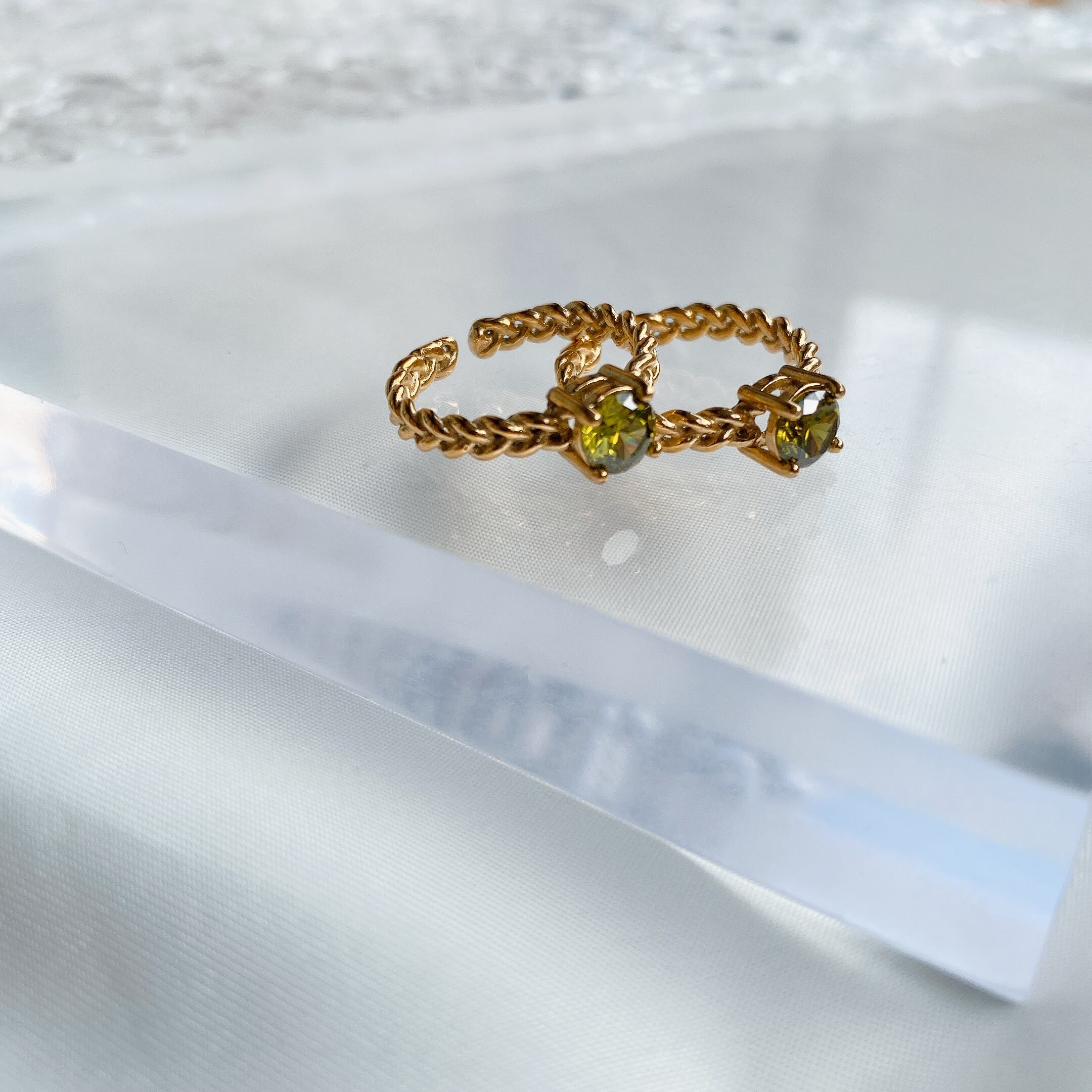 抹茶カラーが優しく肌馴染みがいい大人可愛いリング
