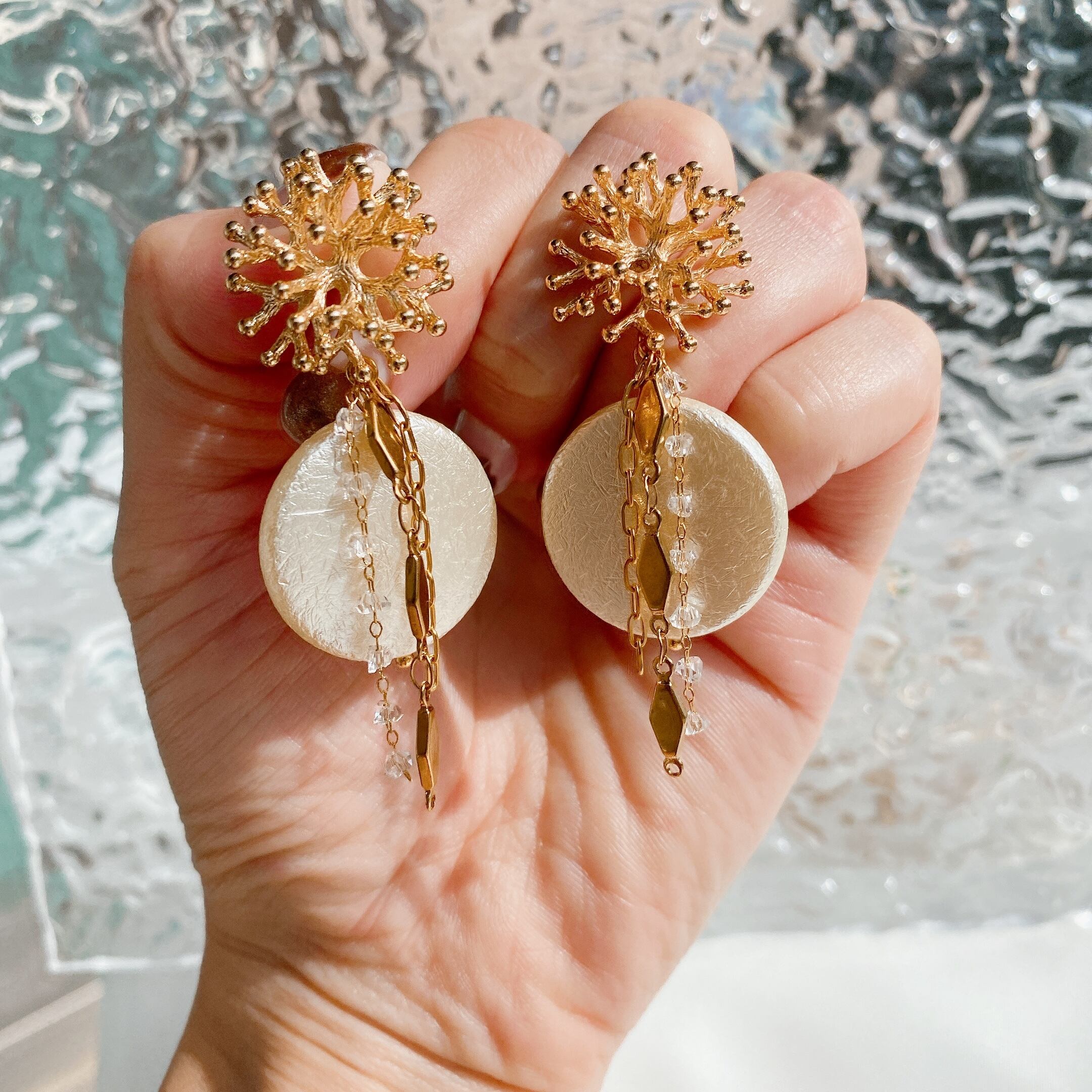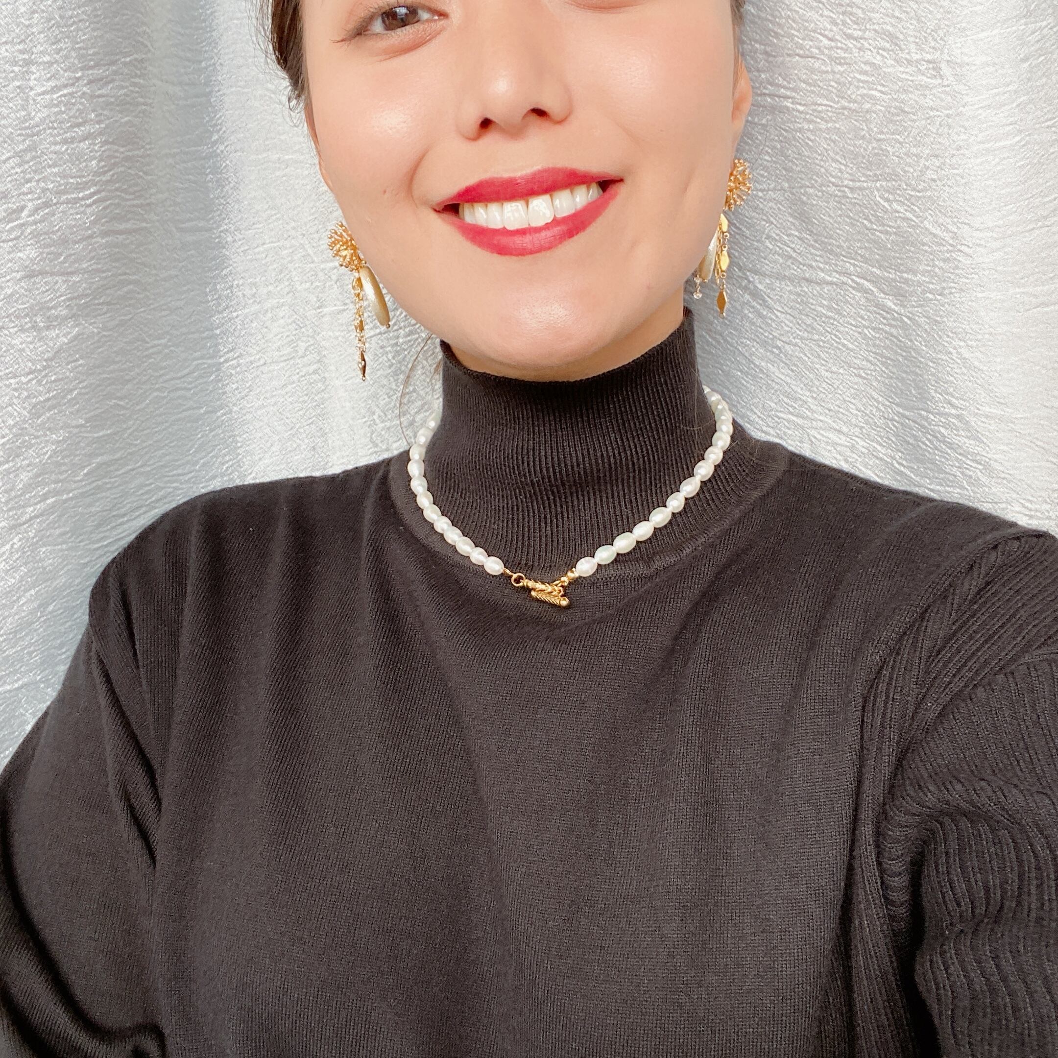 デザイン違いのチェーンが3種類付いており顔まわりでゆらゆらと動きあるデザインでデートにもgood◎