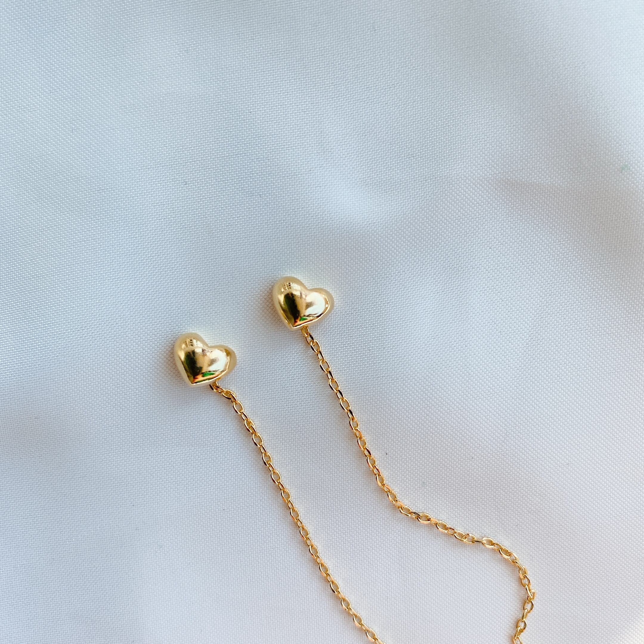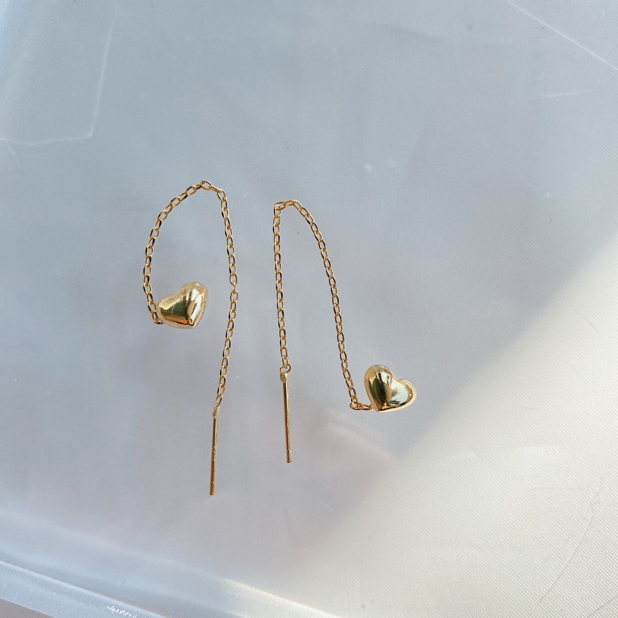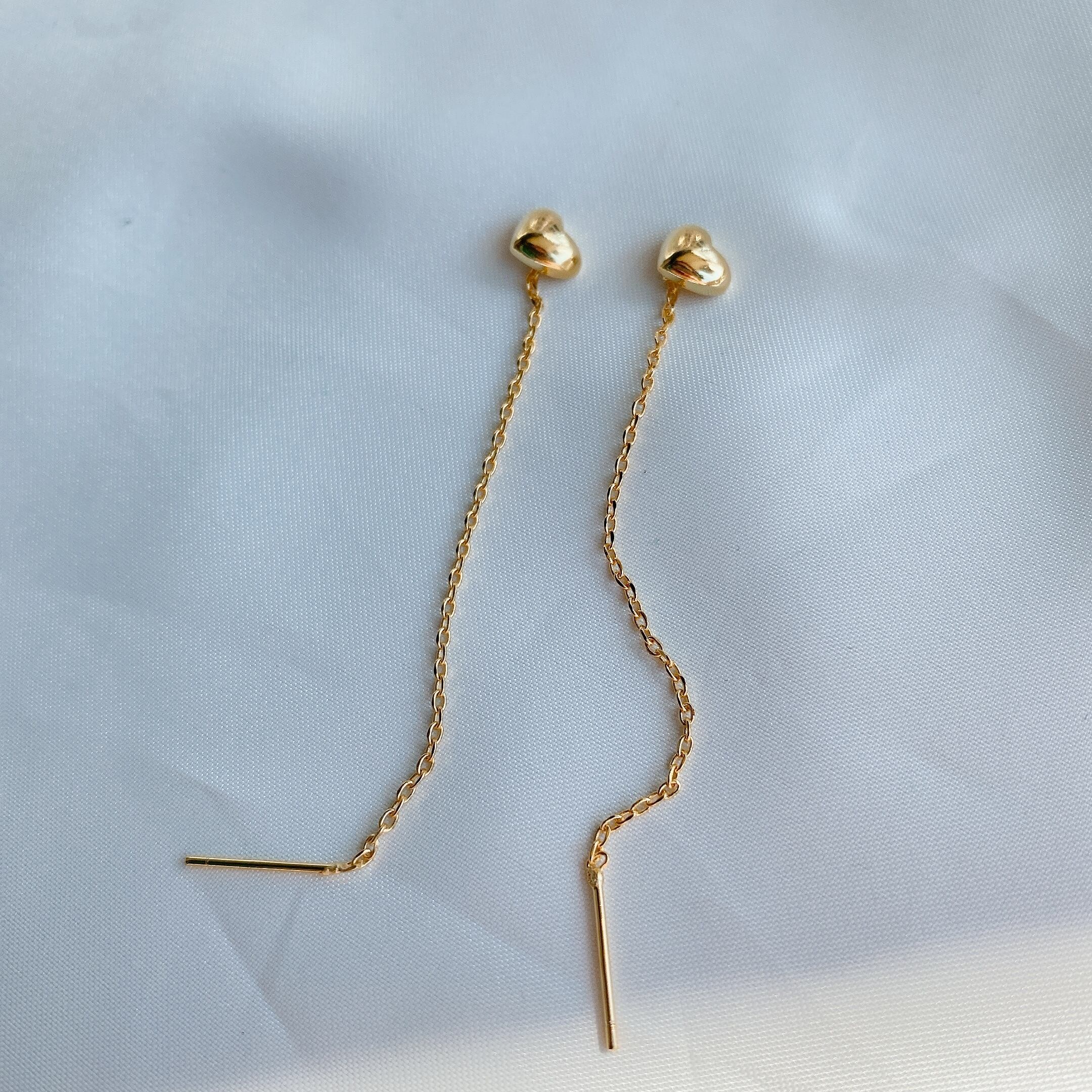 針を前から通してハート部分が耳たぶに密着させてつけるタイプのアメリカンピアス
