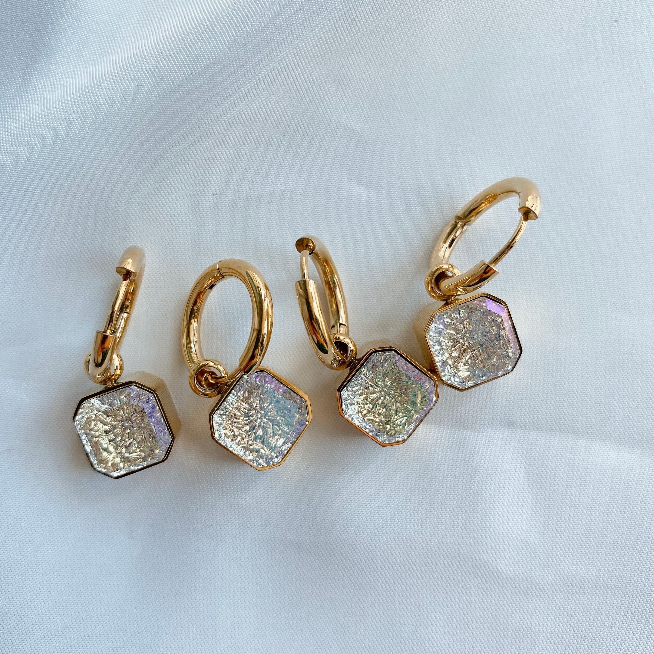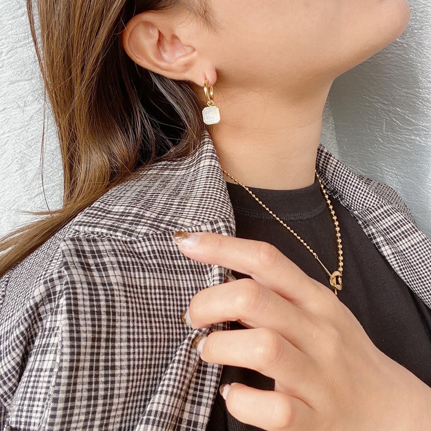 再販stainless crystal charm hoop pierce