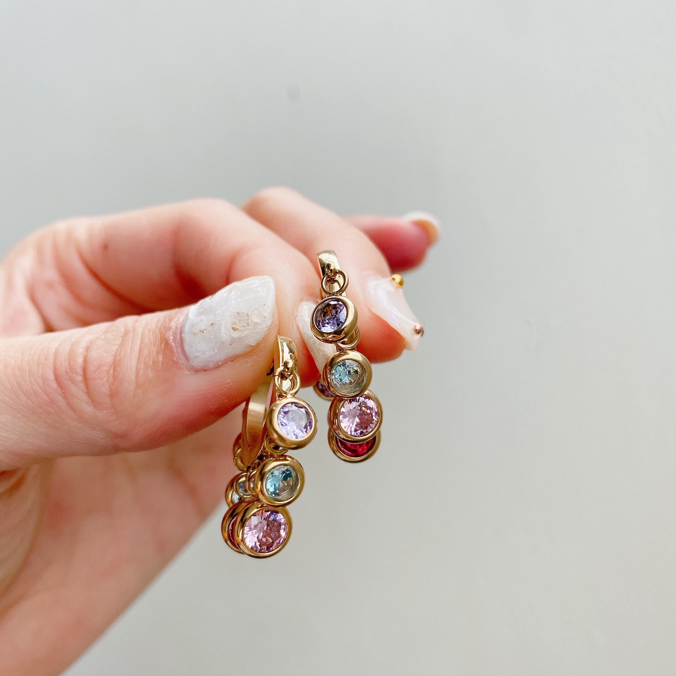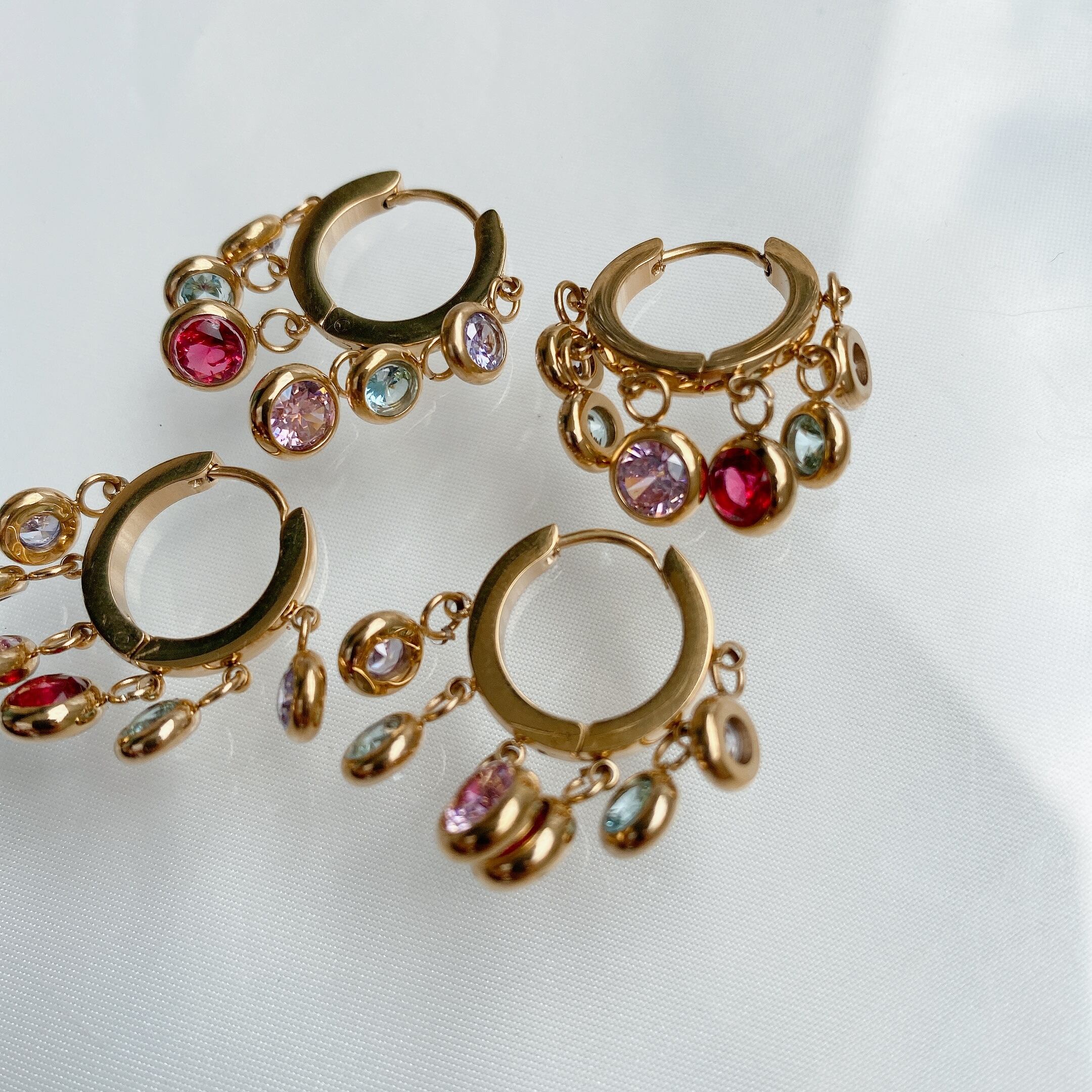 とミックスジルコニアチャームがゆらゆら可愛い差し色ピアス
