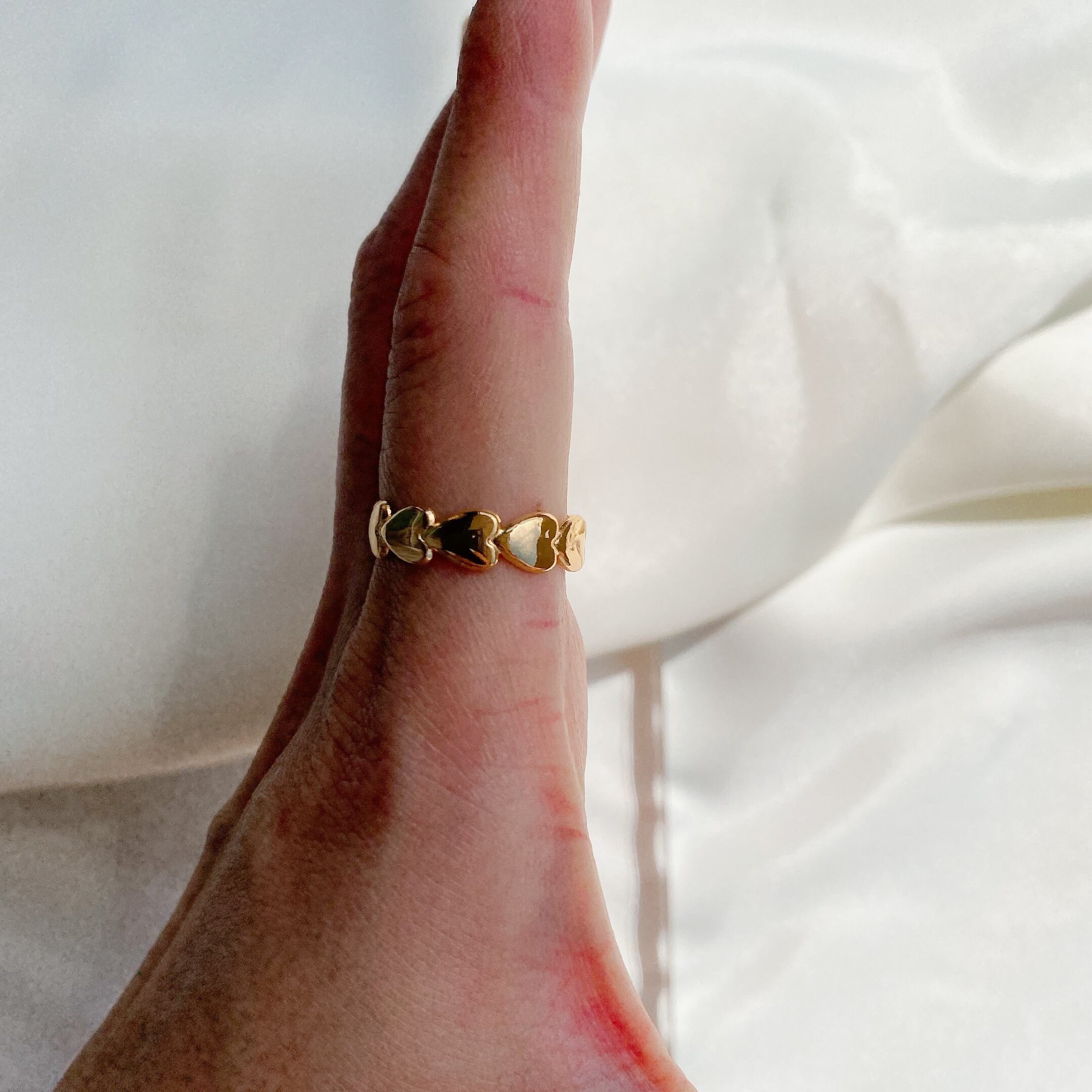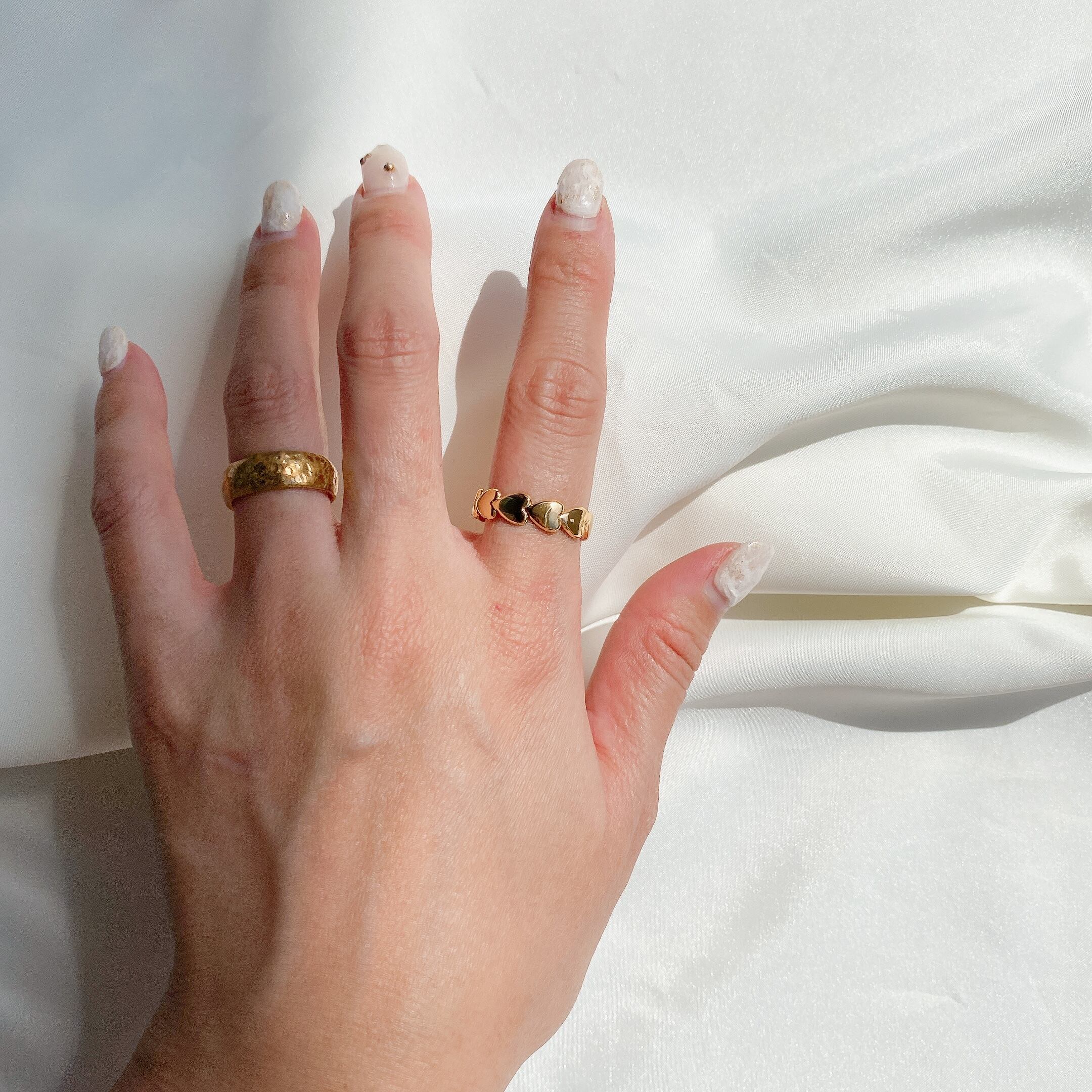 ハートが指を埋めすぐしてくれる大人の遊びが効いたリング