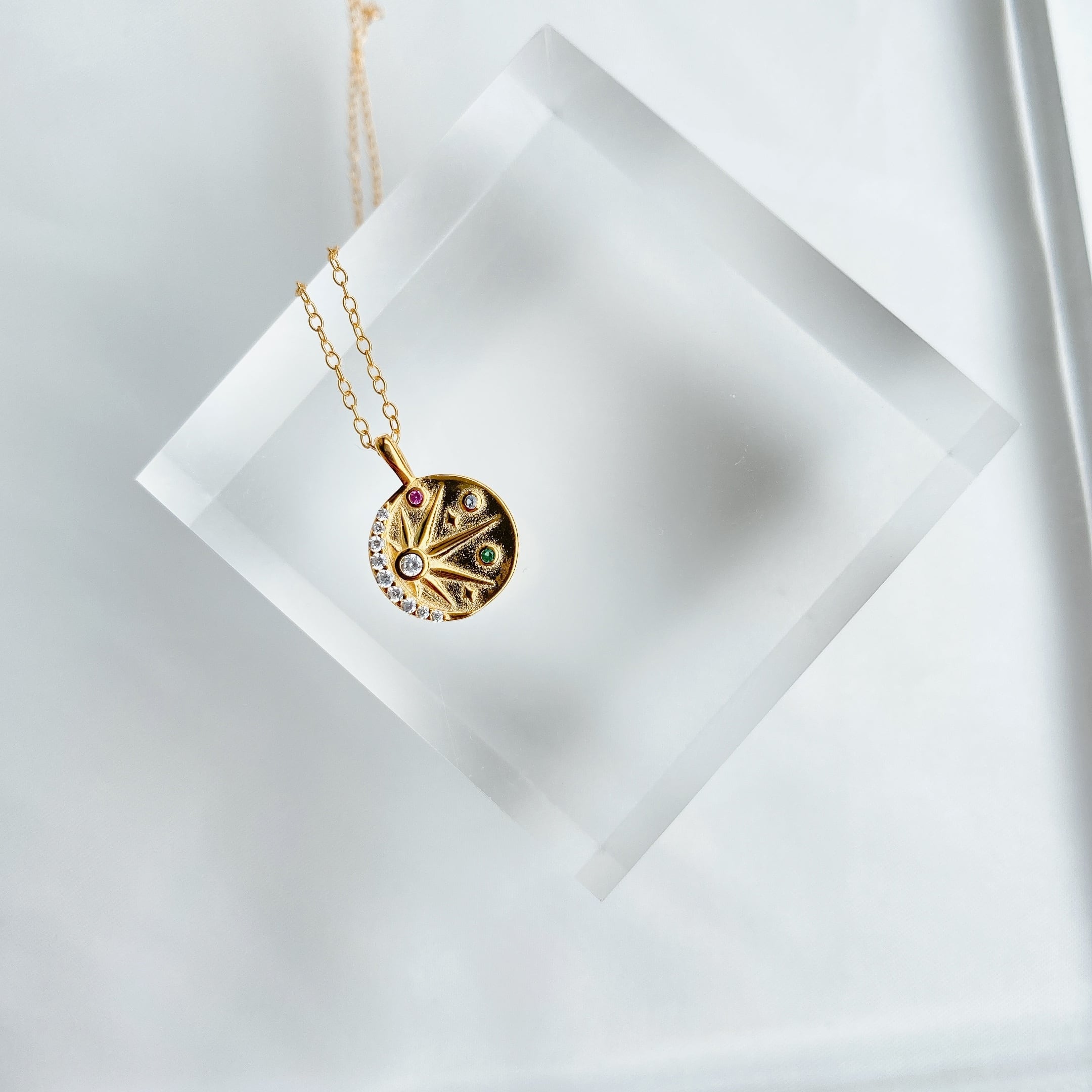 極小のクリア、ピンク、ブルー、グリーンのストーンが付いておりさり気ない差し色に