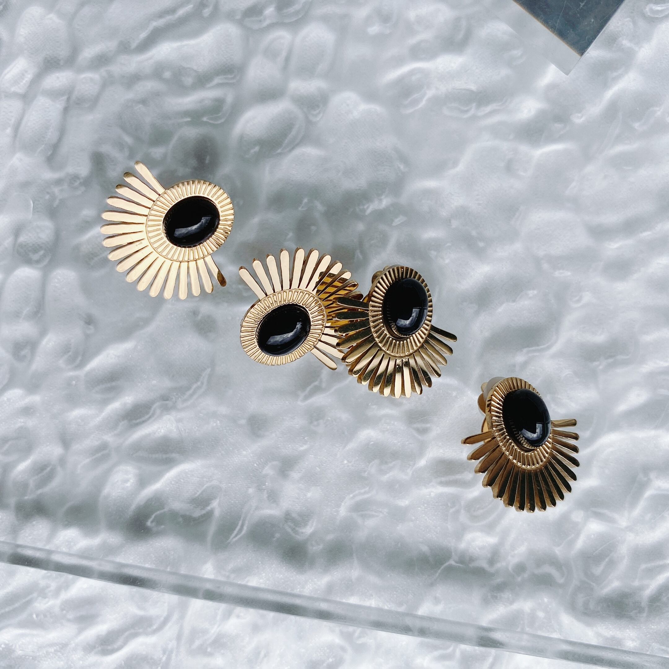 earring stainless blackcabochon pierce