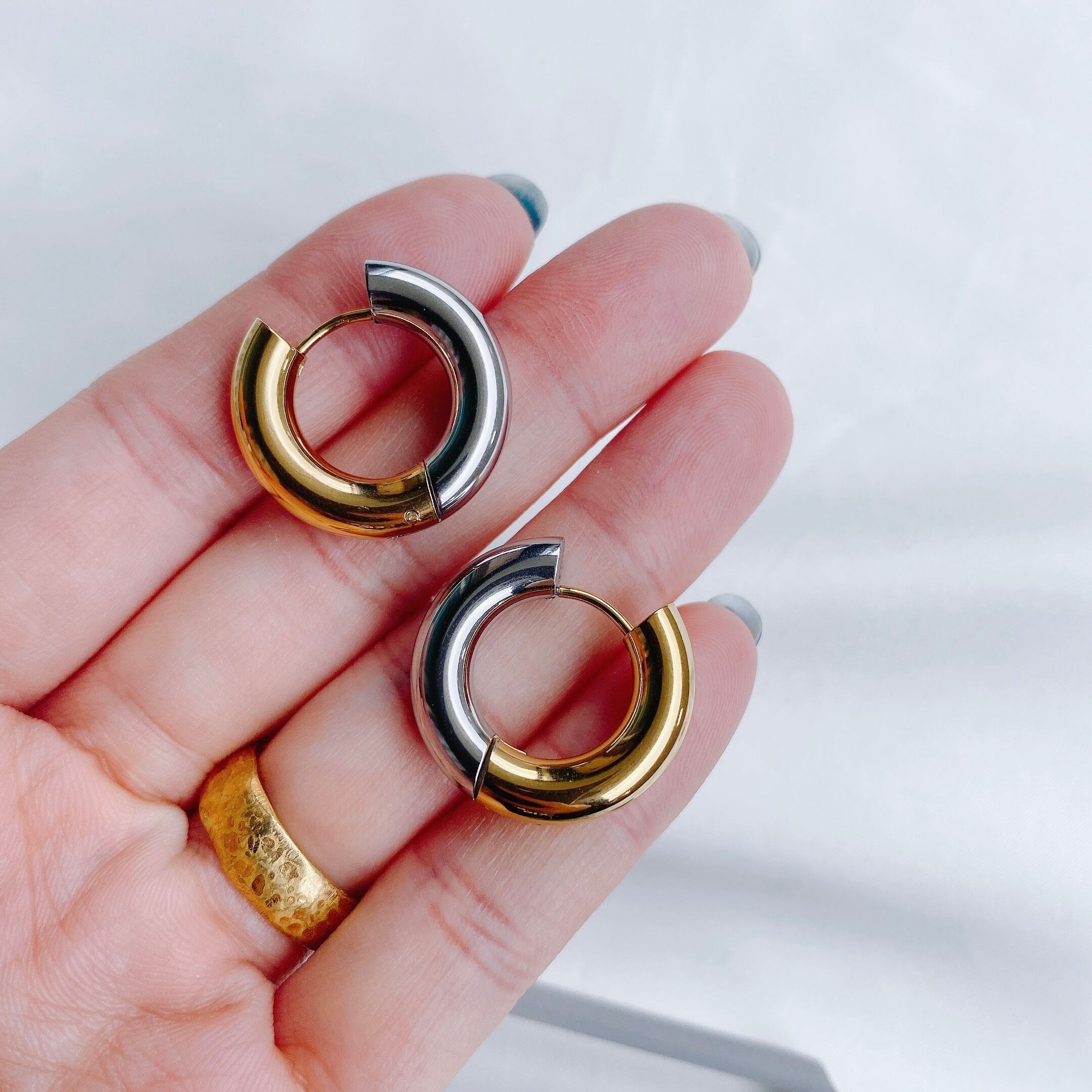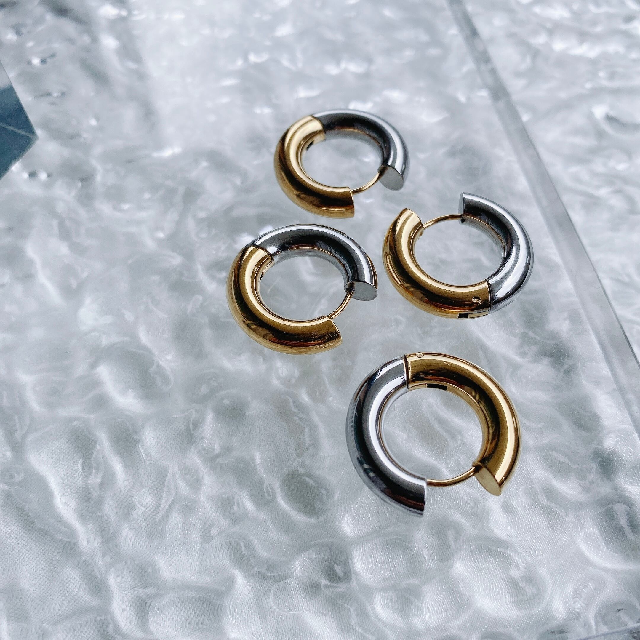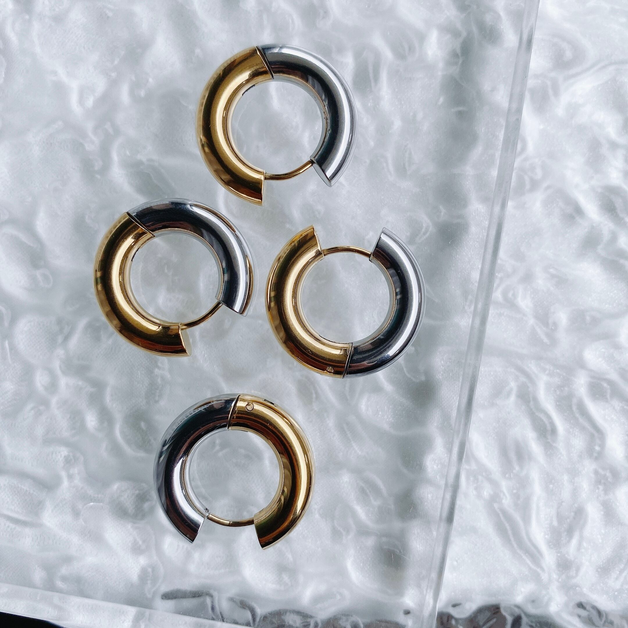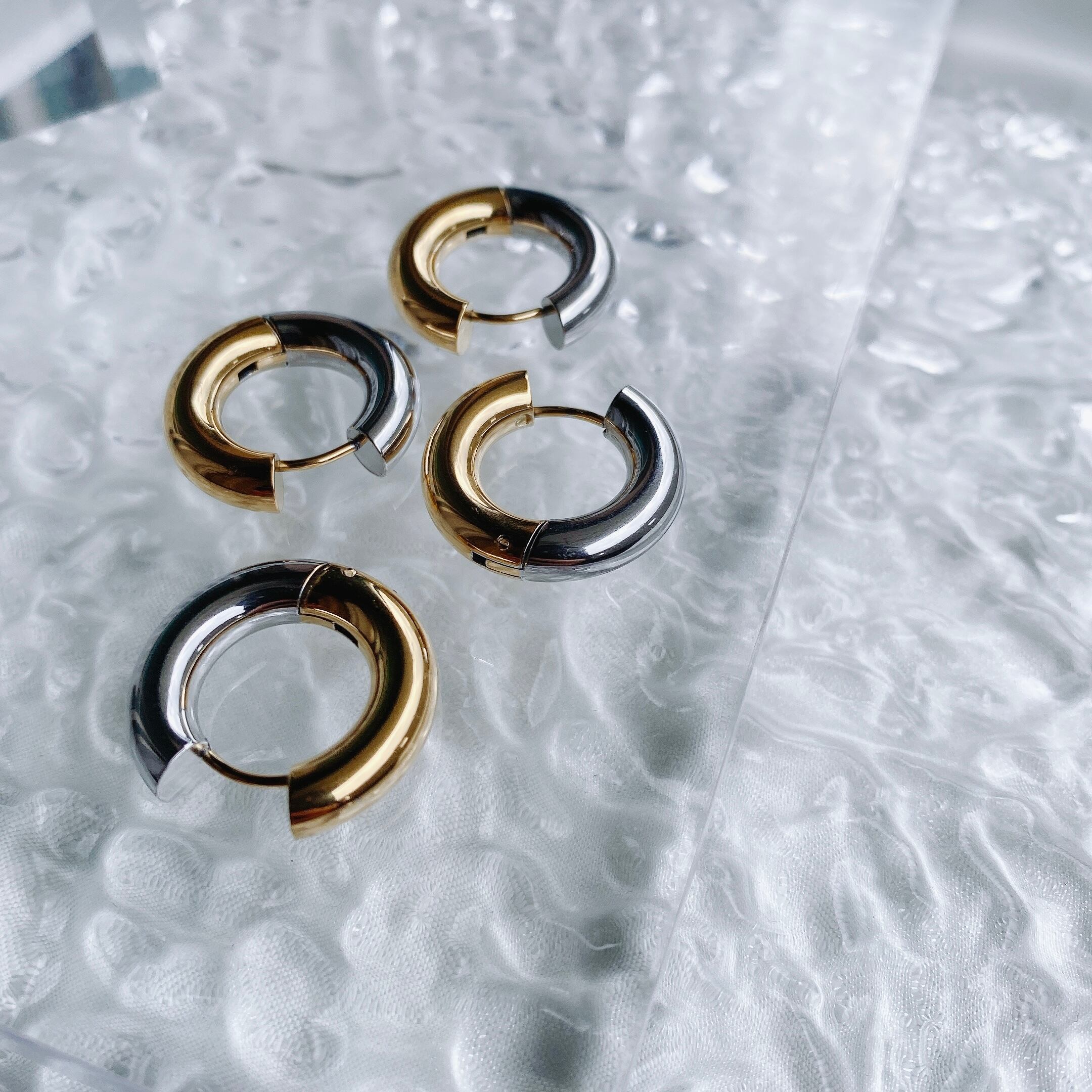 シルバー×ゴールドがカッコよくエレガントな大人のフープピアス