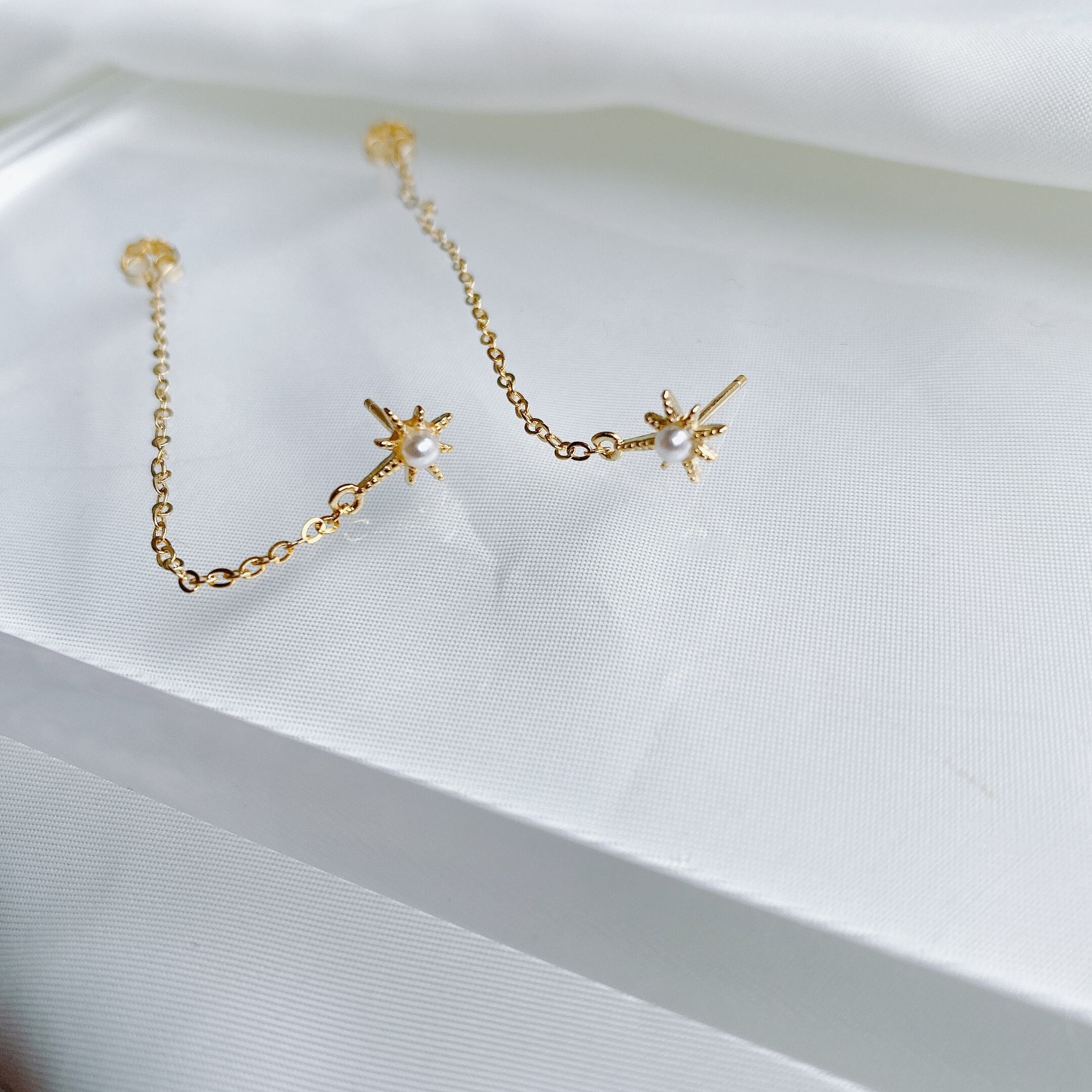 silver925 star×pearl×chain pierce