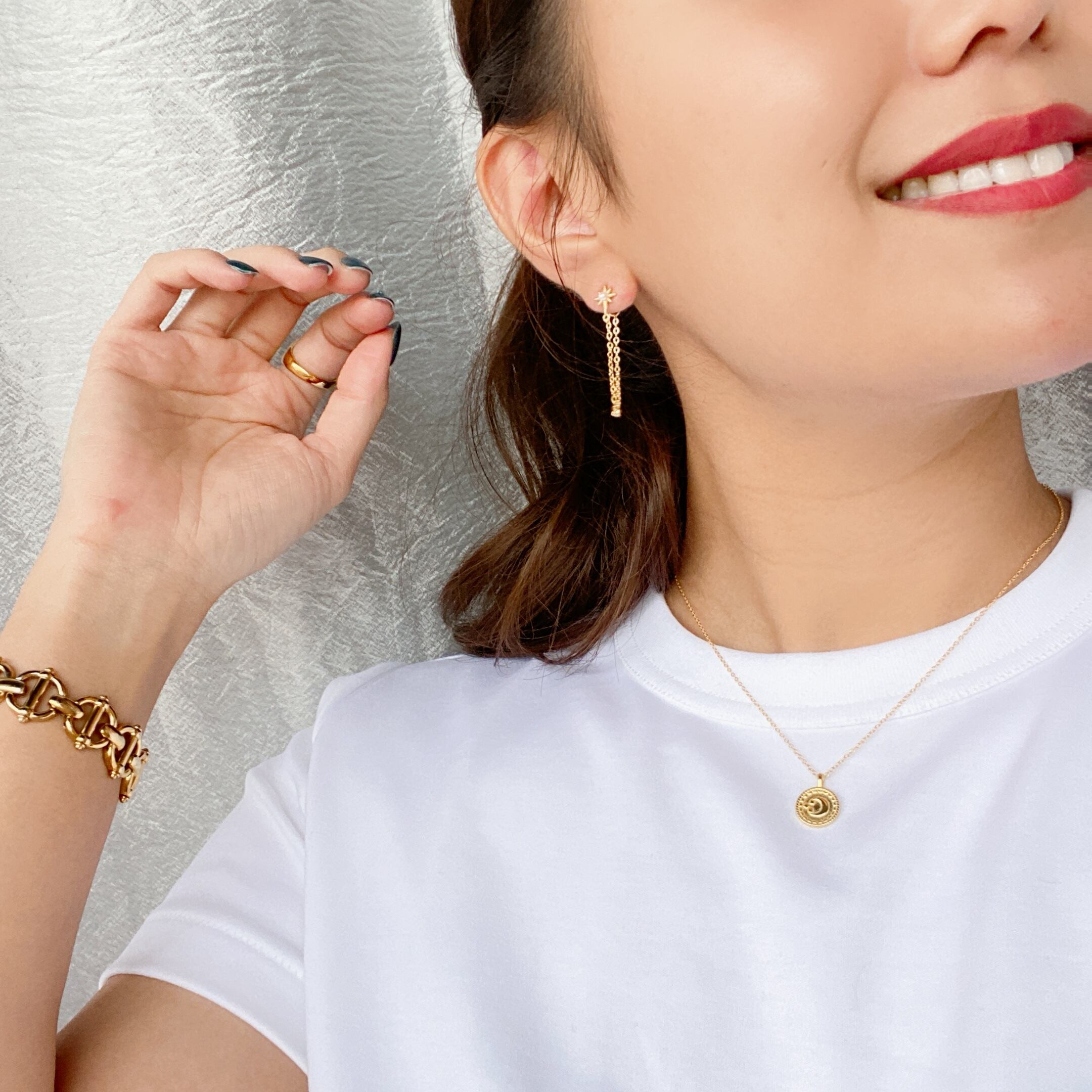 華奢なチェーンはキャッチと繋がっており後ろから見ても横から見ても非の打ち所がないデザインとなっています!!
