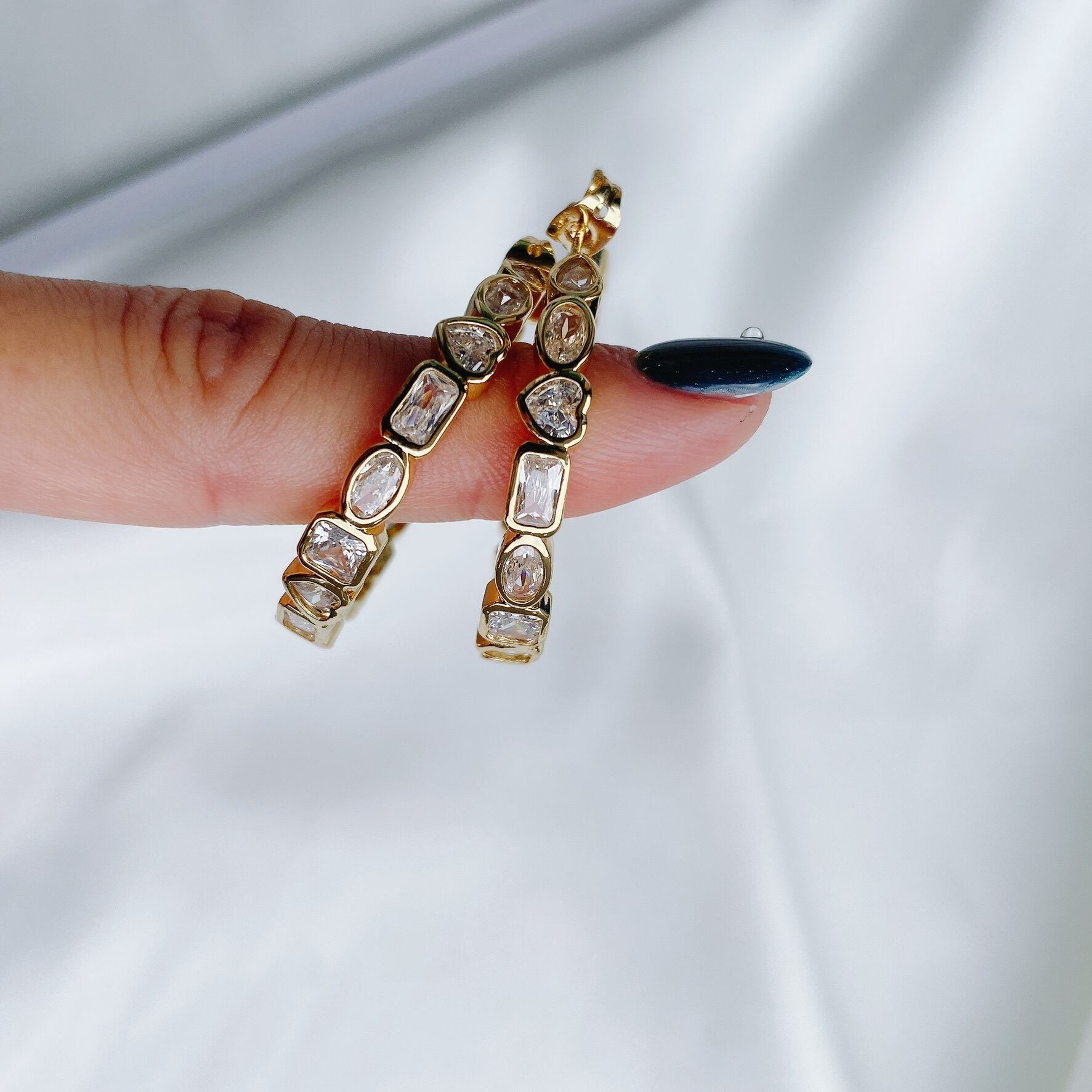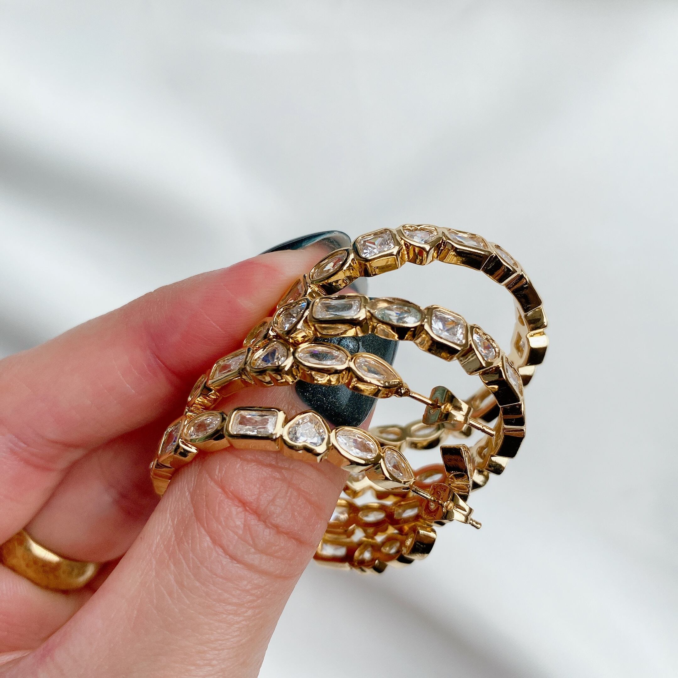 ジルコニアが沢山使われた可愛く綺麗なデザインのフープピアス