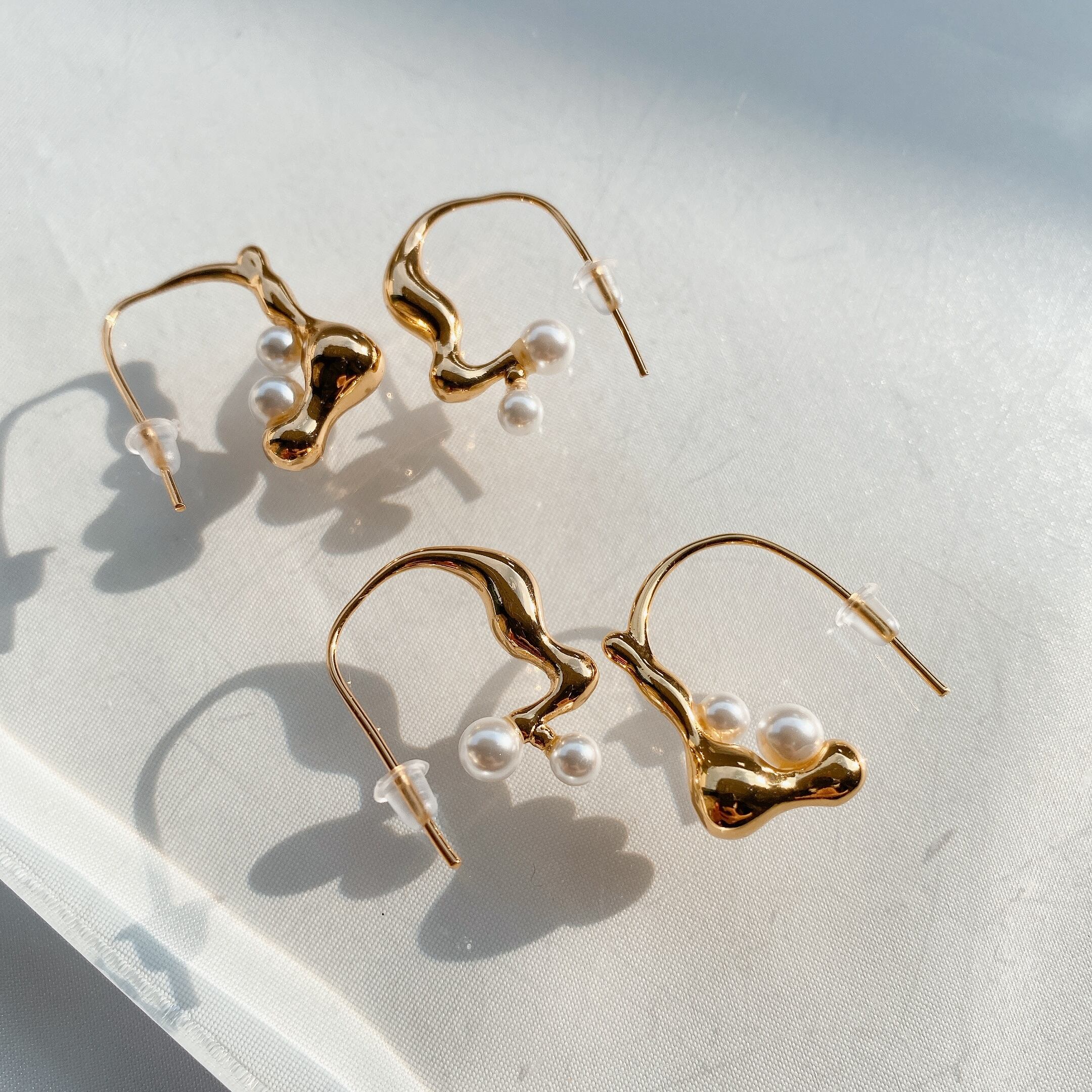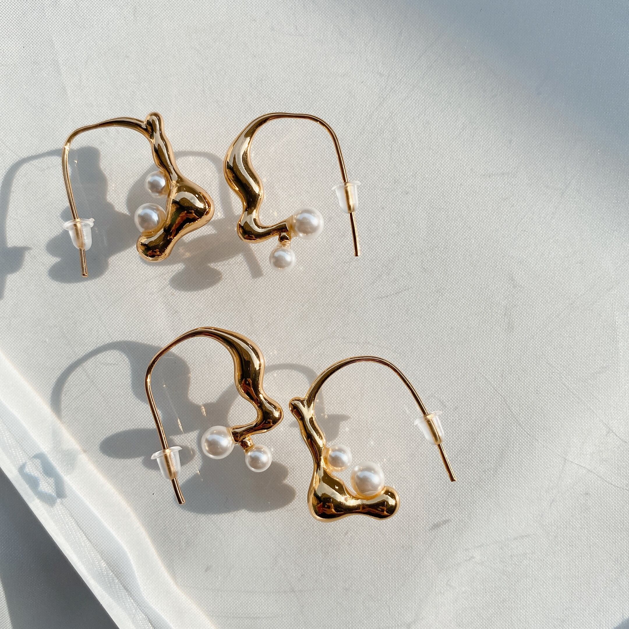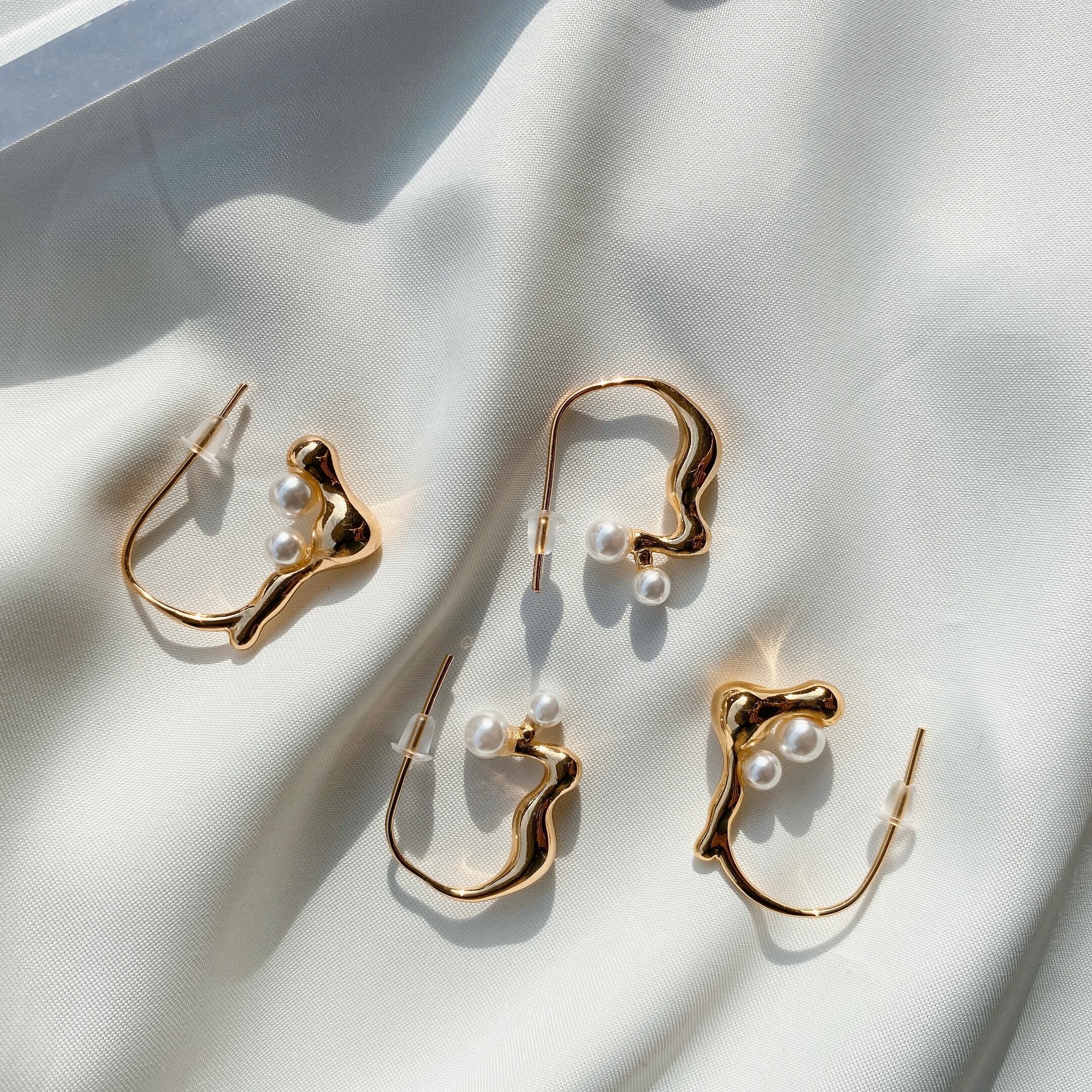 左右で少し違うデザインの大人可愛いピアス