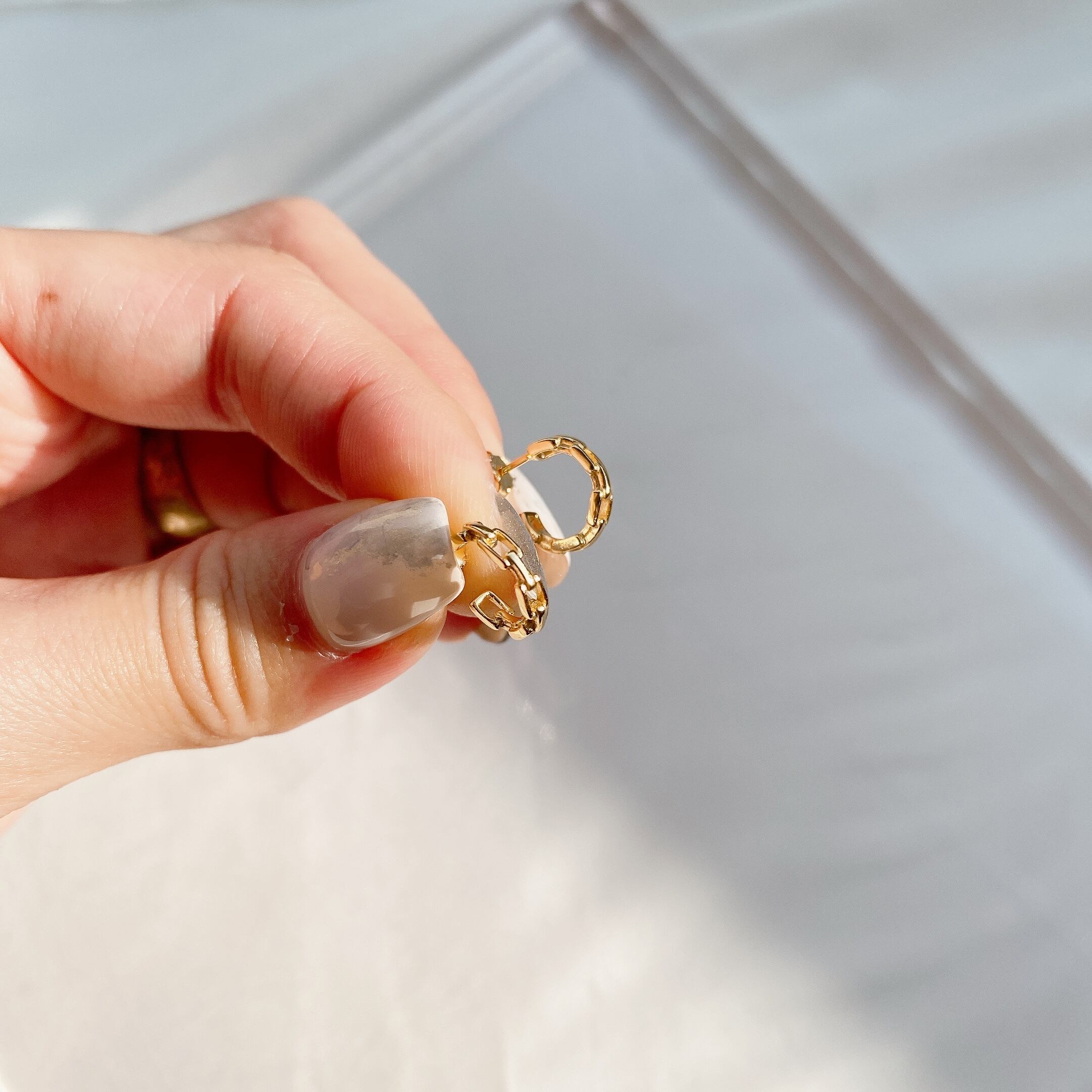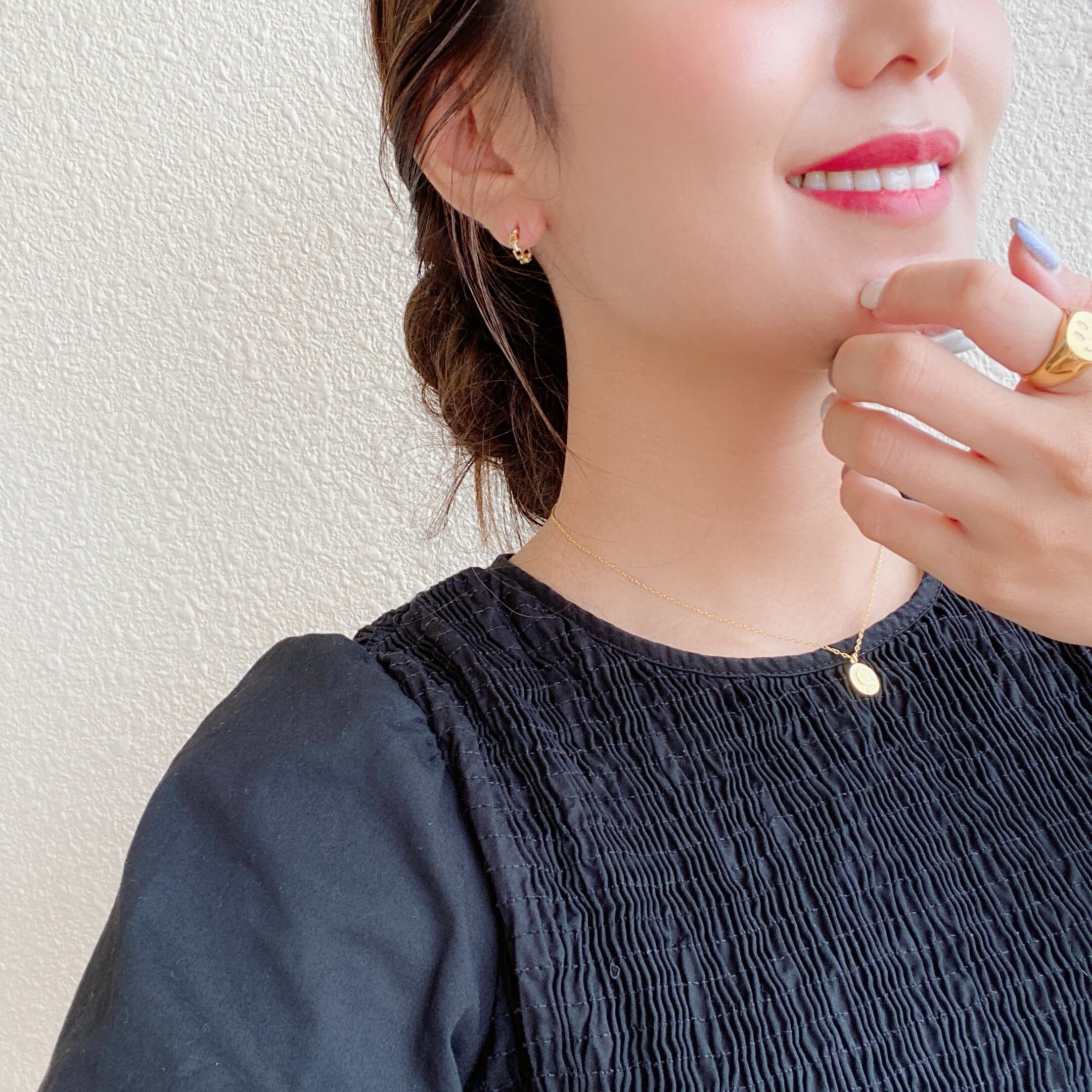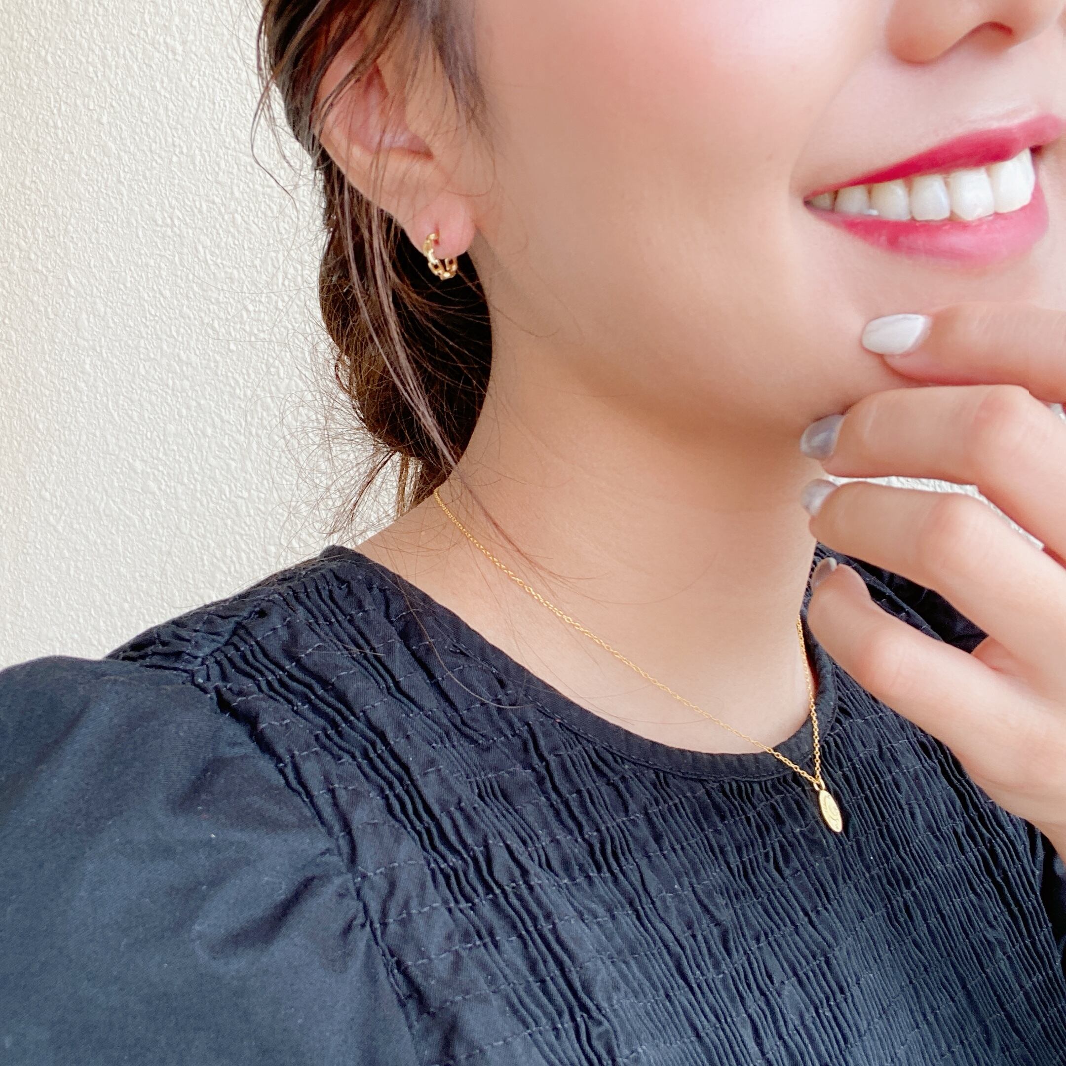 シンプルながらにも細かいデザインが入った大人可愛いフープピアスです
