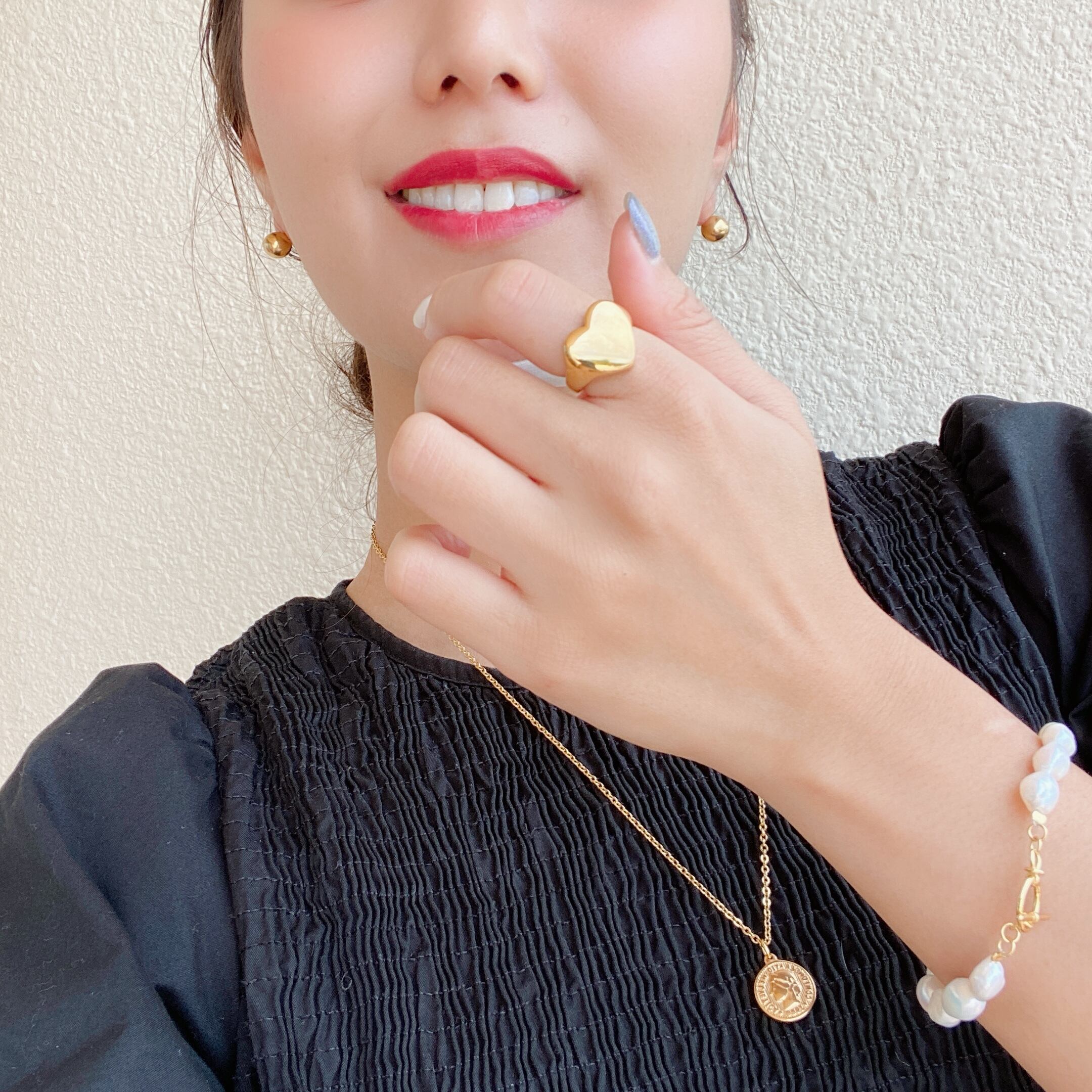 ぷっくりとしたハートがポイントのリング