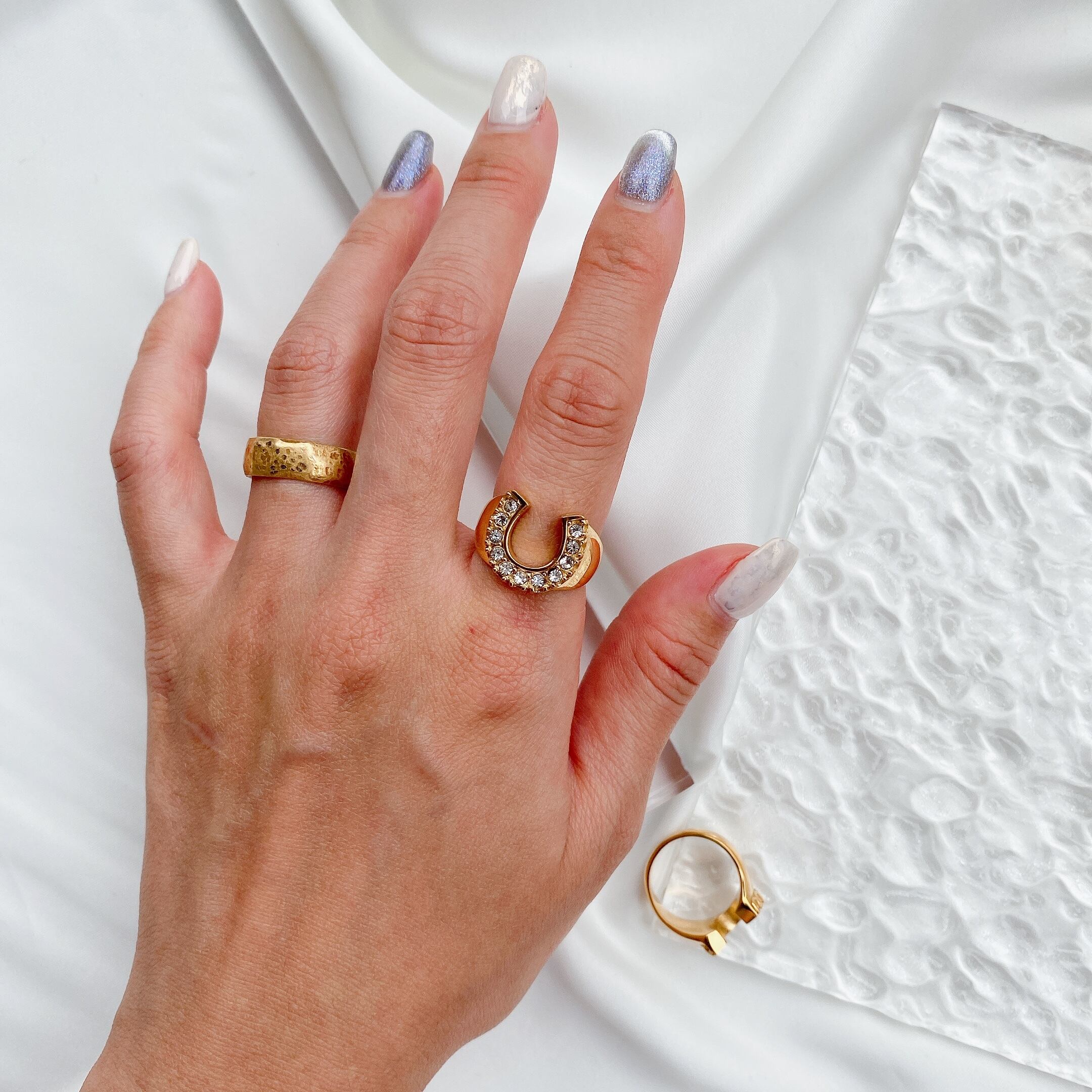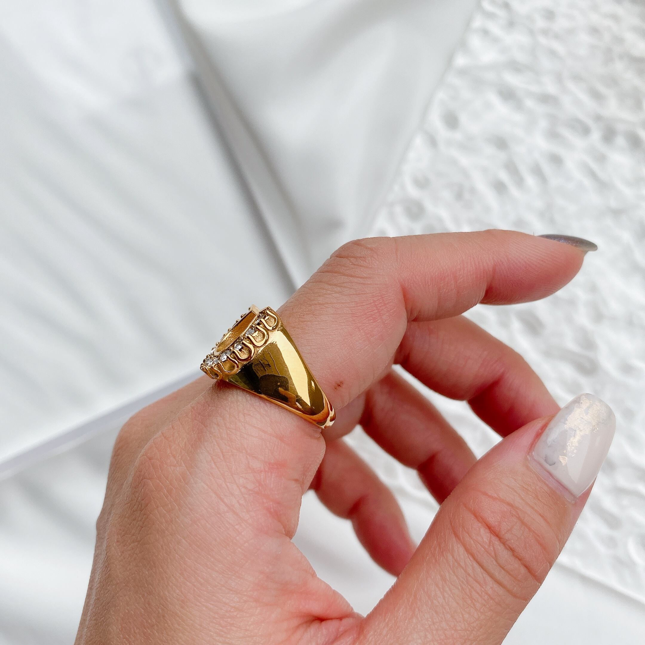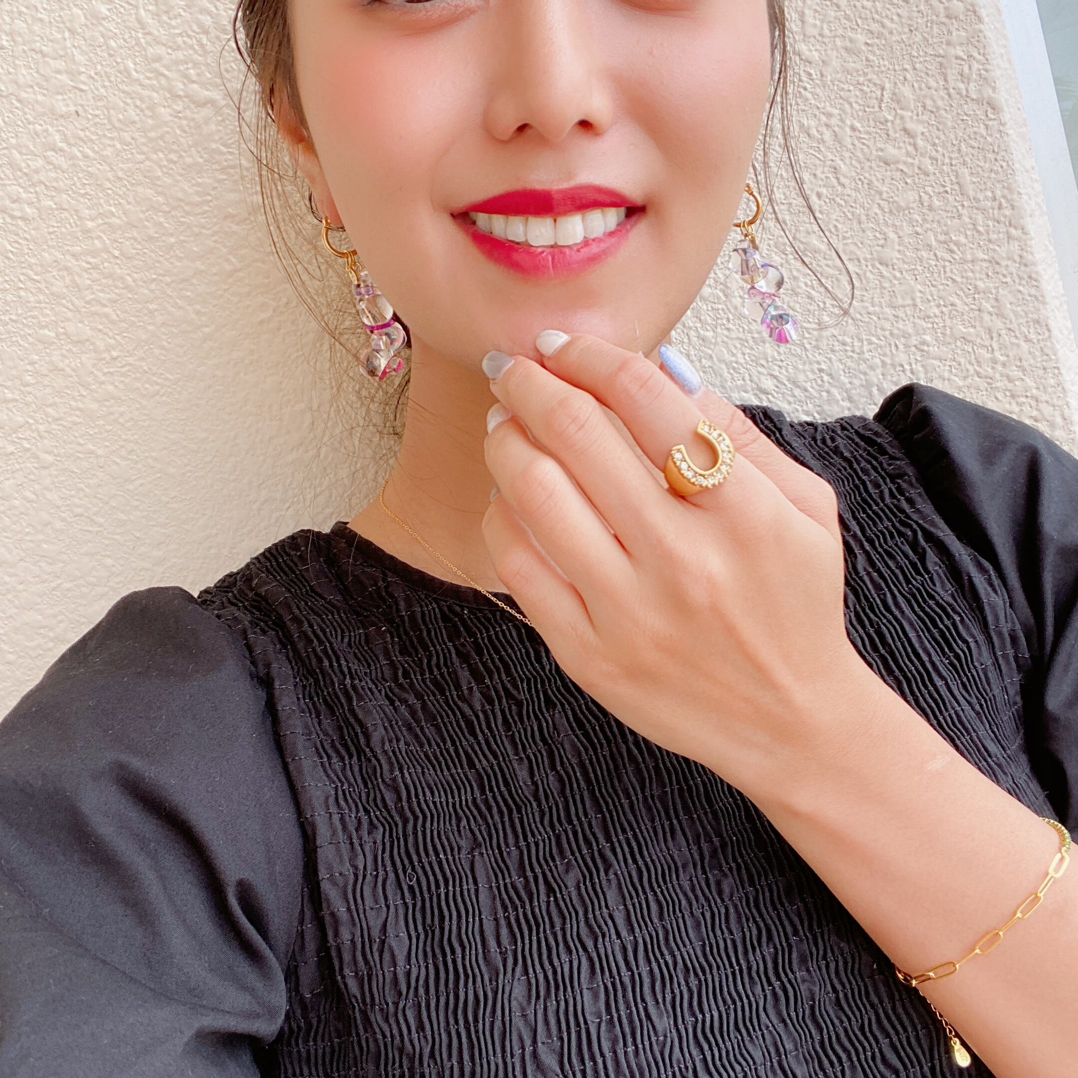 小さなジルコニアが上品で大人可愛い遊び心あるデザインリングです