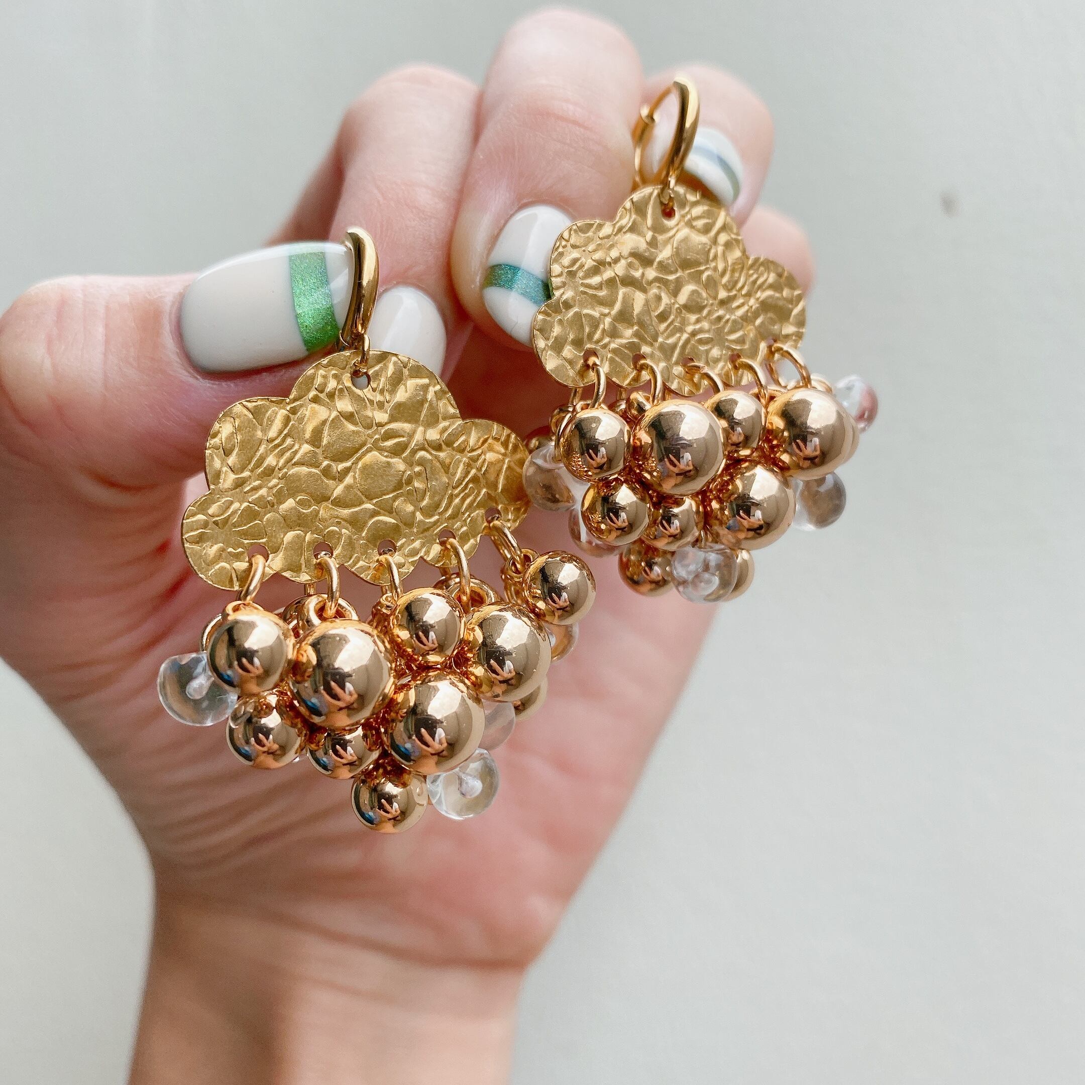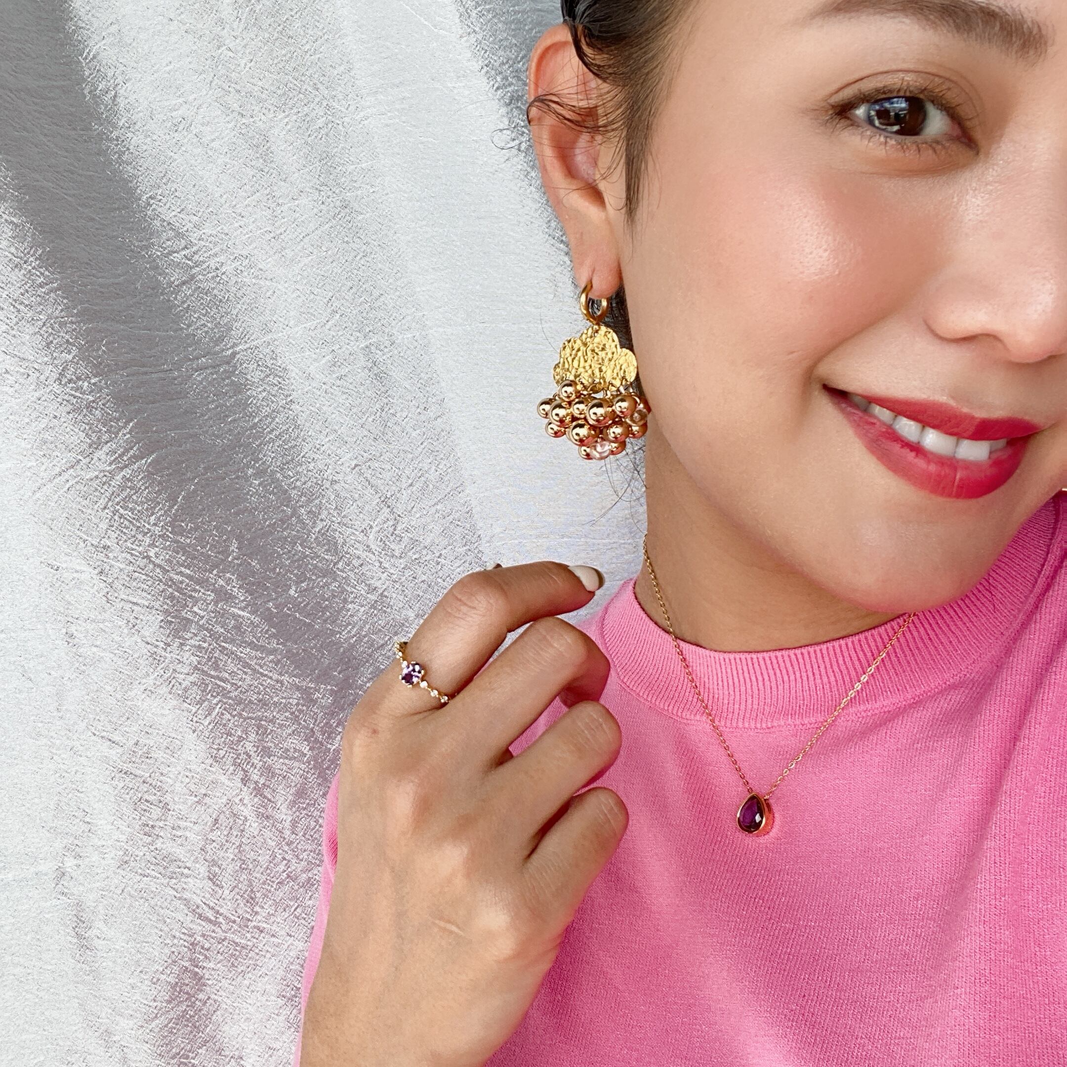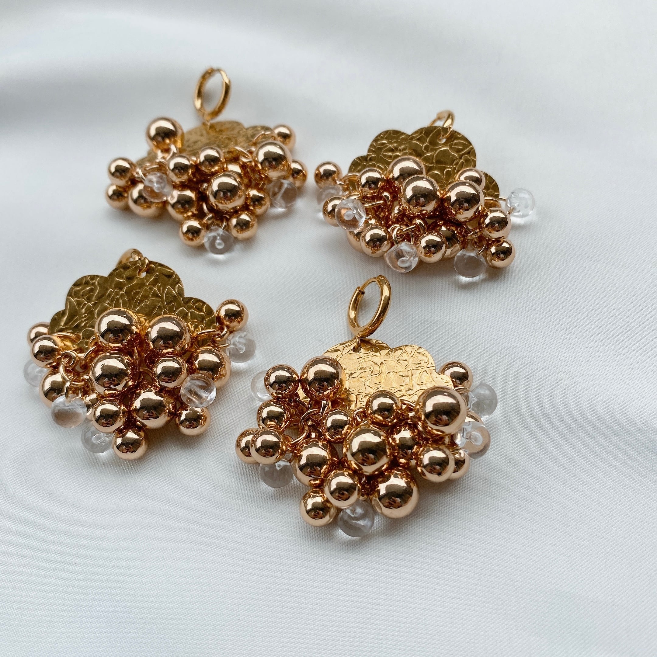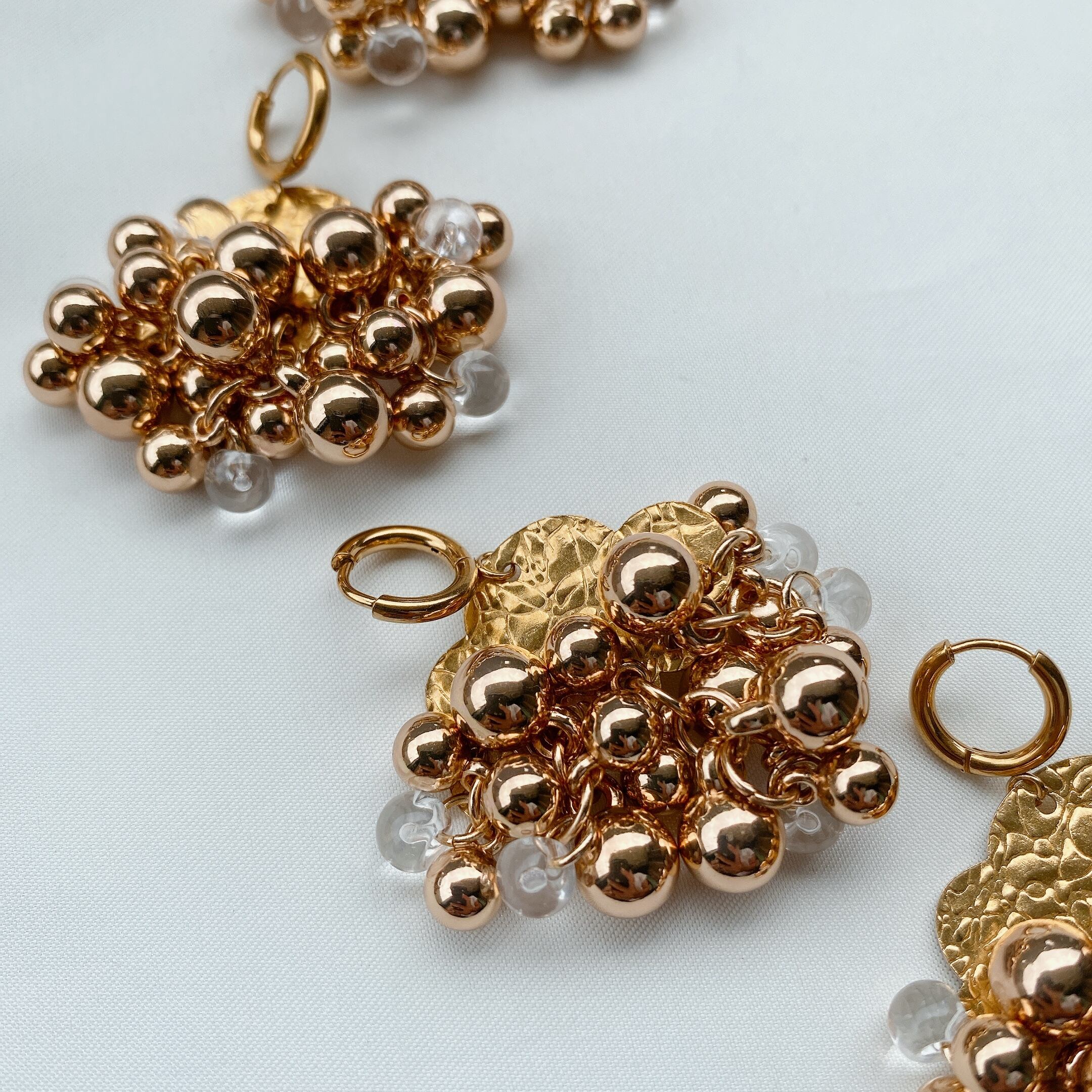 ゴールドビーズの下にはクリアのビーズをつけて雫をイメージしました