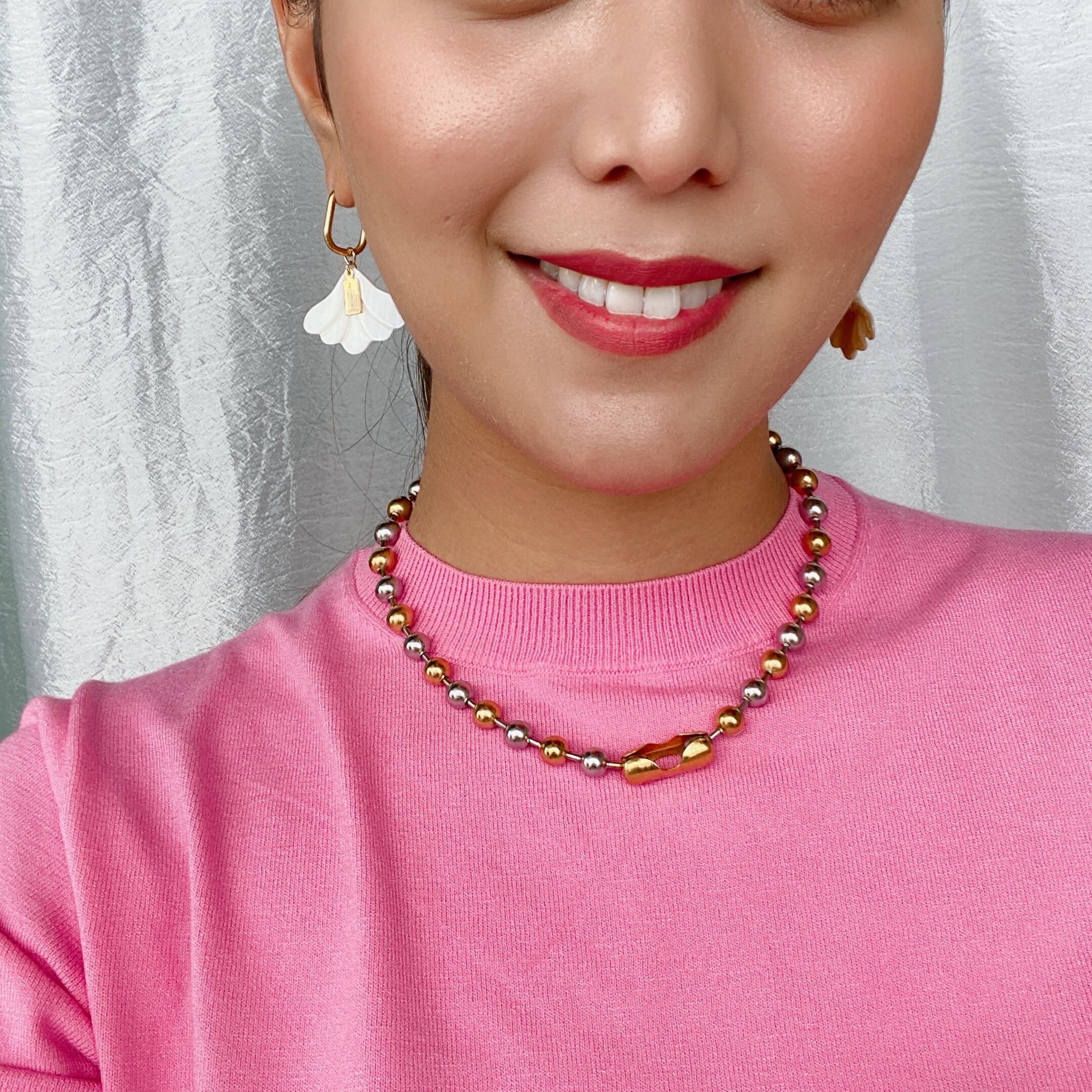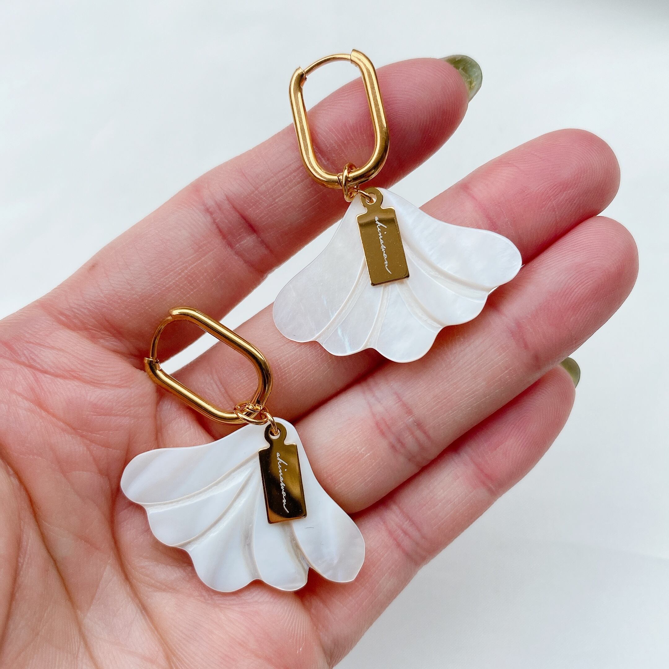 オリジナルのakinawanチャームがホワイトシェルを大人っぽく引き締めてくれています