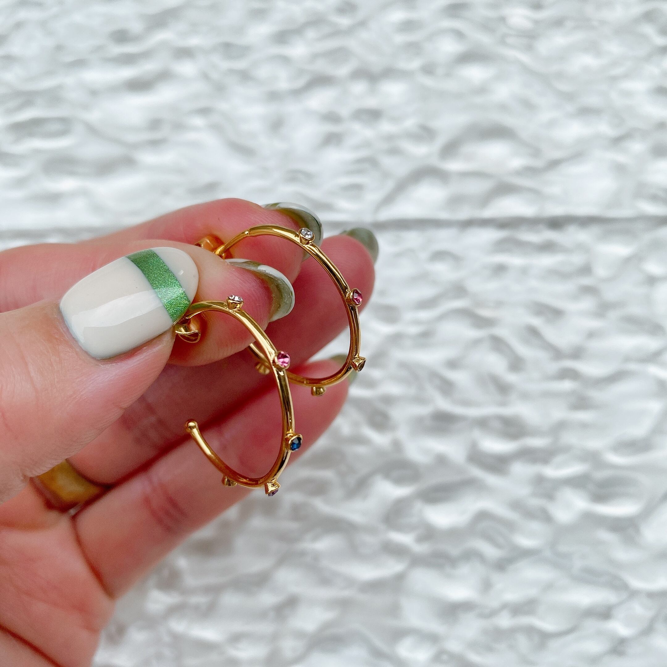 小さなジルコニアがちょこんっと付いておりさり気ないおしゃれをお楽しみ頂けます