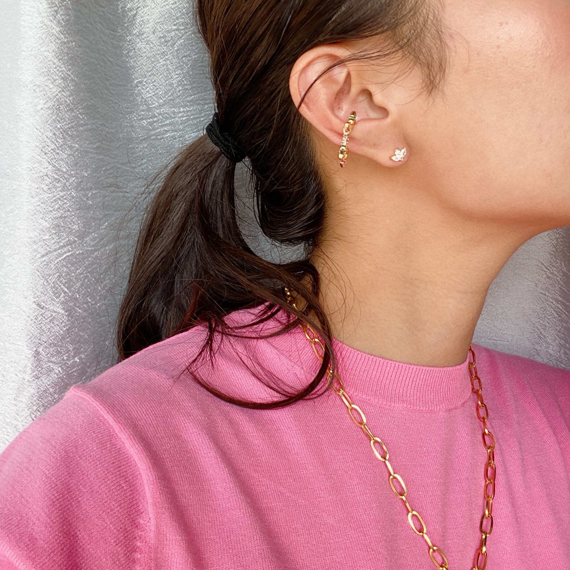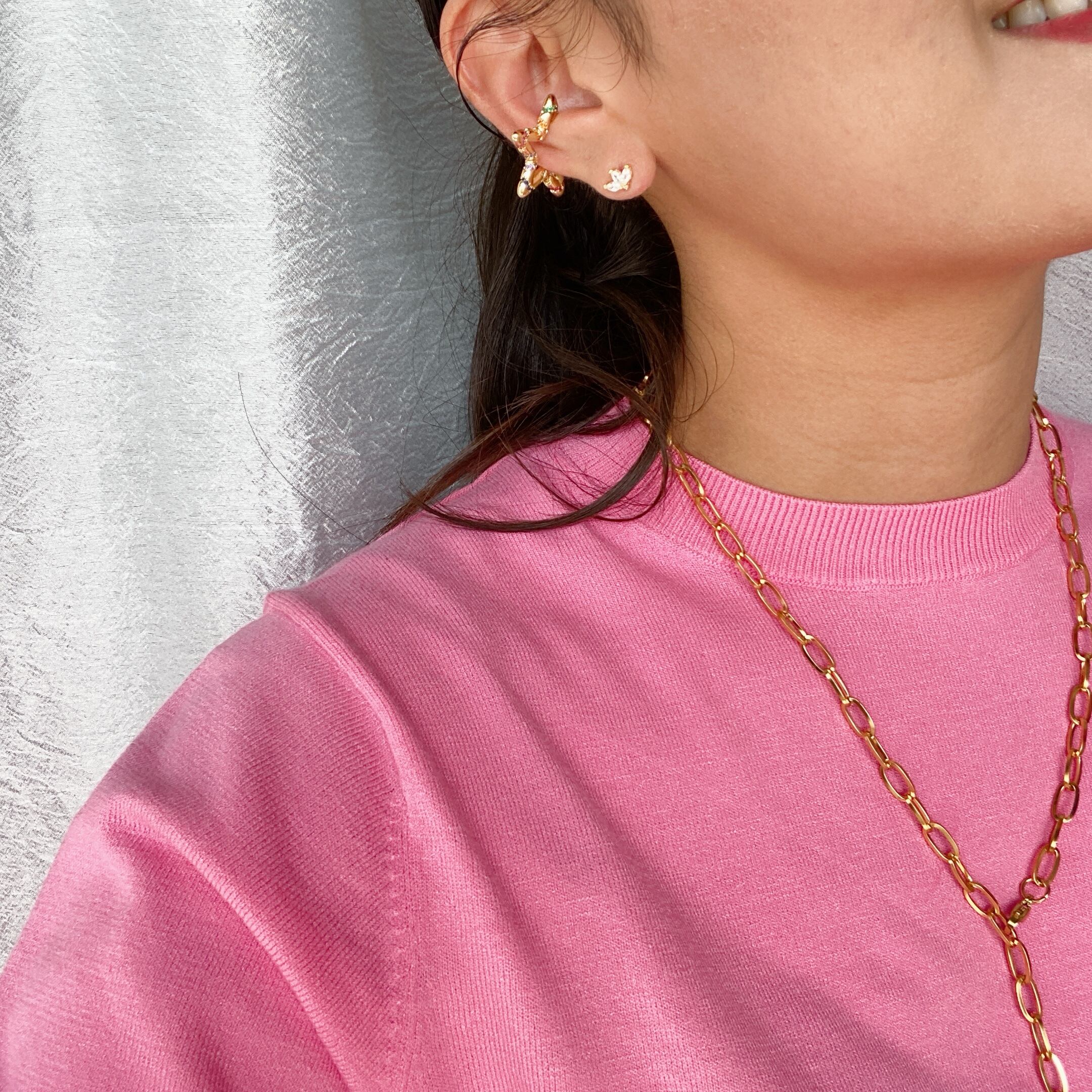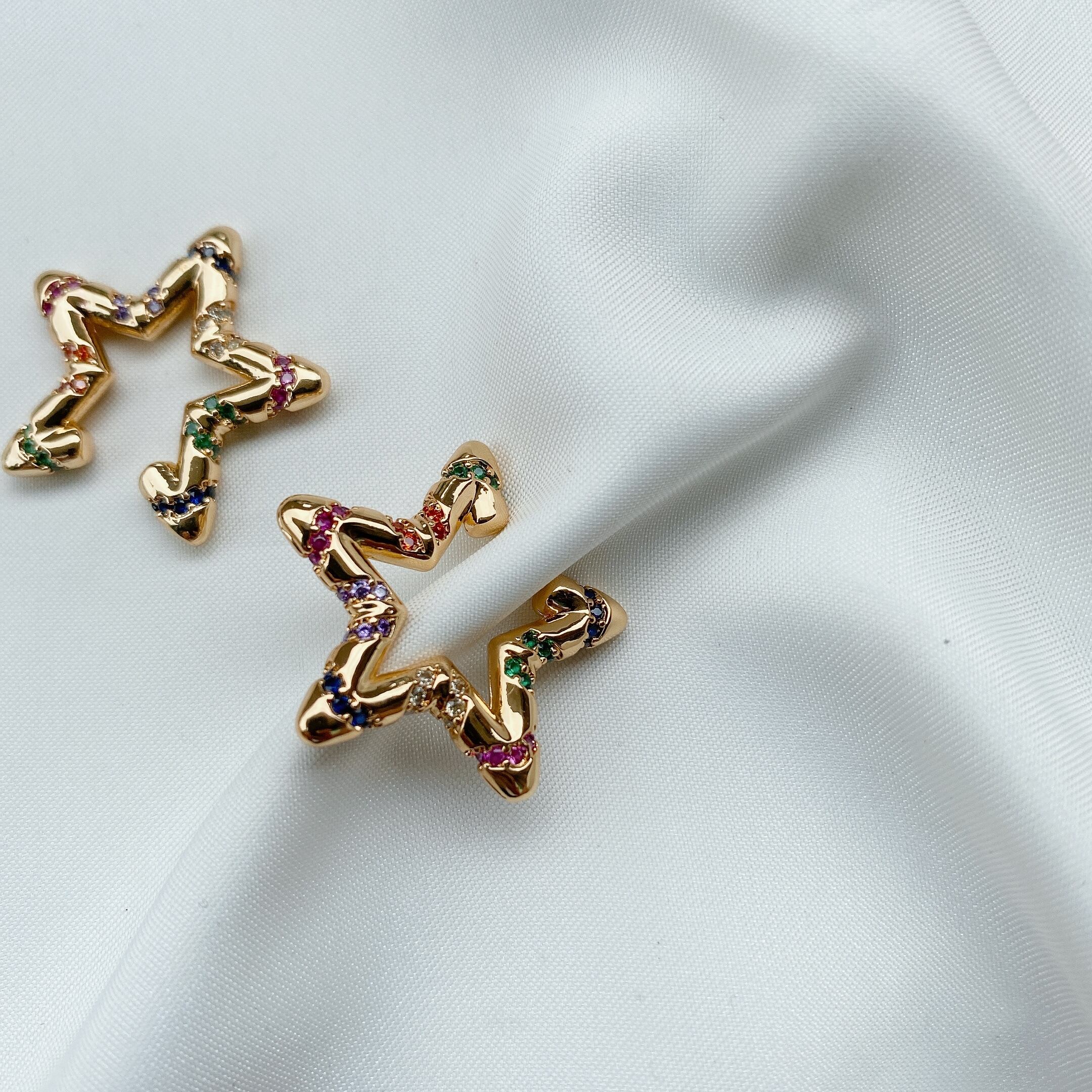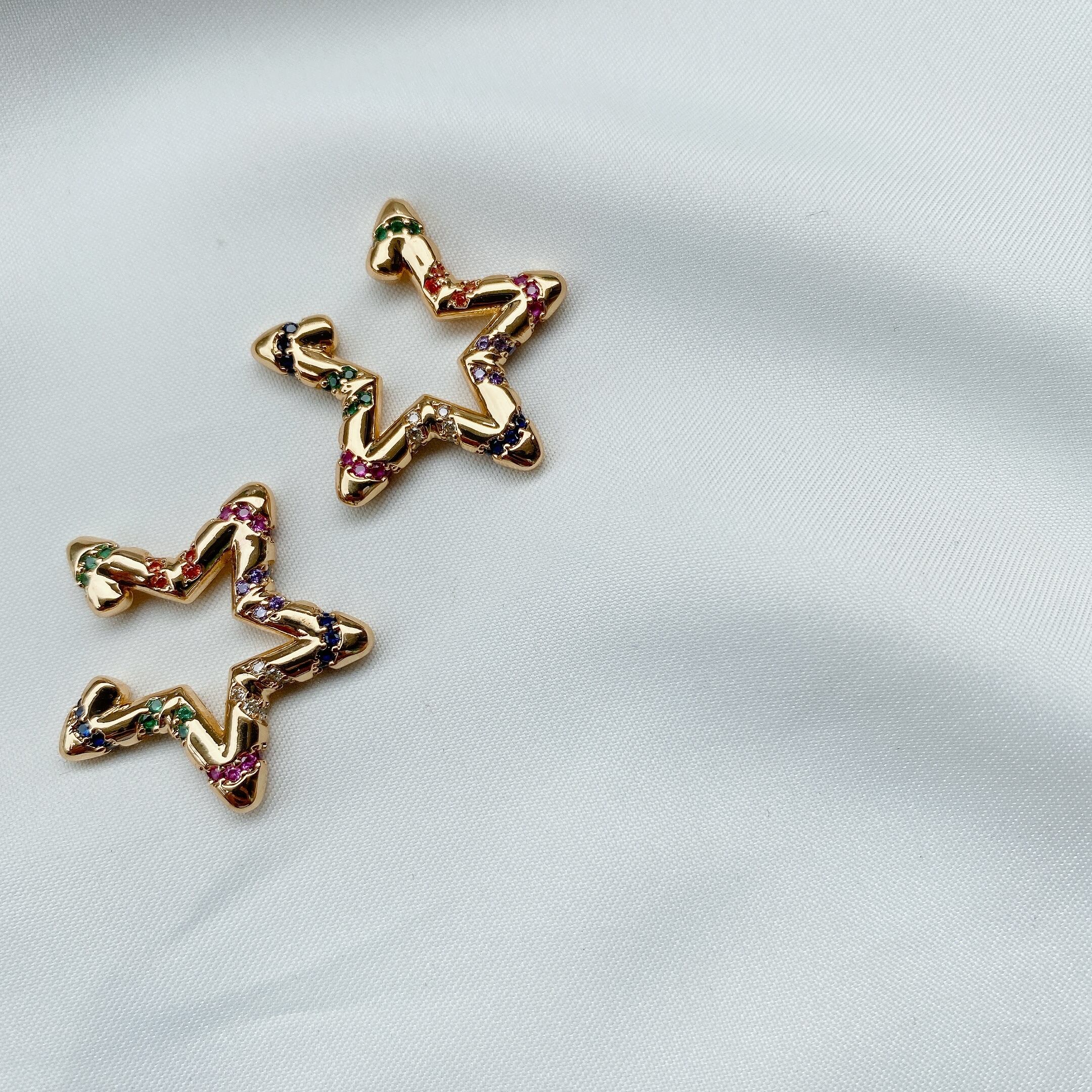 小さなジルコニアがたっぷりとついた星の形をしたイヤーカフ