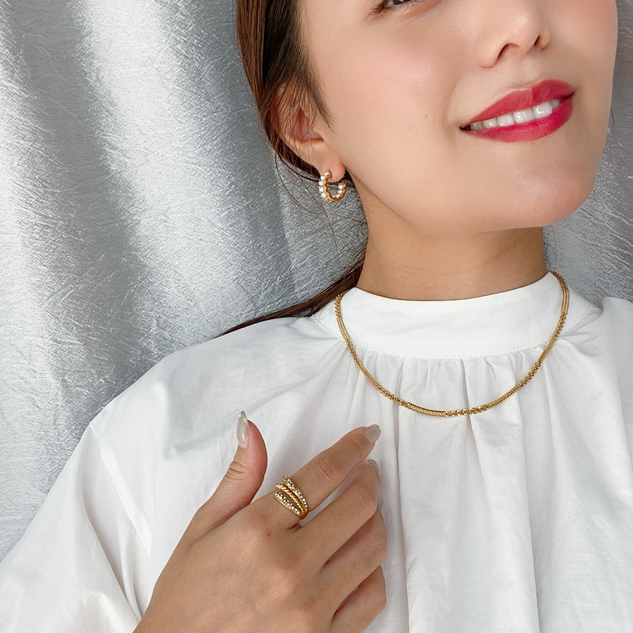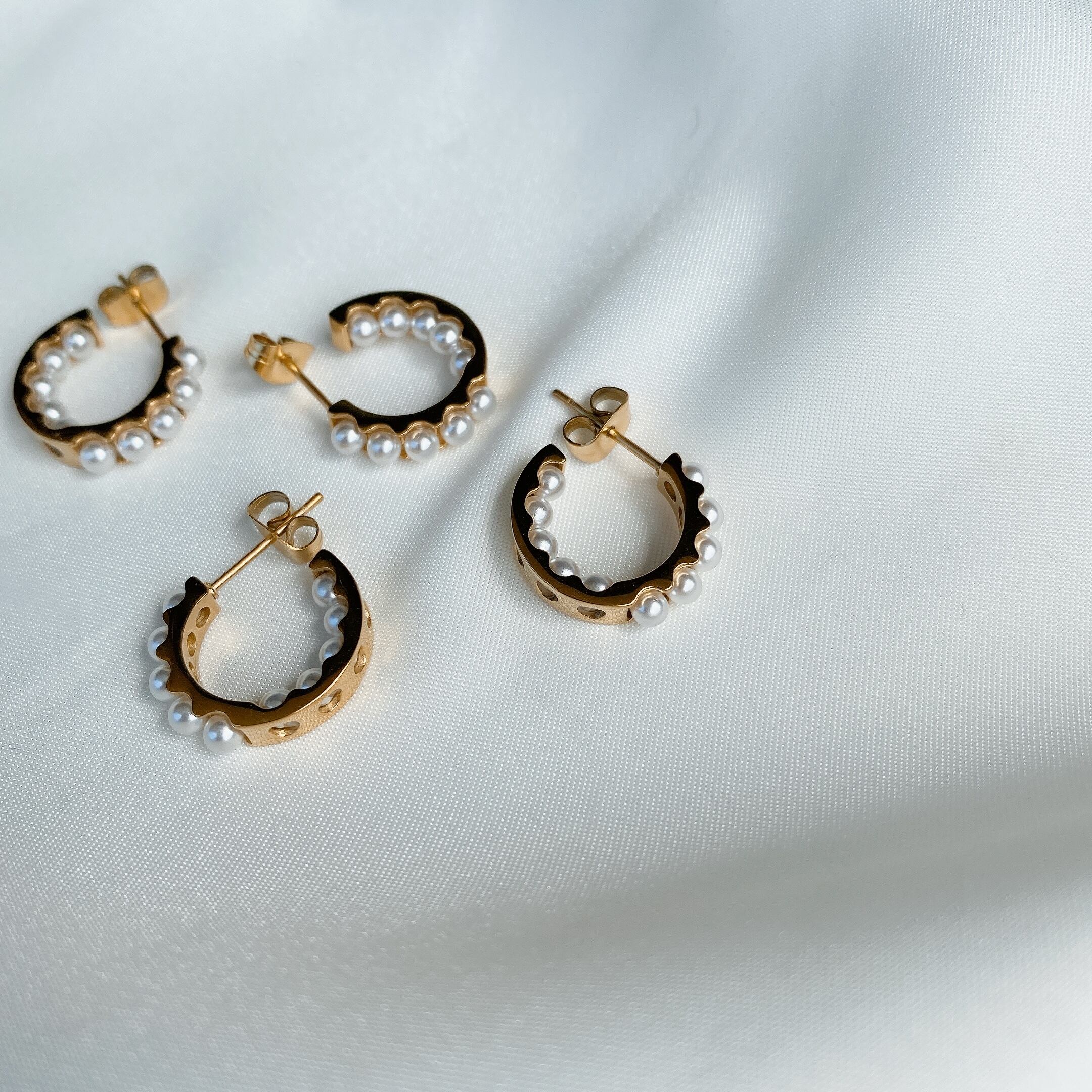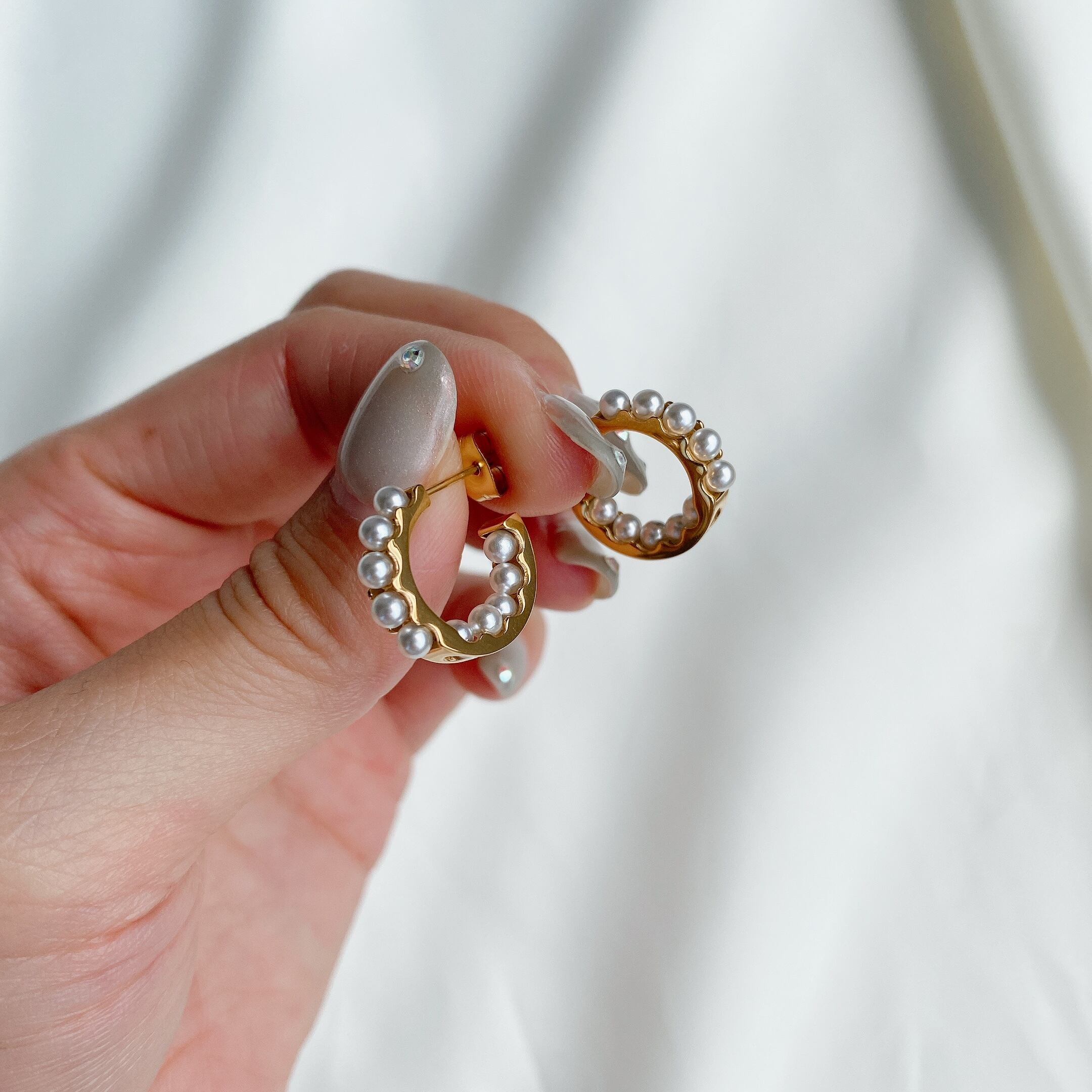 小さなパールがフープに沿って連なった