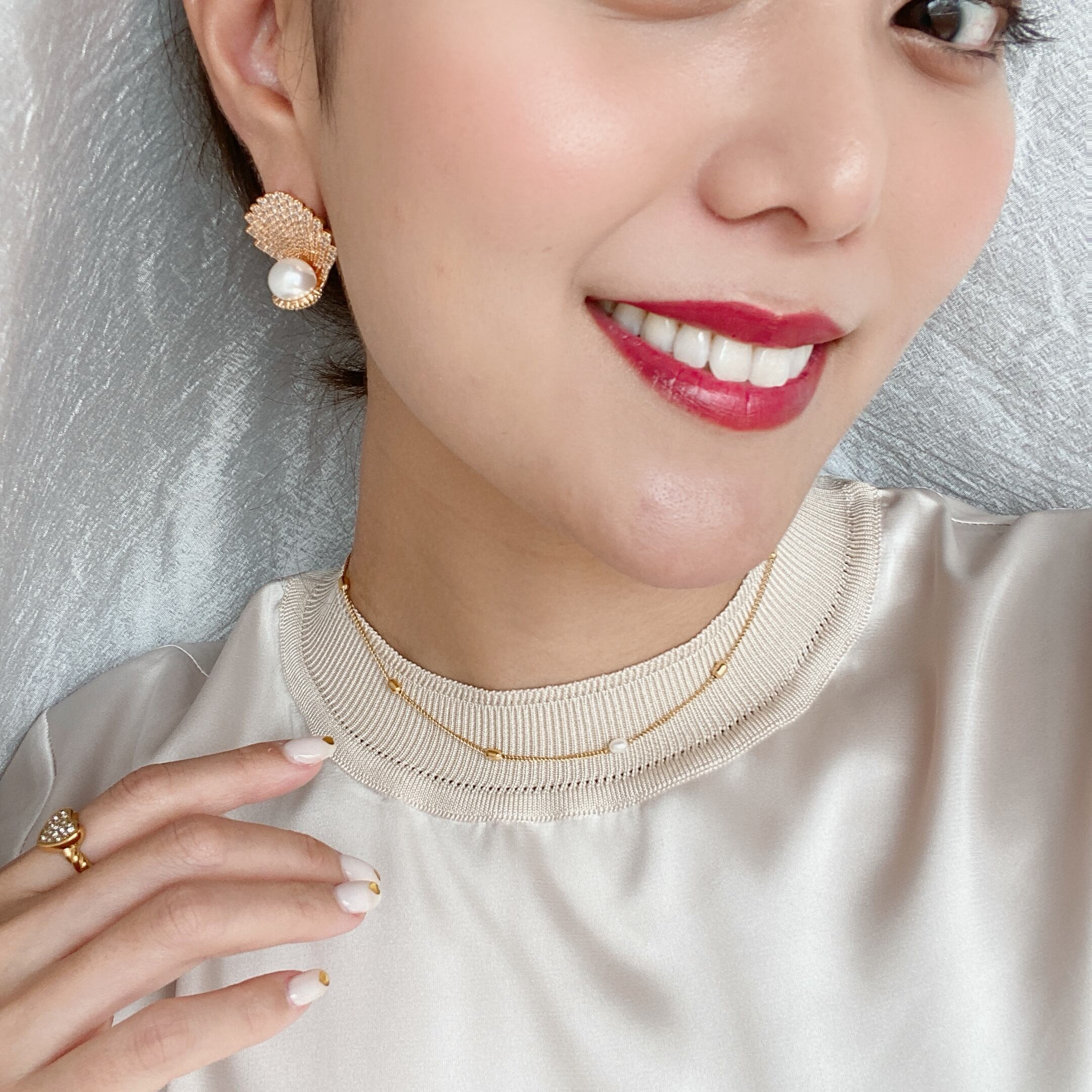 マーメイド感溢れるシェルとパールが顔まわりを綺麗に可愛く彩ってくれて、目を釘付けにしてくれそう!!