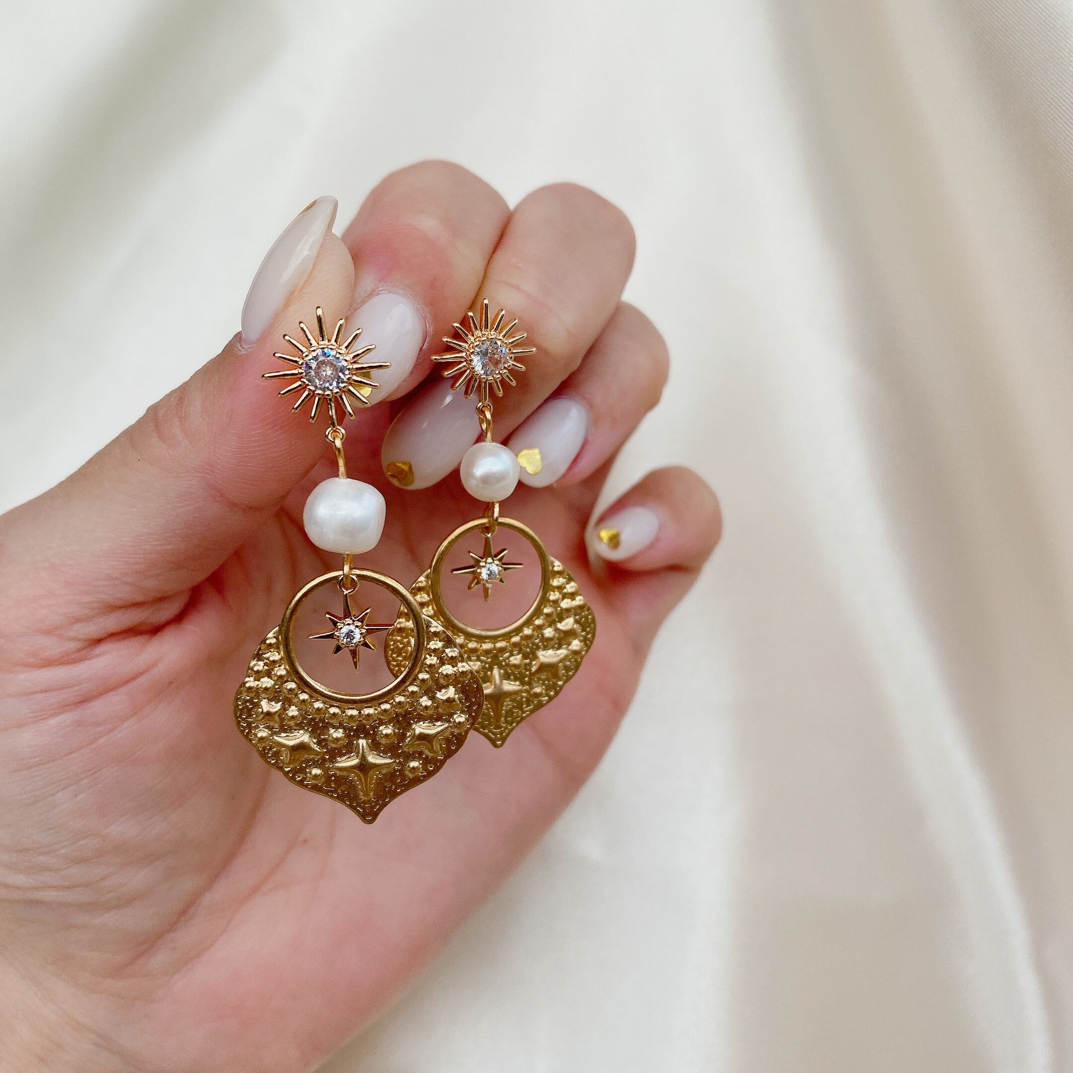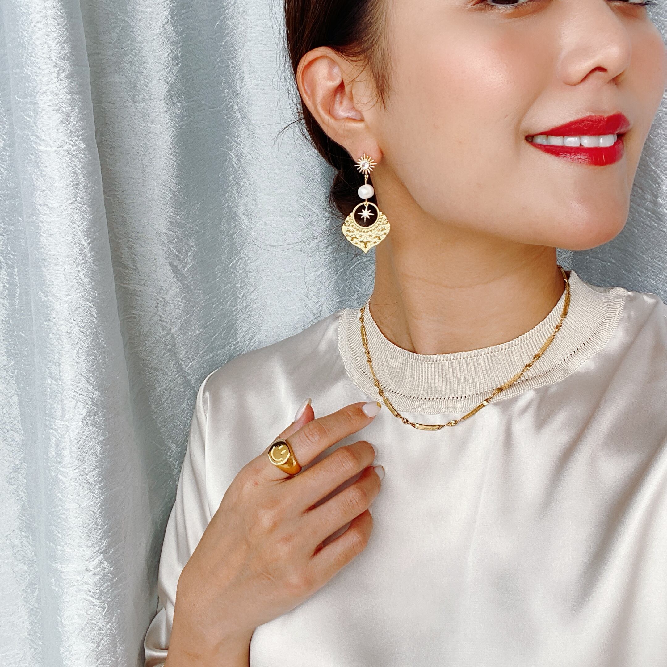 小さなスターのチャームは小刻みにゆらゆらゆれてくれて顔まわりが明るく感じさせてくれますよ