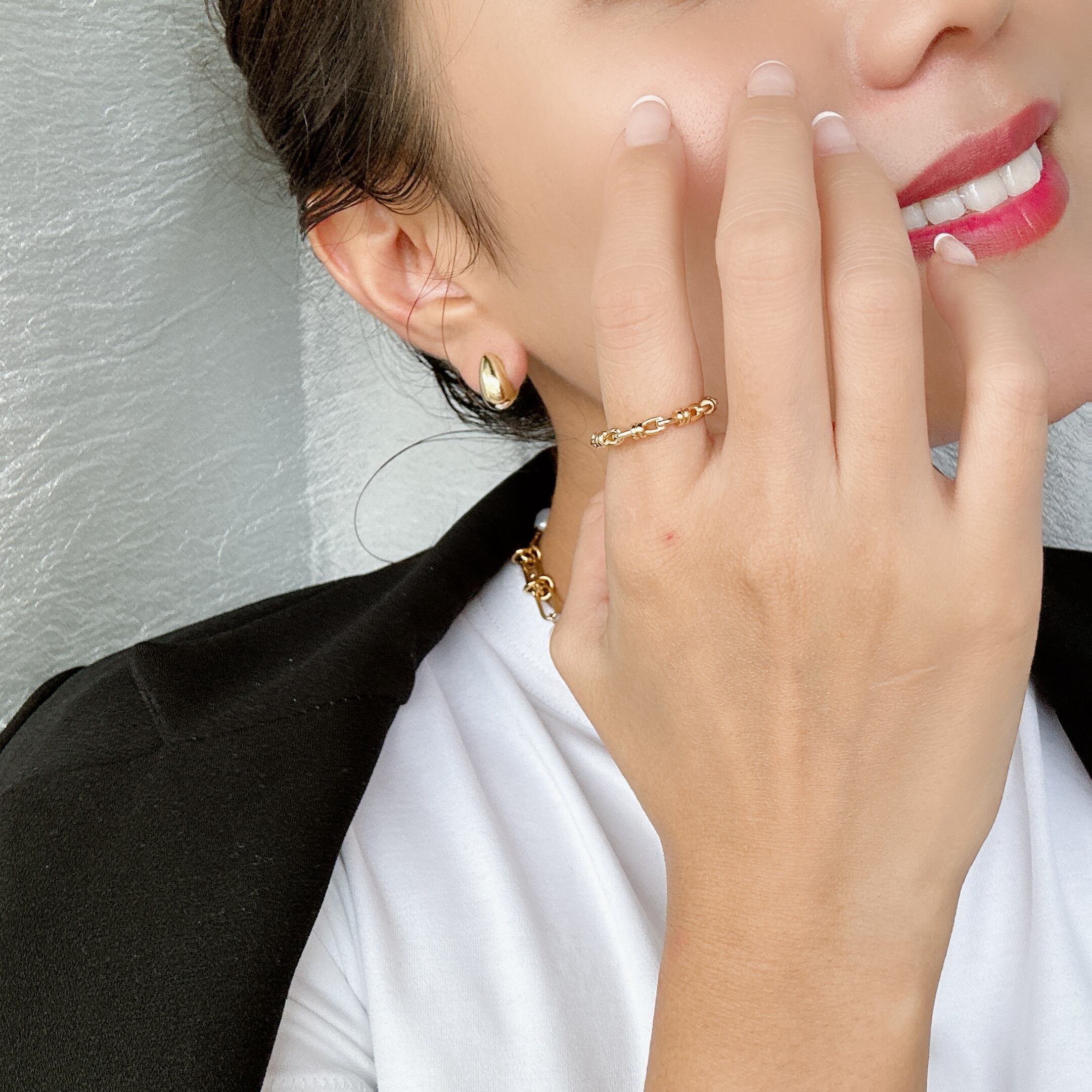 サラッと大人レディーの装いを盛り上げてくれる縁の下の力持ちリングと言えます♡