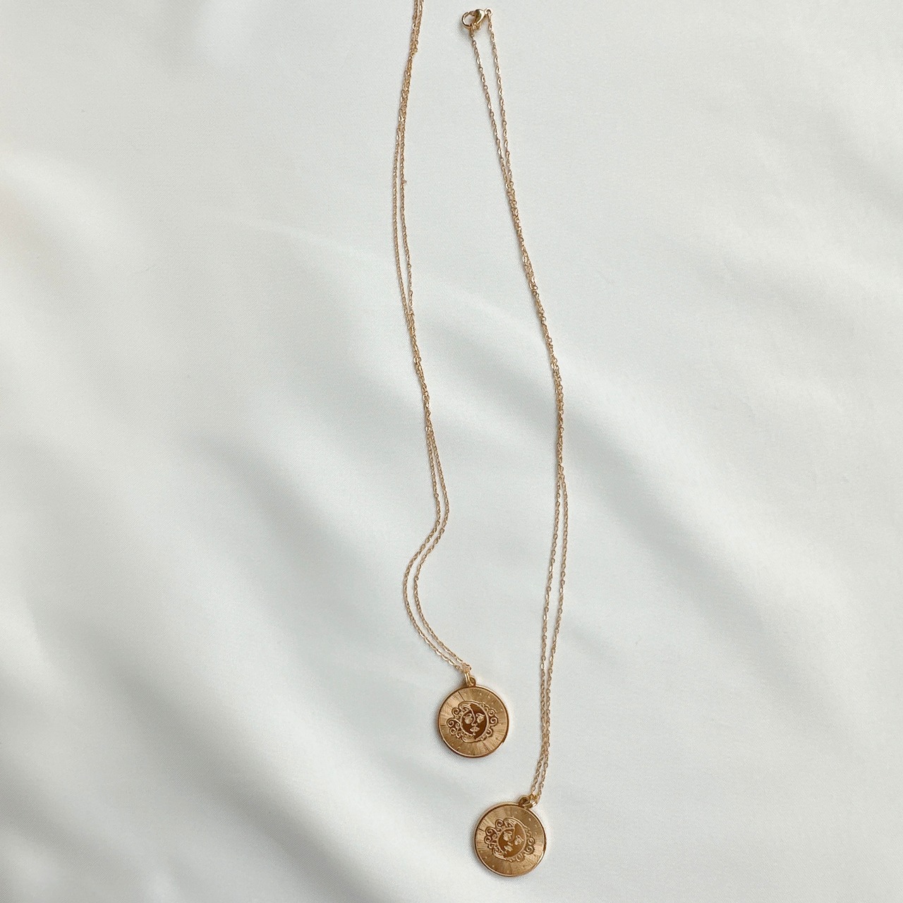 moon×sun のコインチャームはなかなか珍しいデザインでコーディネートに差をつけたい方こだわり派必見のネックレスになります!!