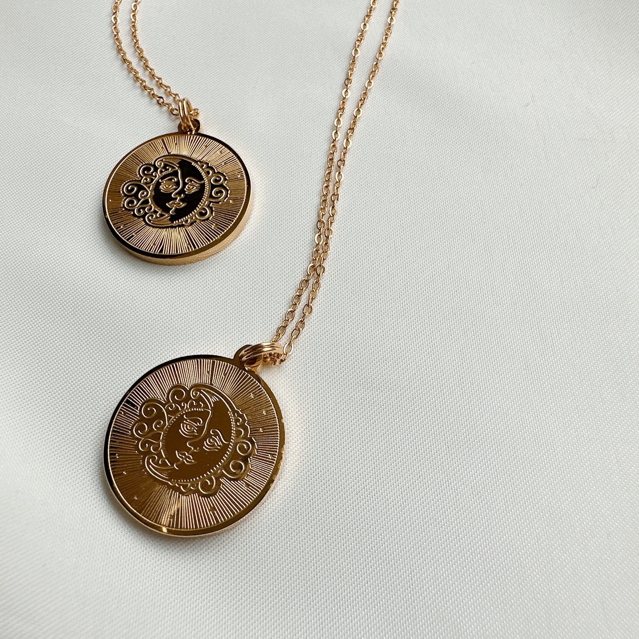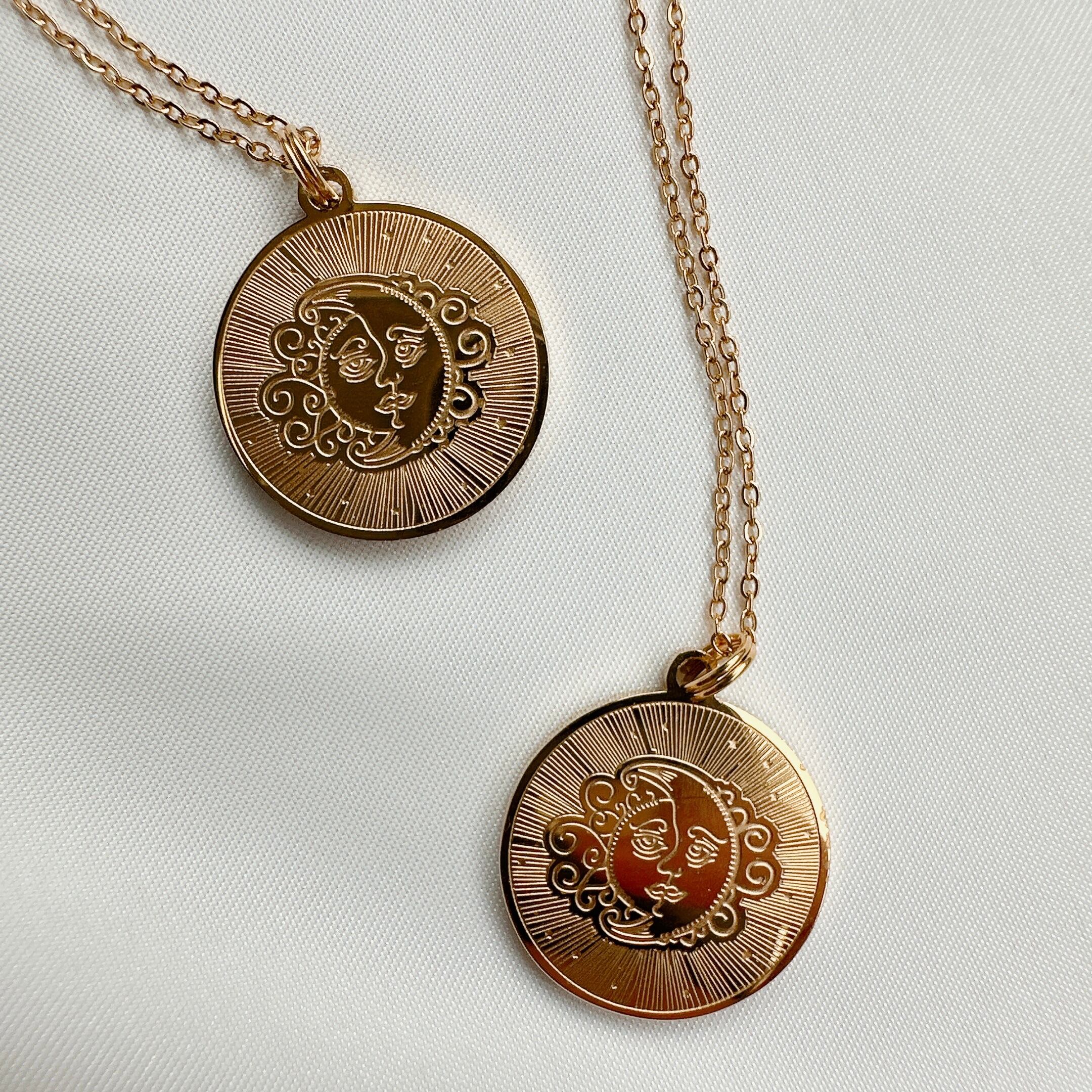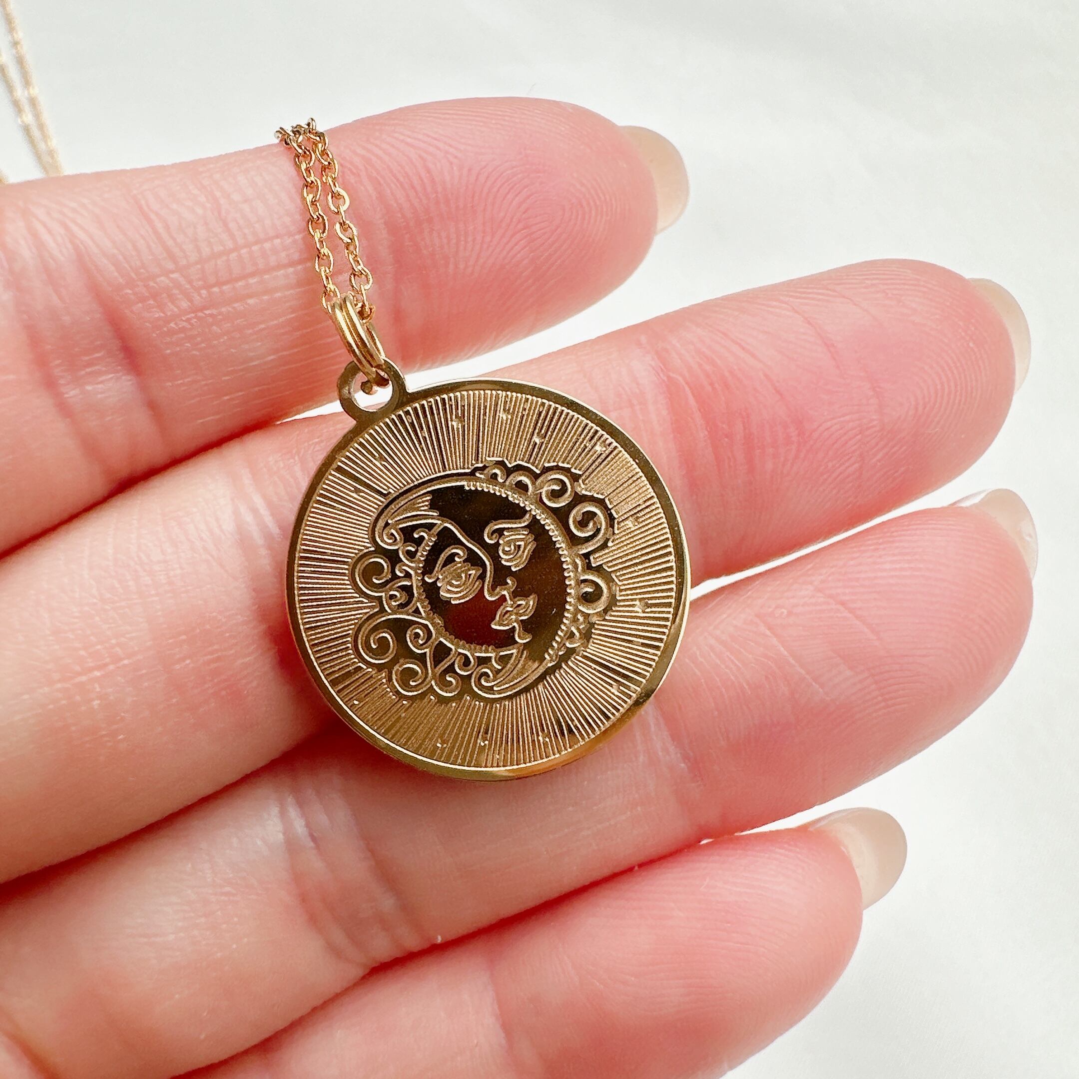 stainless vintage like moon×sun necklace
