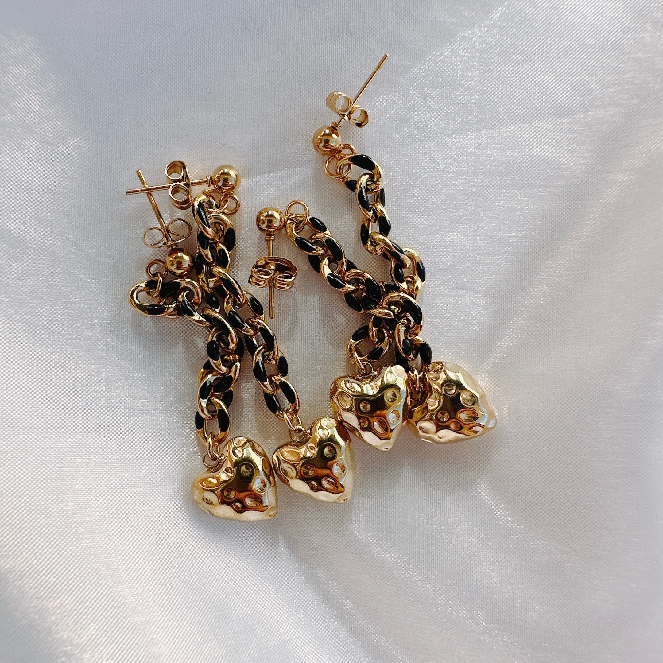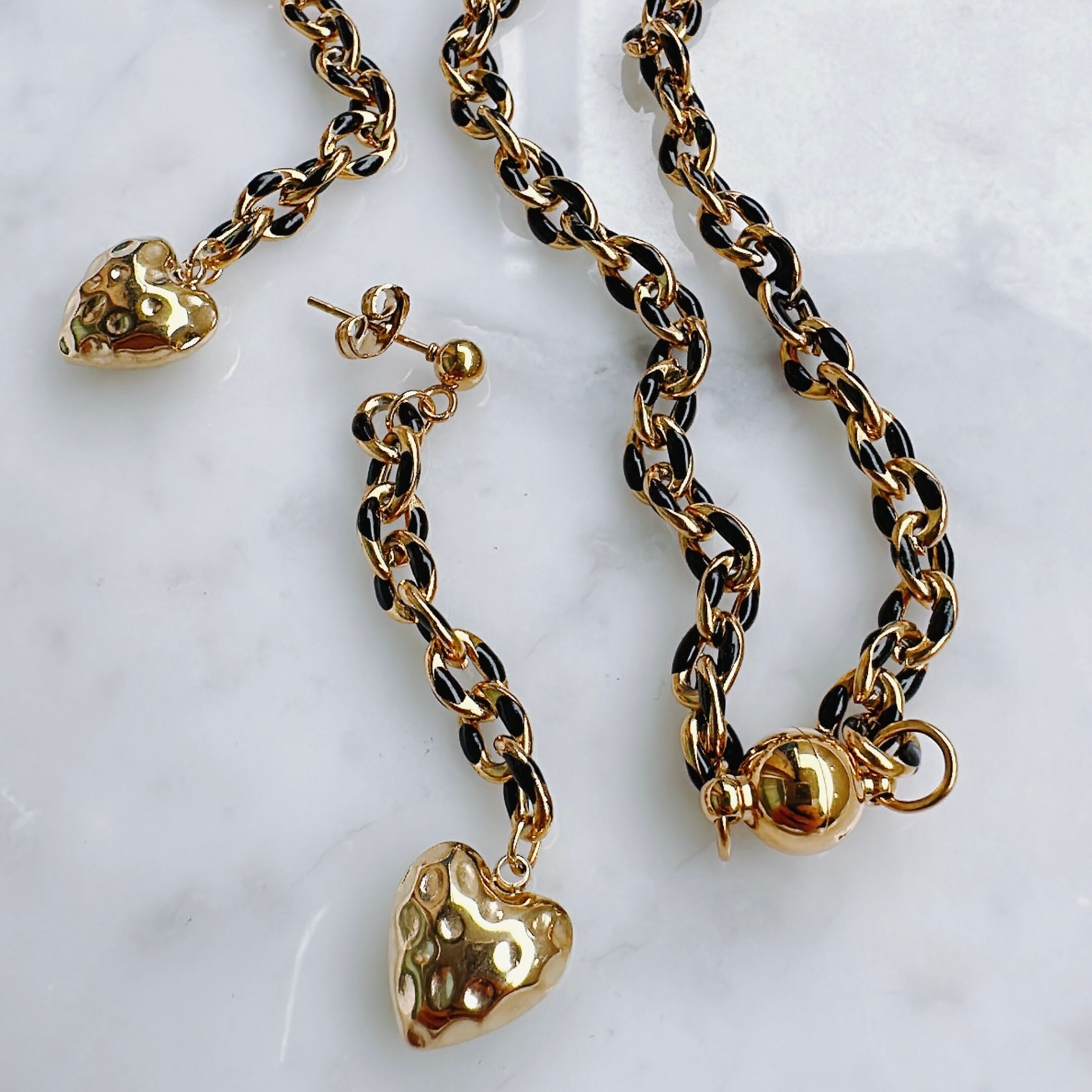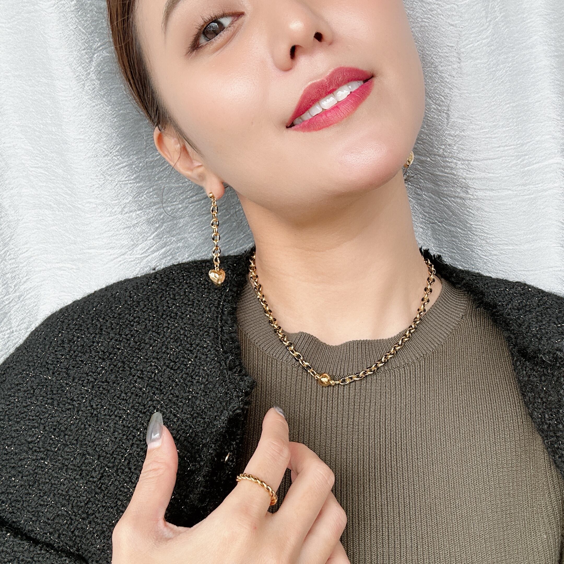 シックな印象を受けるブラックチェーンにぷっくりとしたハートチャームが足し算引き算をしてくれて