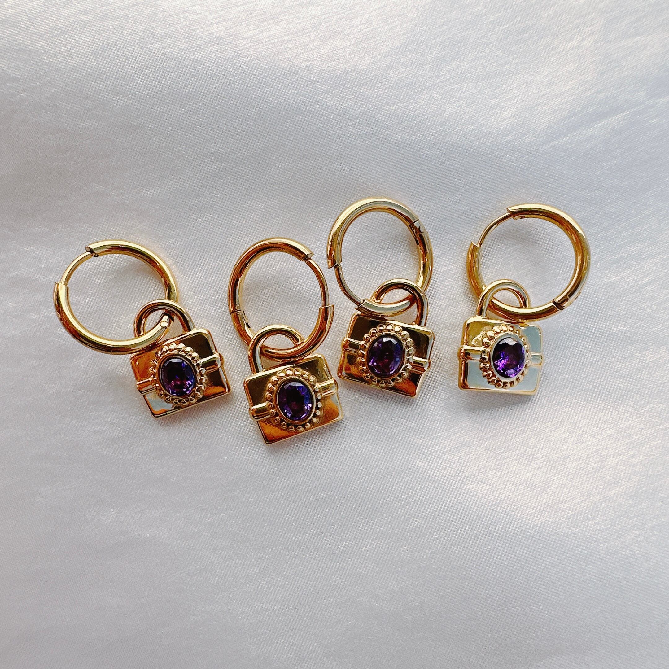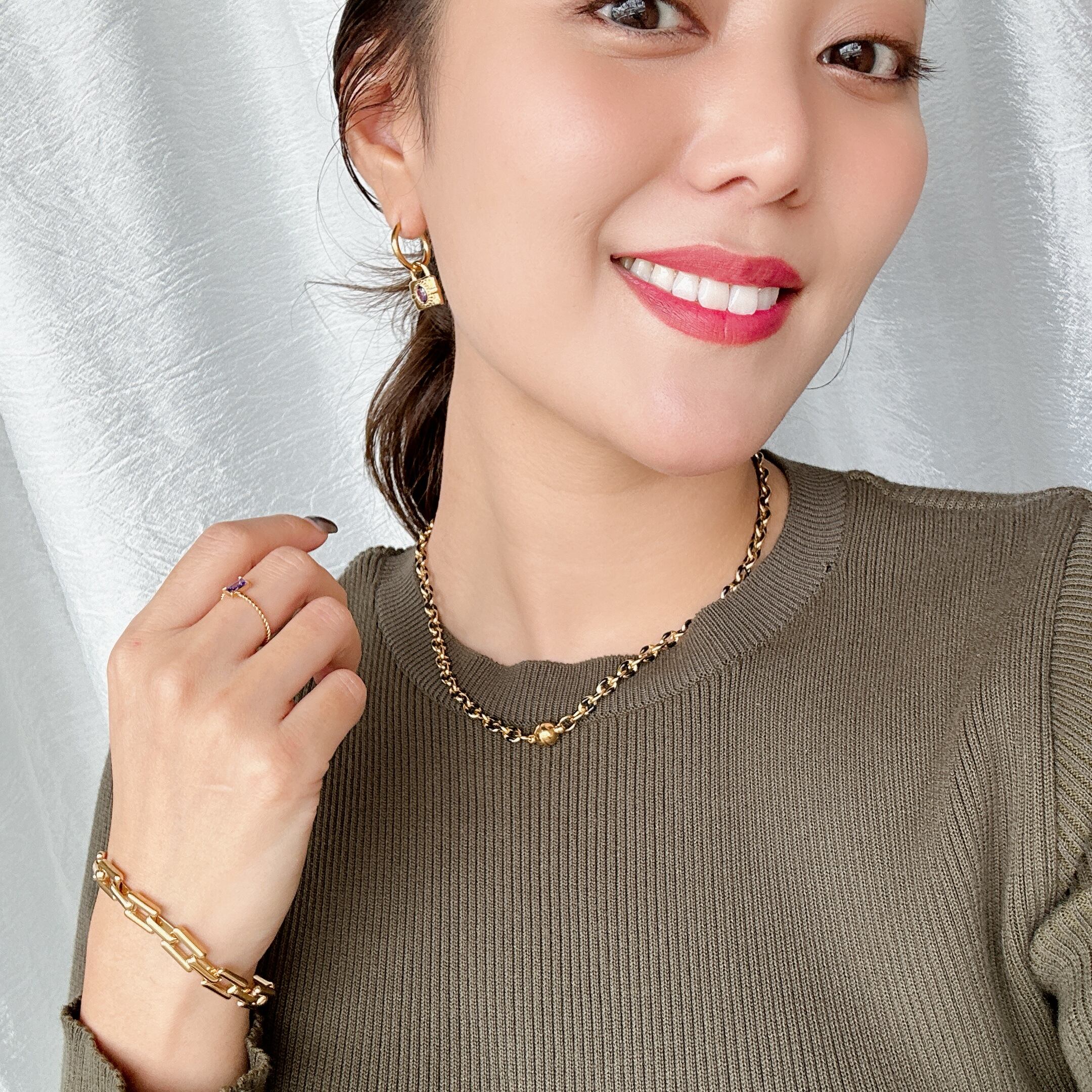 チャームを取り外しできシンプルにフープピアスのみでもお使いいただけるのでデイリー使いも完璧にこなせますよ!!