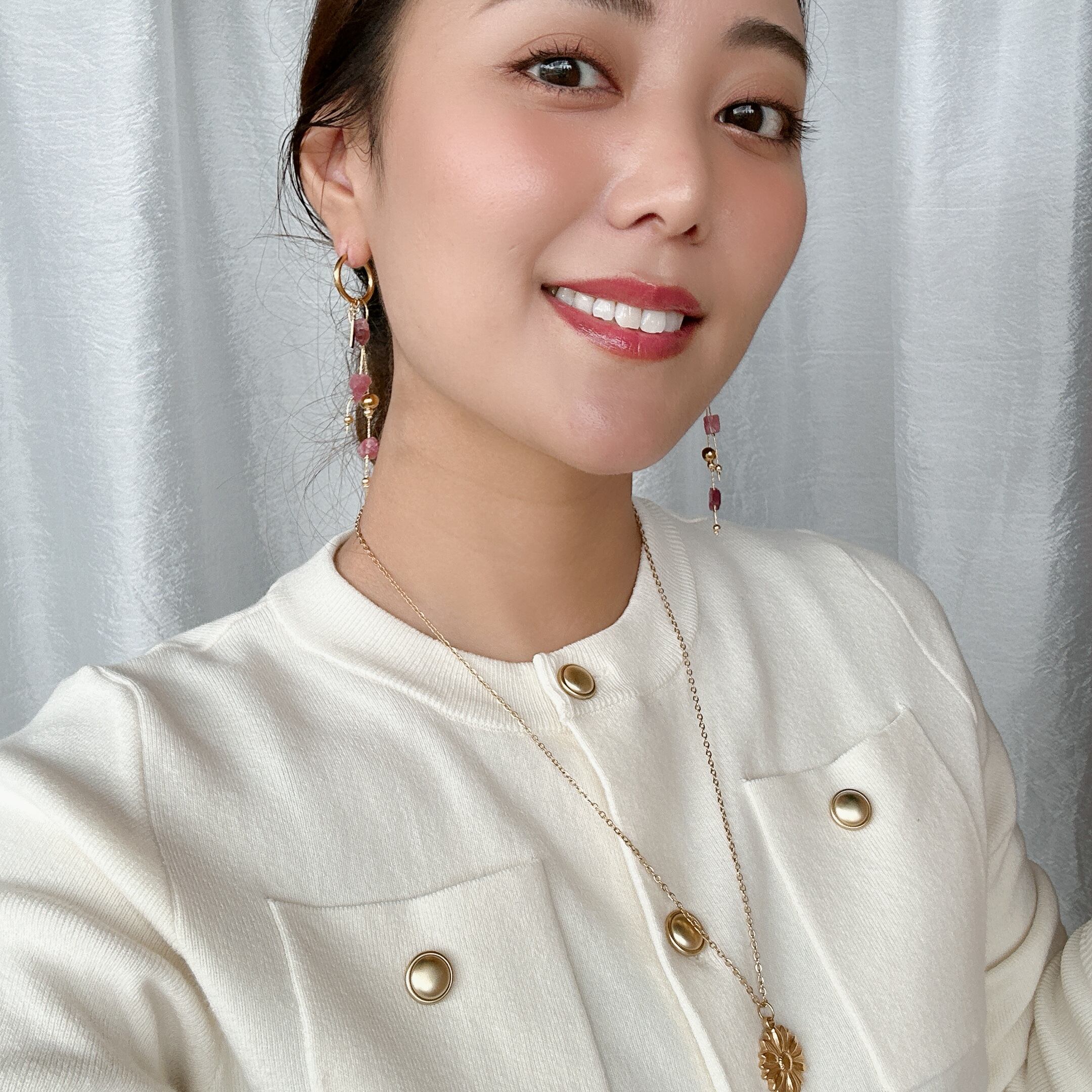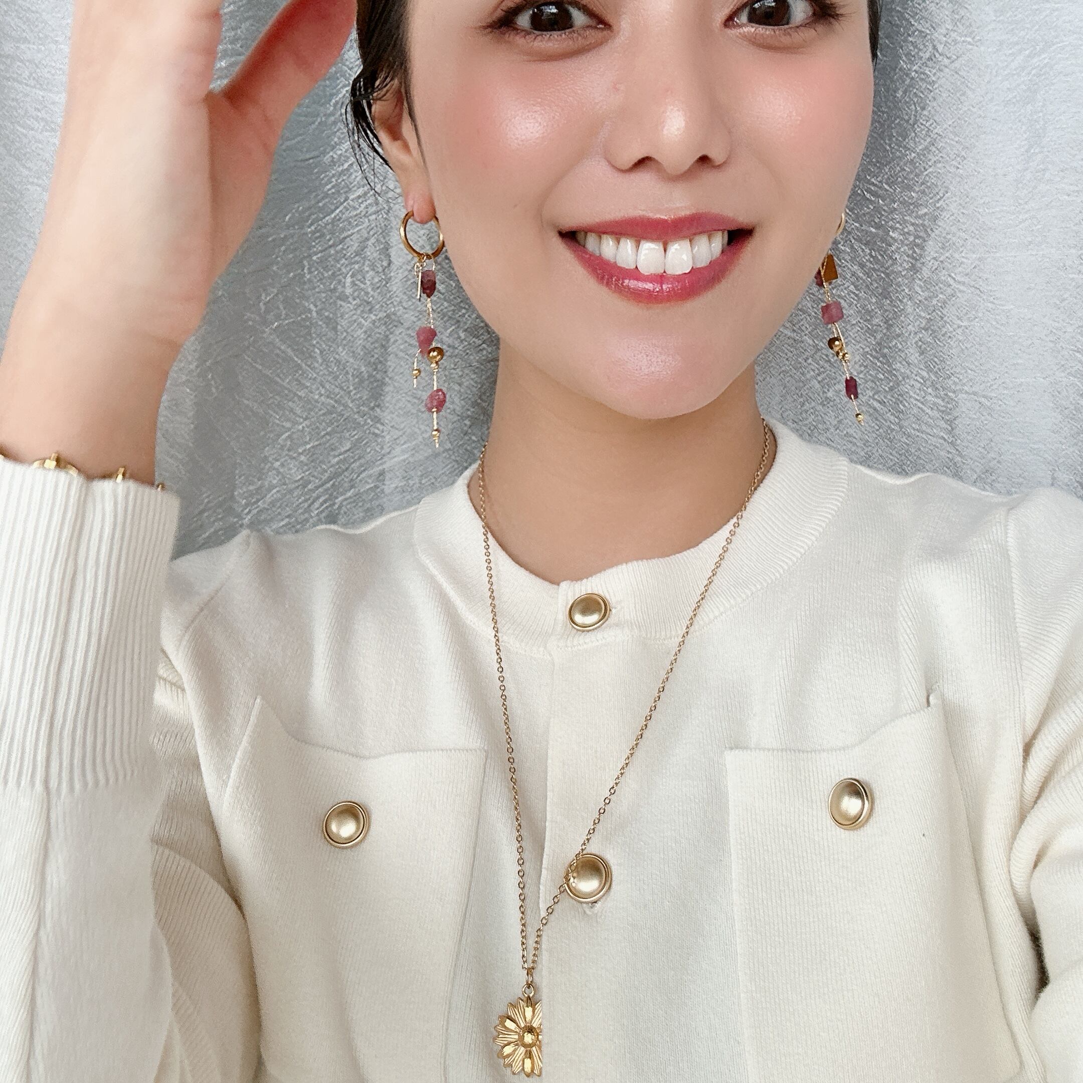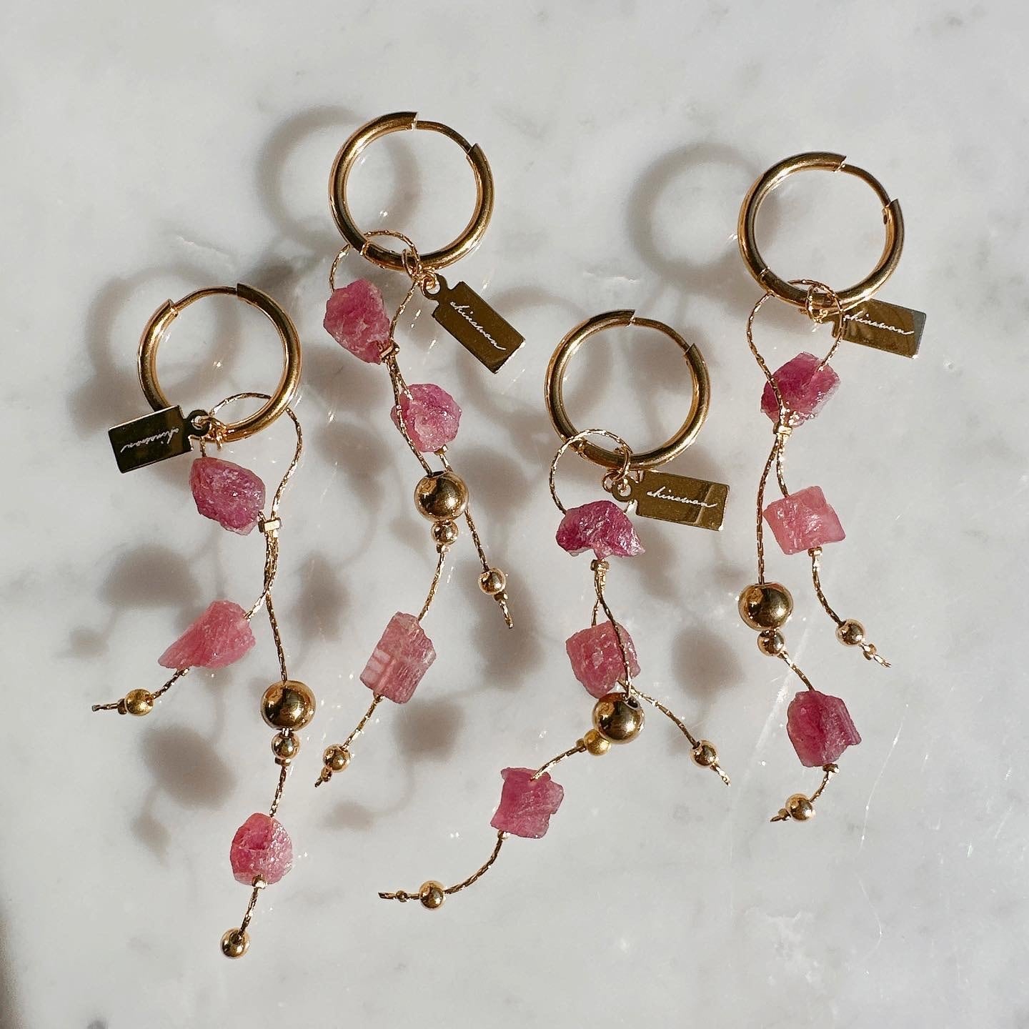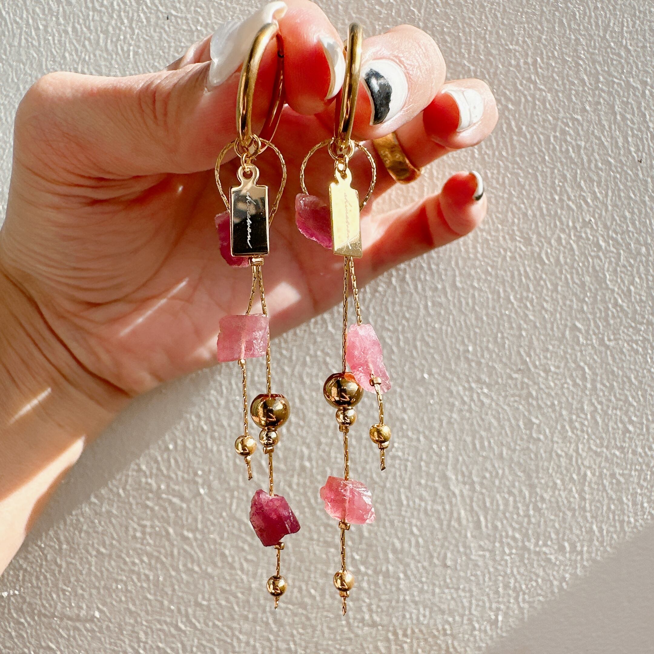 ピンクのストーンが可愛く目がハートになっちゃうこちらのロングピアス♡