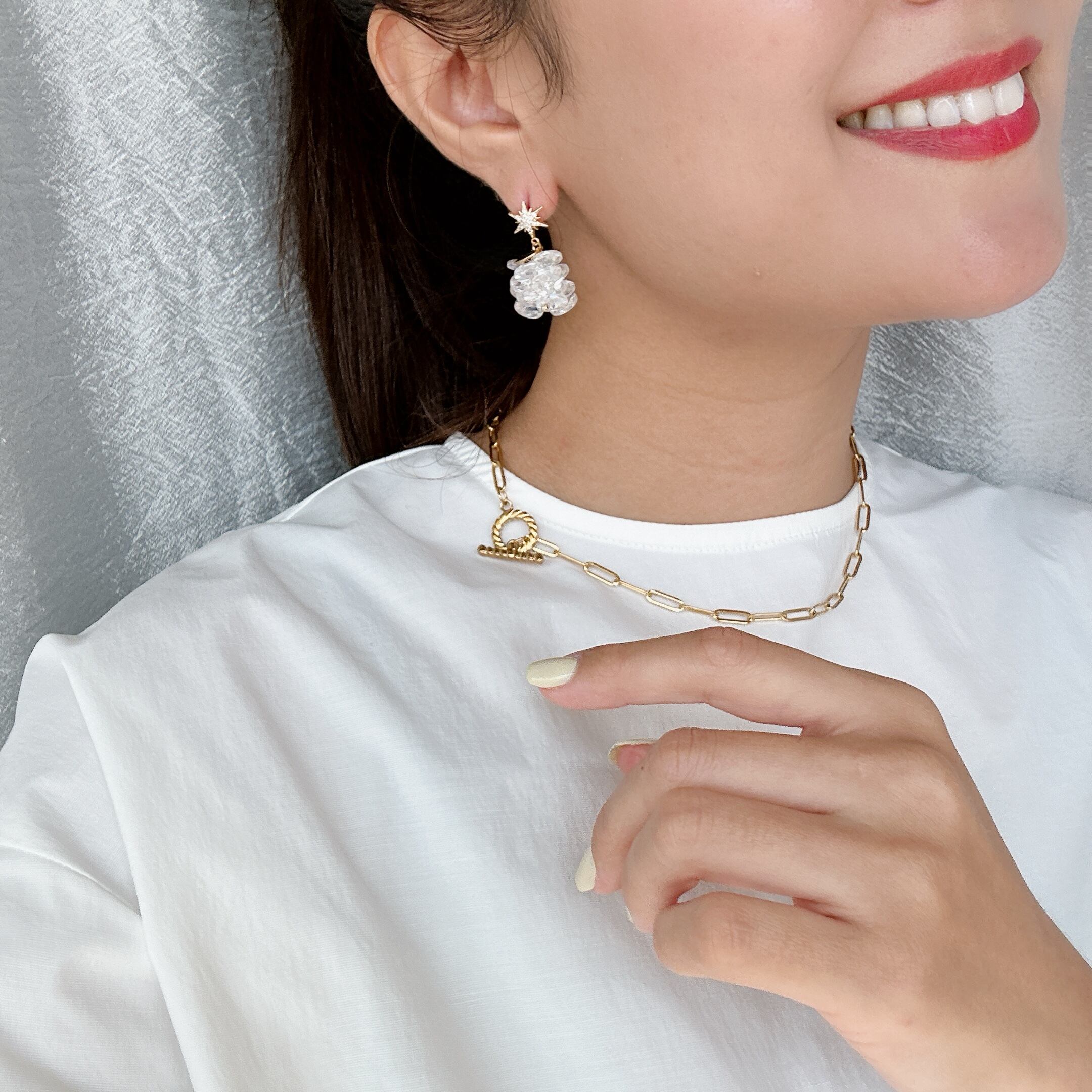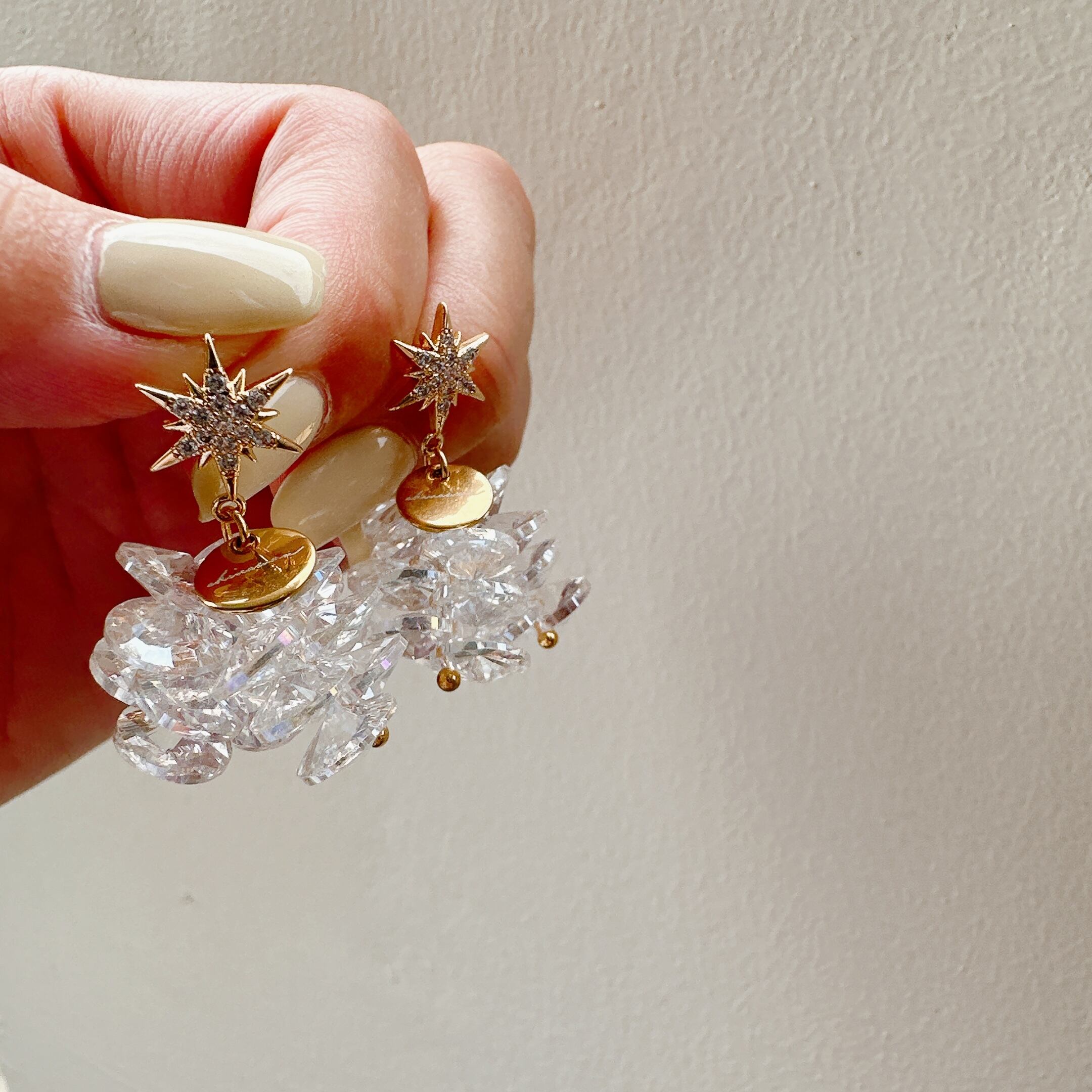 スターモチーフのピアスポストにたっぷり付いたジルコニア!下にはクリスタルガラスビーズのシャワータッセルをプラス!
